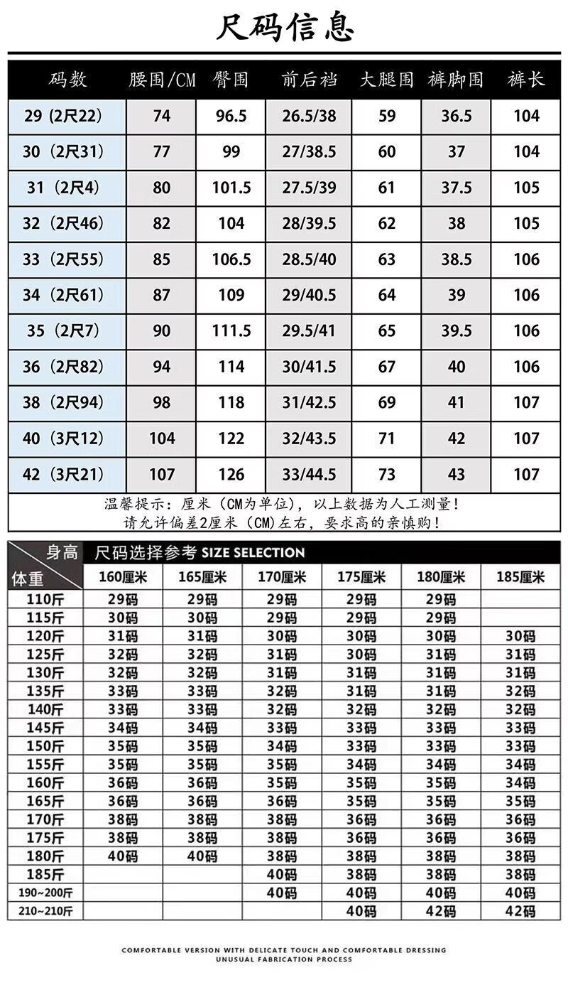 USA(inch) 28-30 30-32 32-34 34-38 38-42