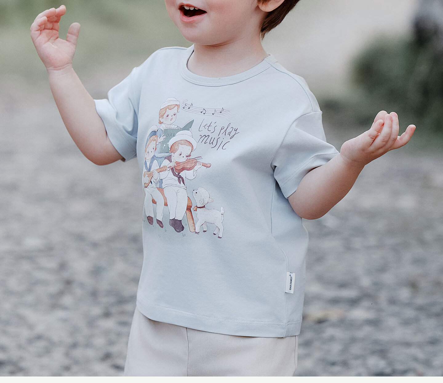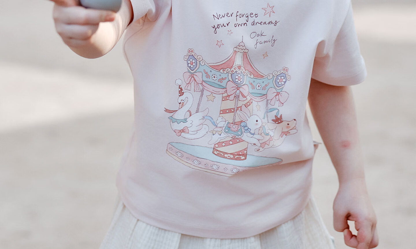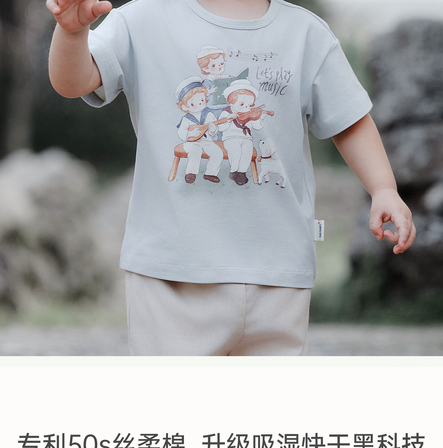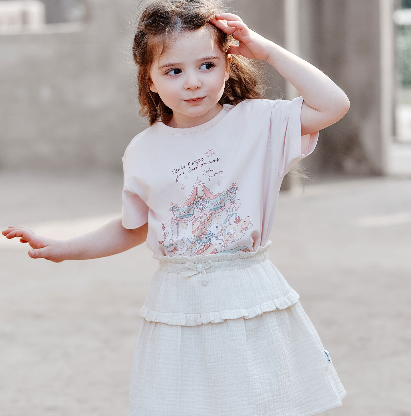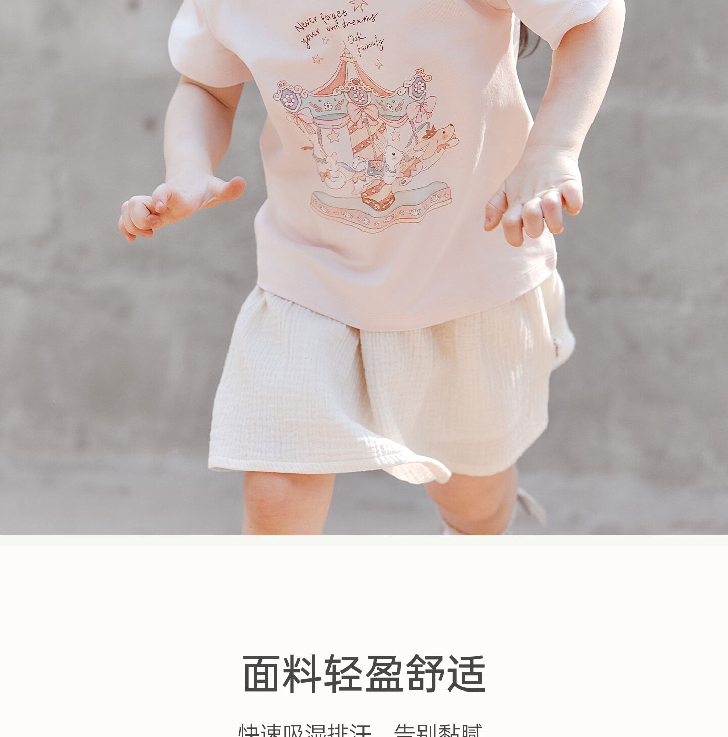 OAK FAMILY new product summer 2026 children's clothing girls' comfortable short-sleeved tops t-shirt breathable clothes pure cotton quick-drying and sweat-wicking sage green 80