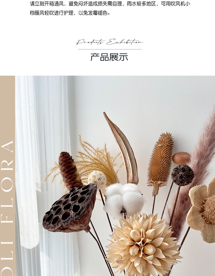 Jatu dace dried flowers and branches diy material bouquet lotus reed cotton pine cones real flowers air-dried living room decoration flower arrangement 1 pine cone dried flower bag