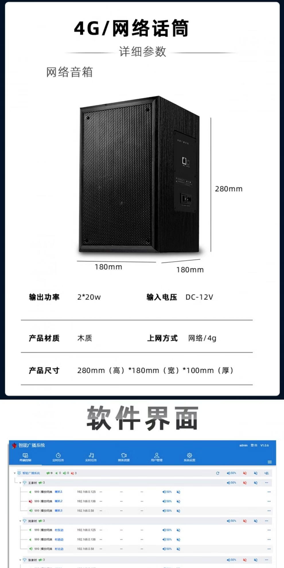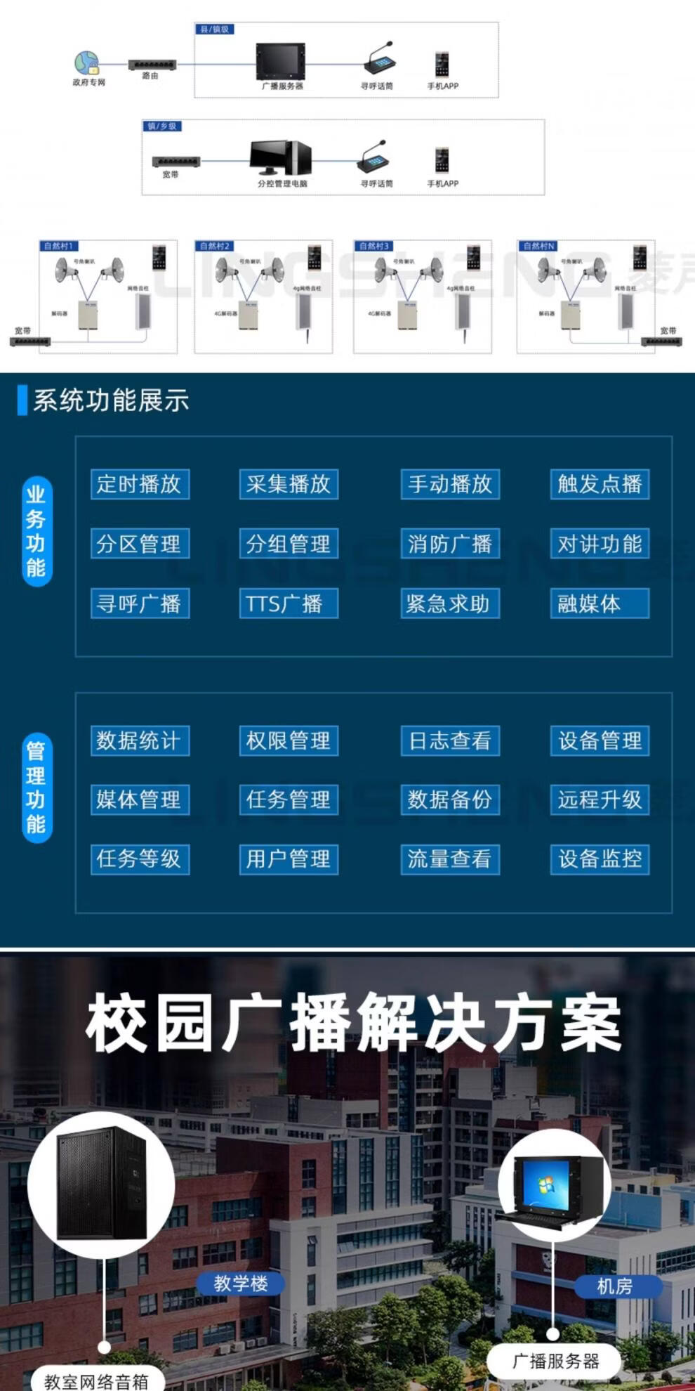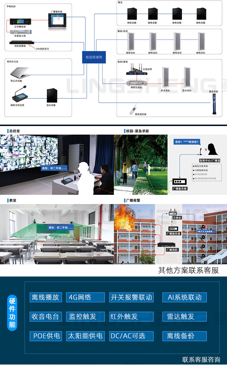 Lingsheng 4G Campus Intelligent IP Network Emergency SIP Cloud Broadcast Speaker Speaker Column Remote Wireless Speaker Engineering Model 150W