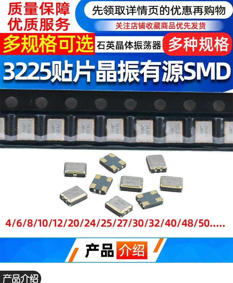 SMD active crystal oscillator 322512m/4/8/16M/24/25/27/40/50MHz quartz crystal 16M4 pins