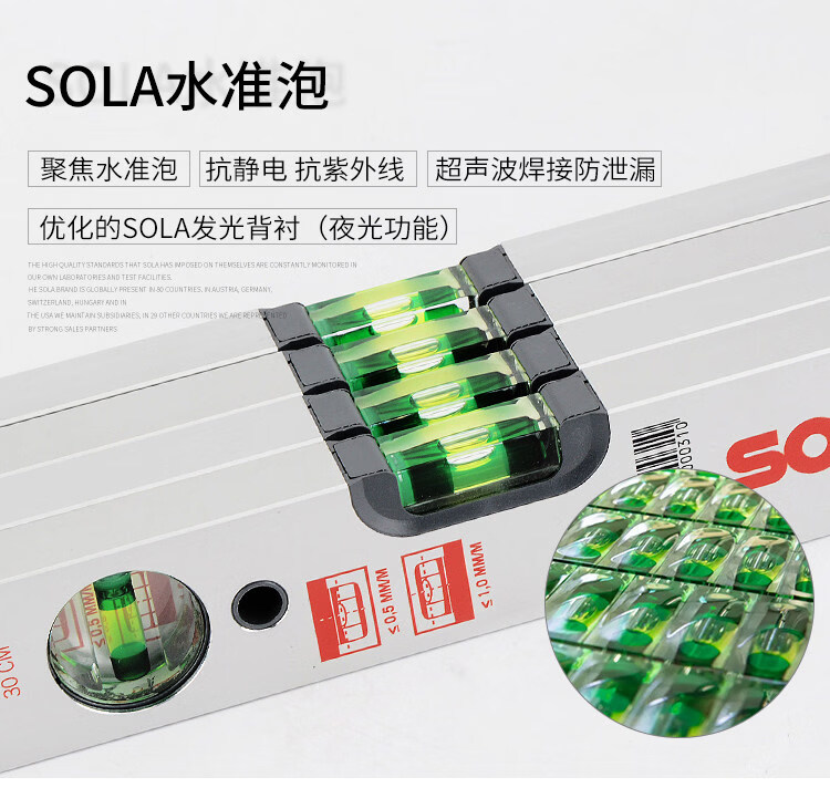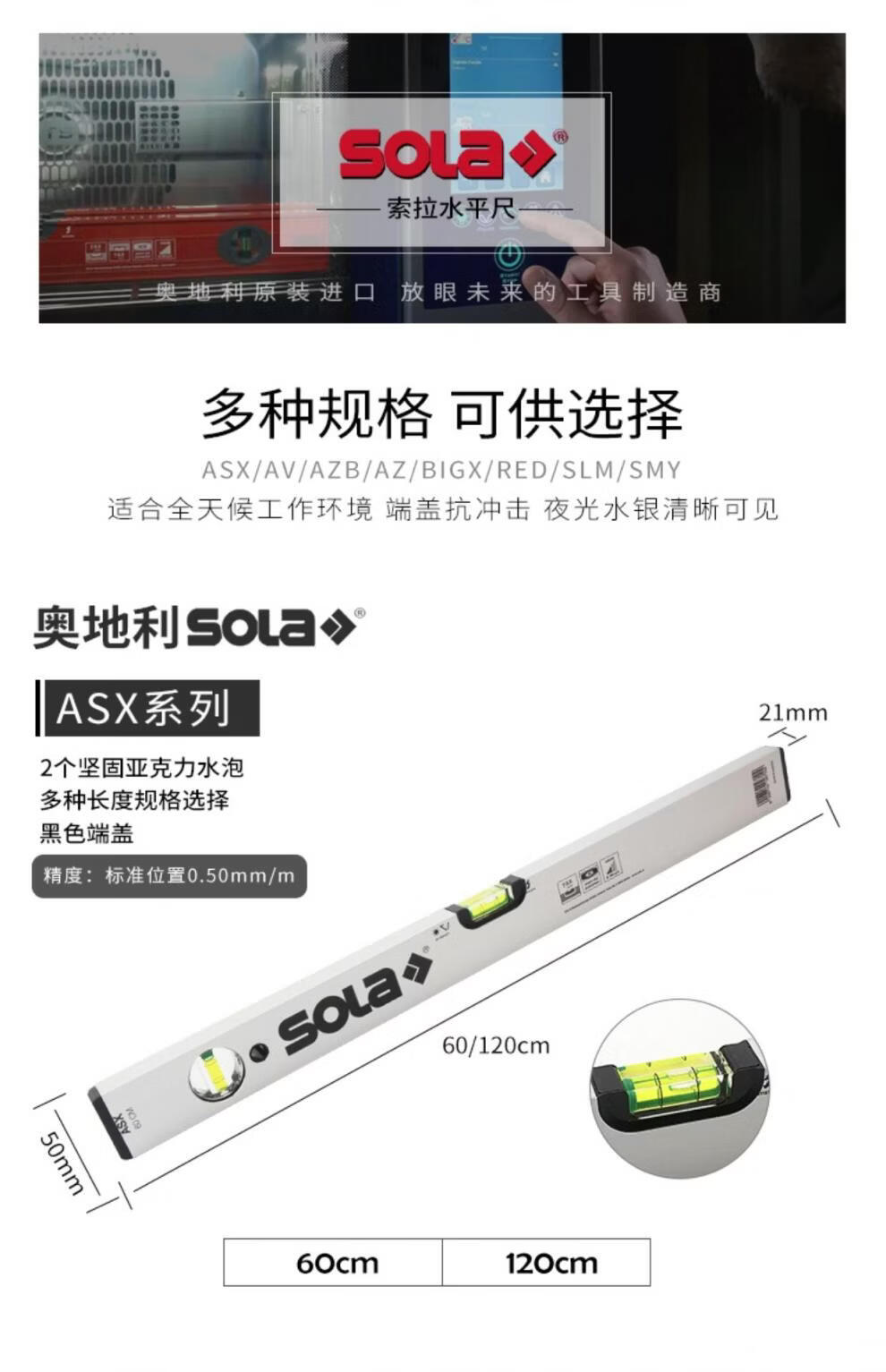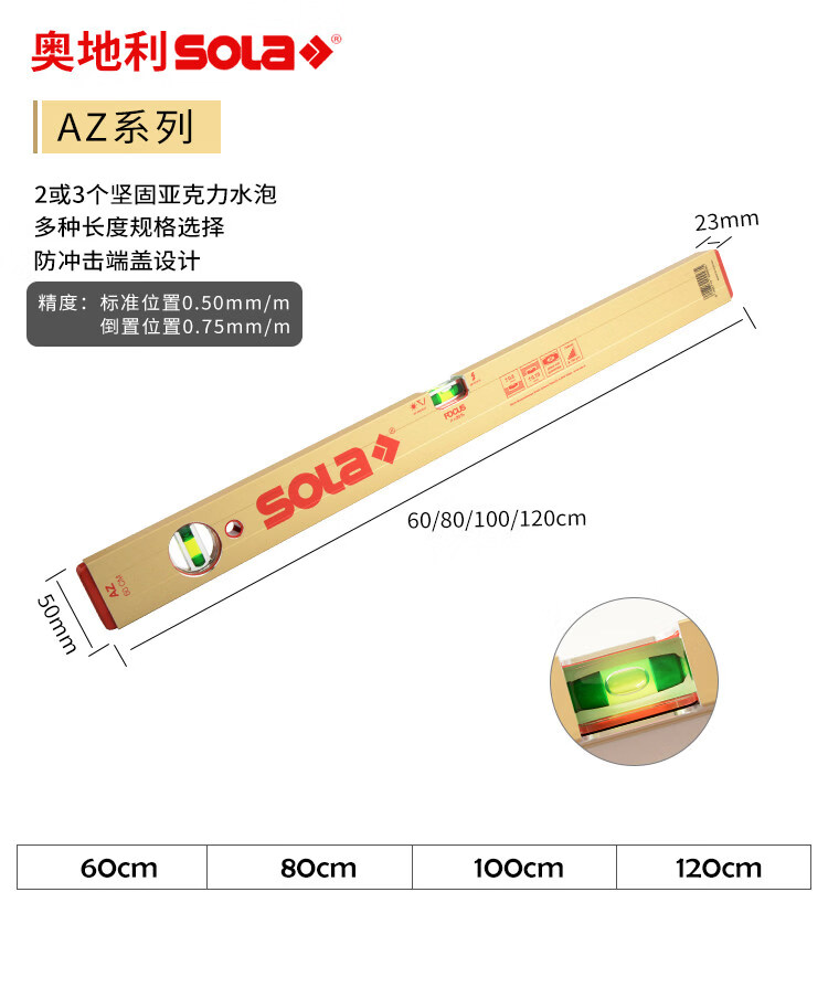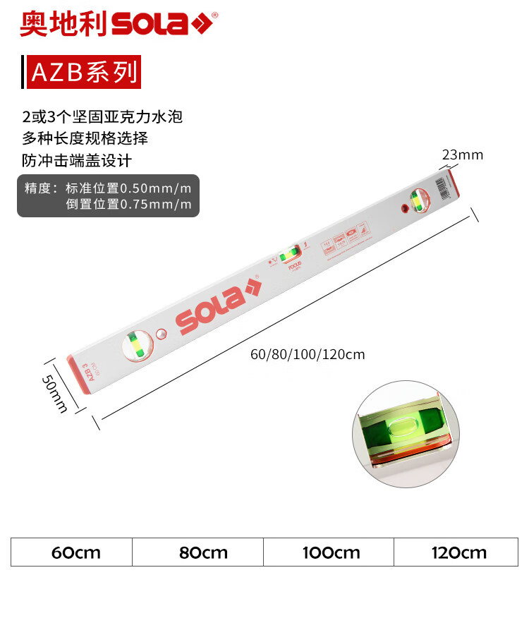 Sola (sola) level Austrian high-precision red head 1 meter 1.2 meters gold precision level luminous decoration ruler red head 40 cm_two blisters_AZB-40