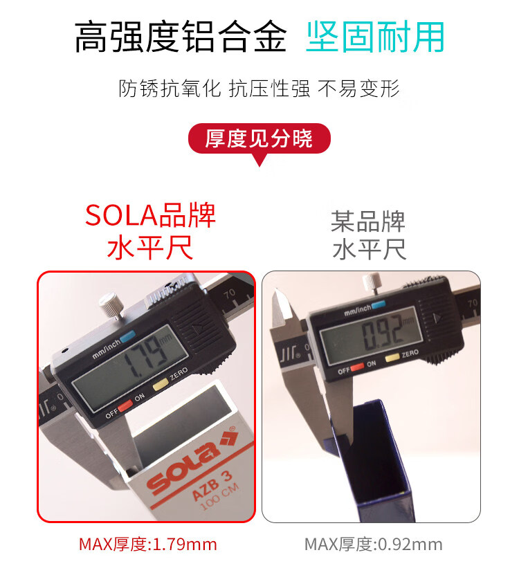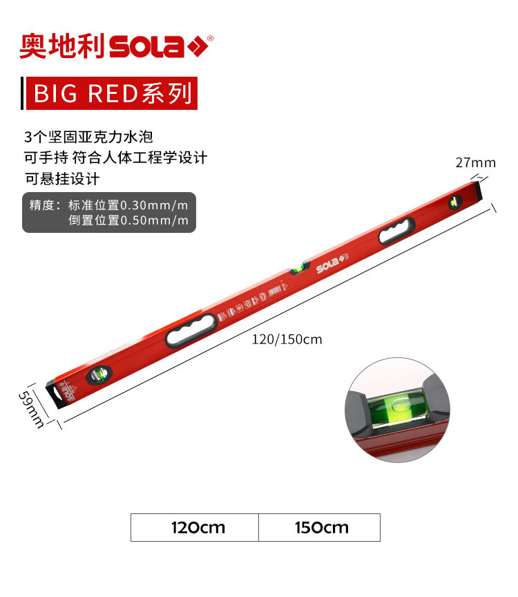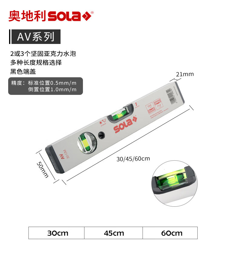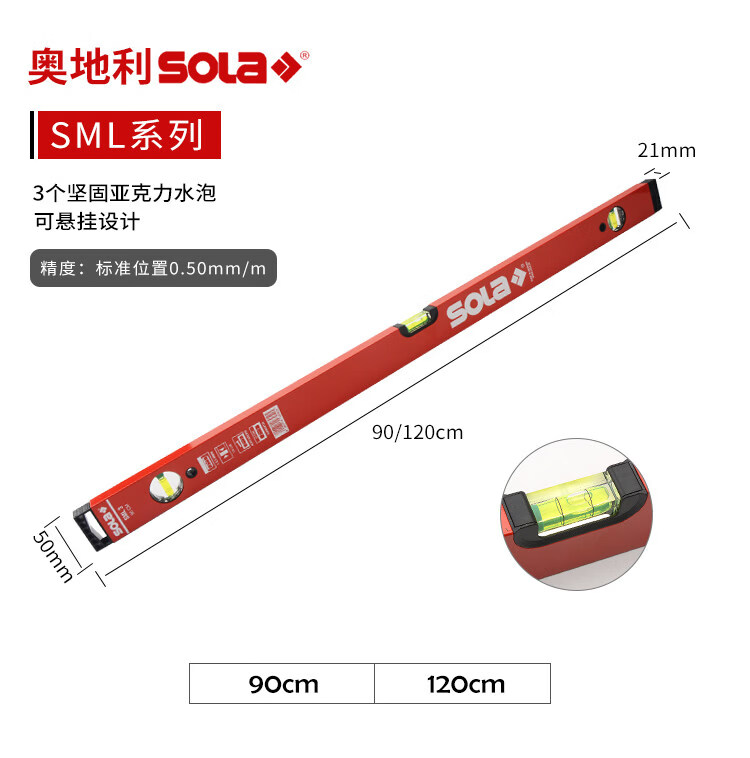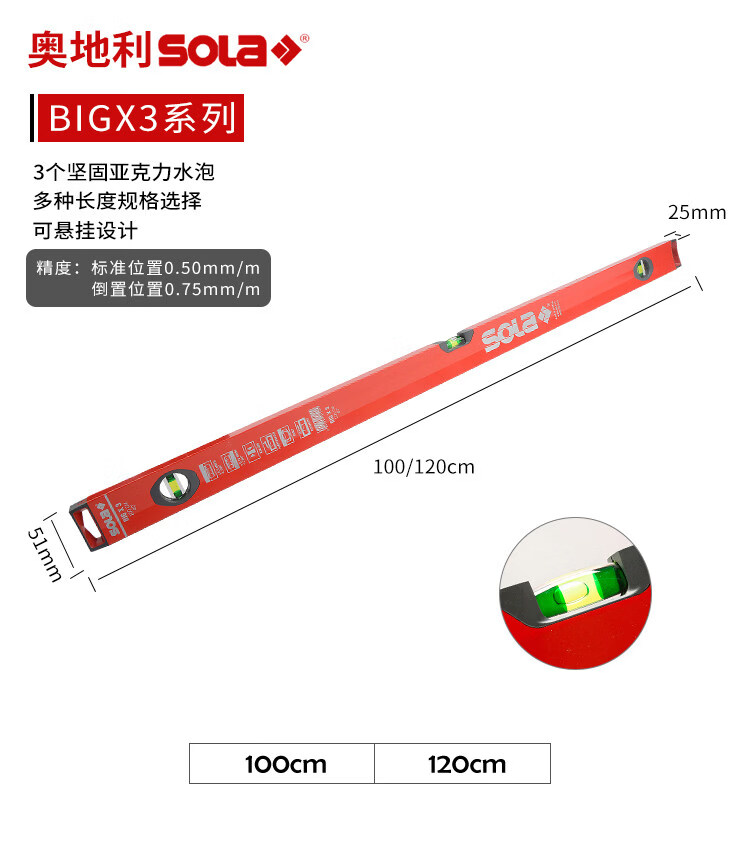 Sola (sola) level Austrian high-precision red head 1 meter 1.2 meters gold precision level luminous decoration ruler red head 40 cm_two blisters_AZB-40