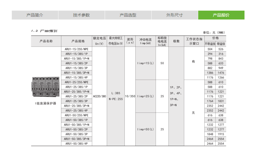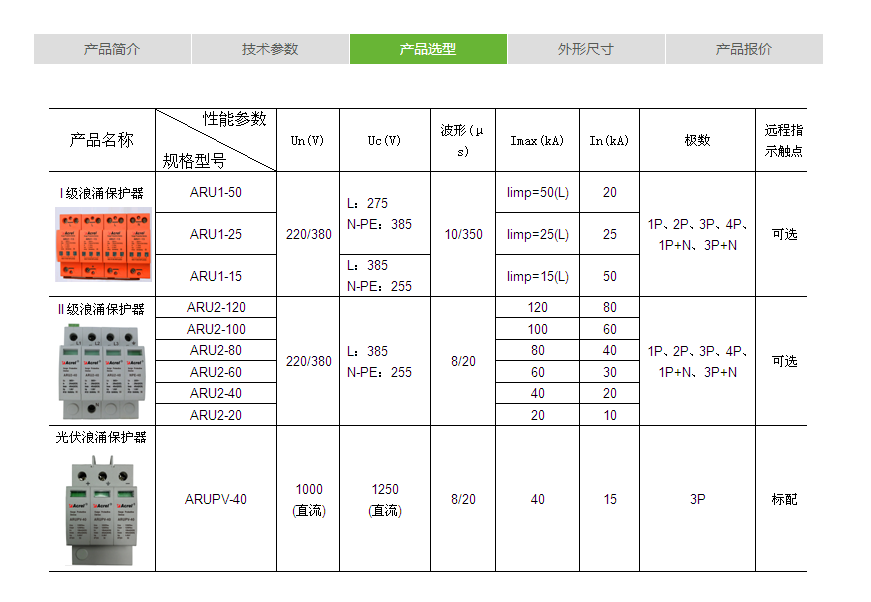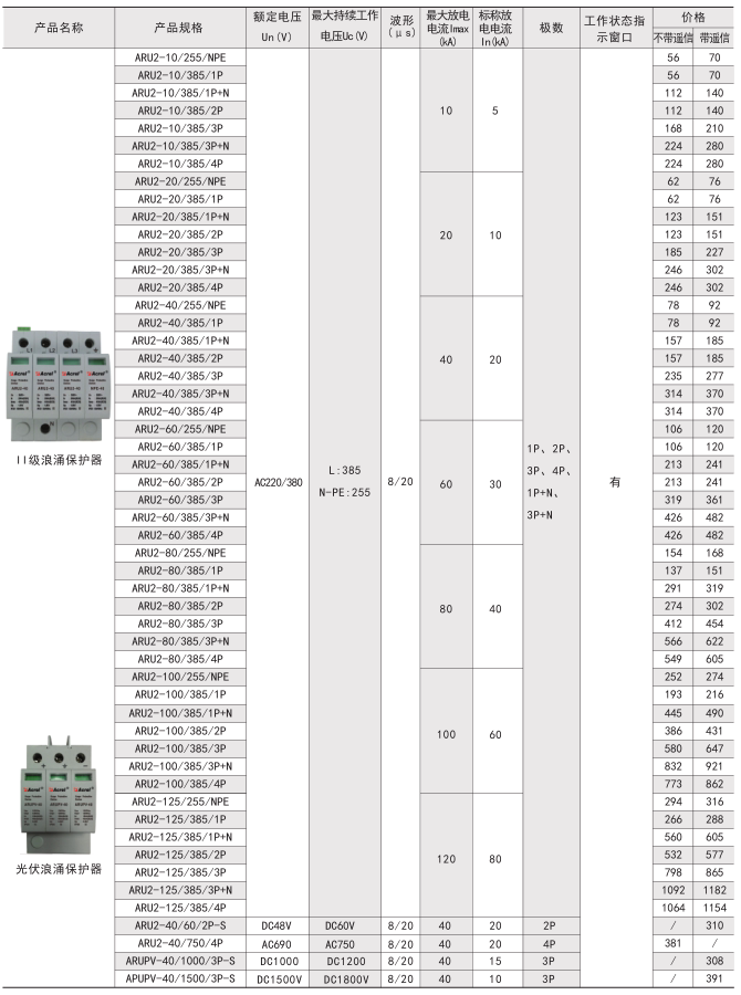 Ankerui ARU2-40/385/3P+N-S secondary lightning protector SPD surge protector with remote signaling contact ARU2-60/385/4P