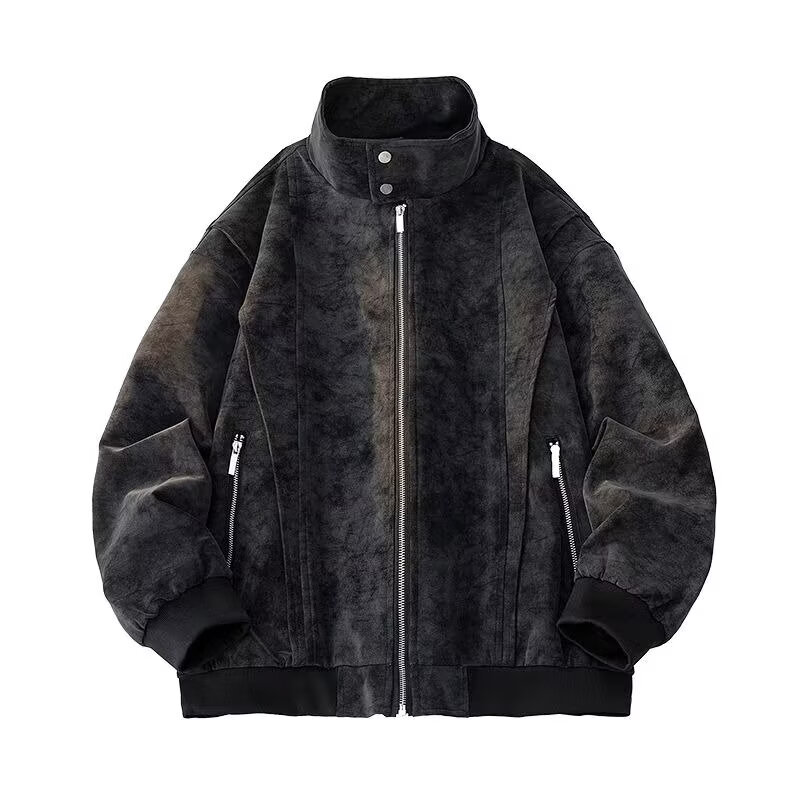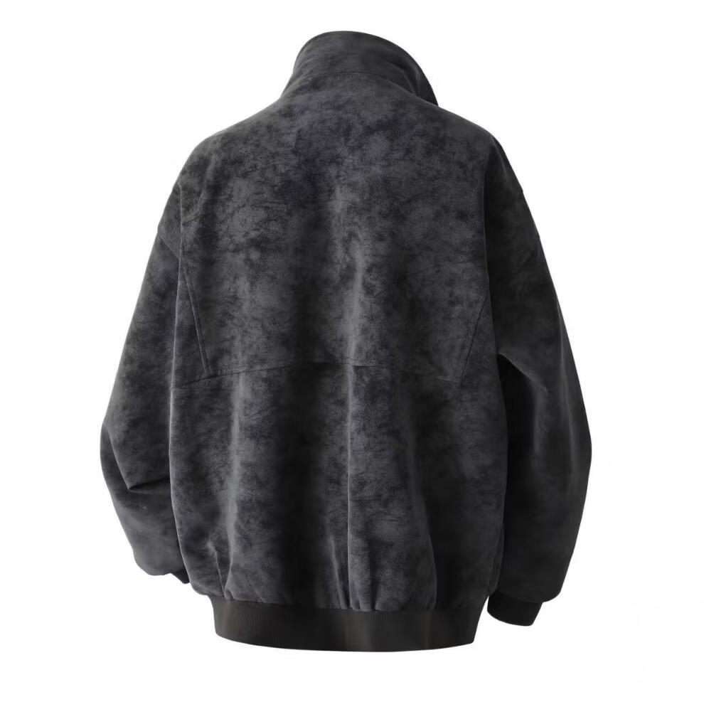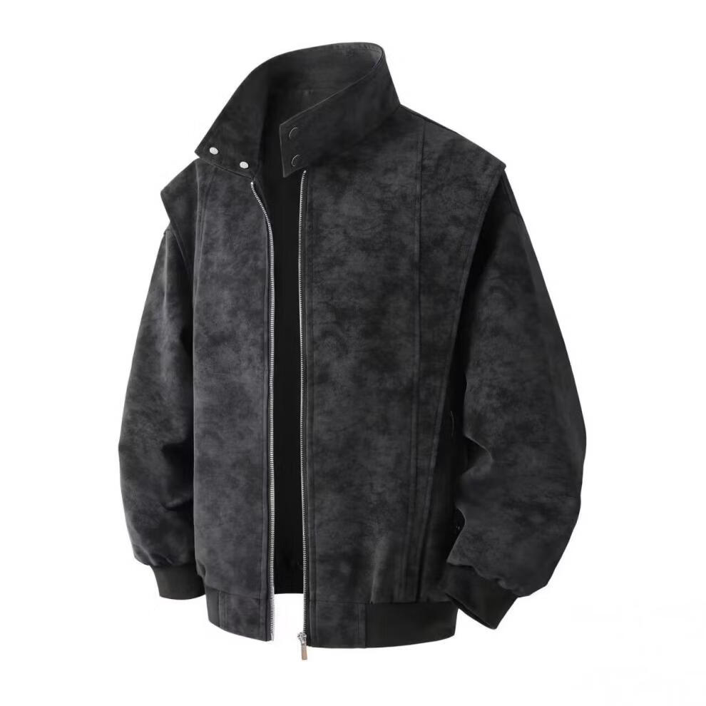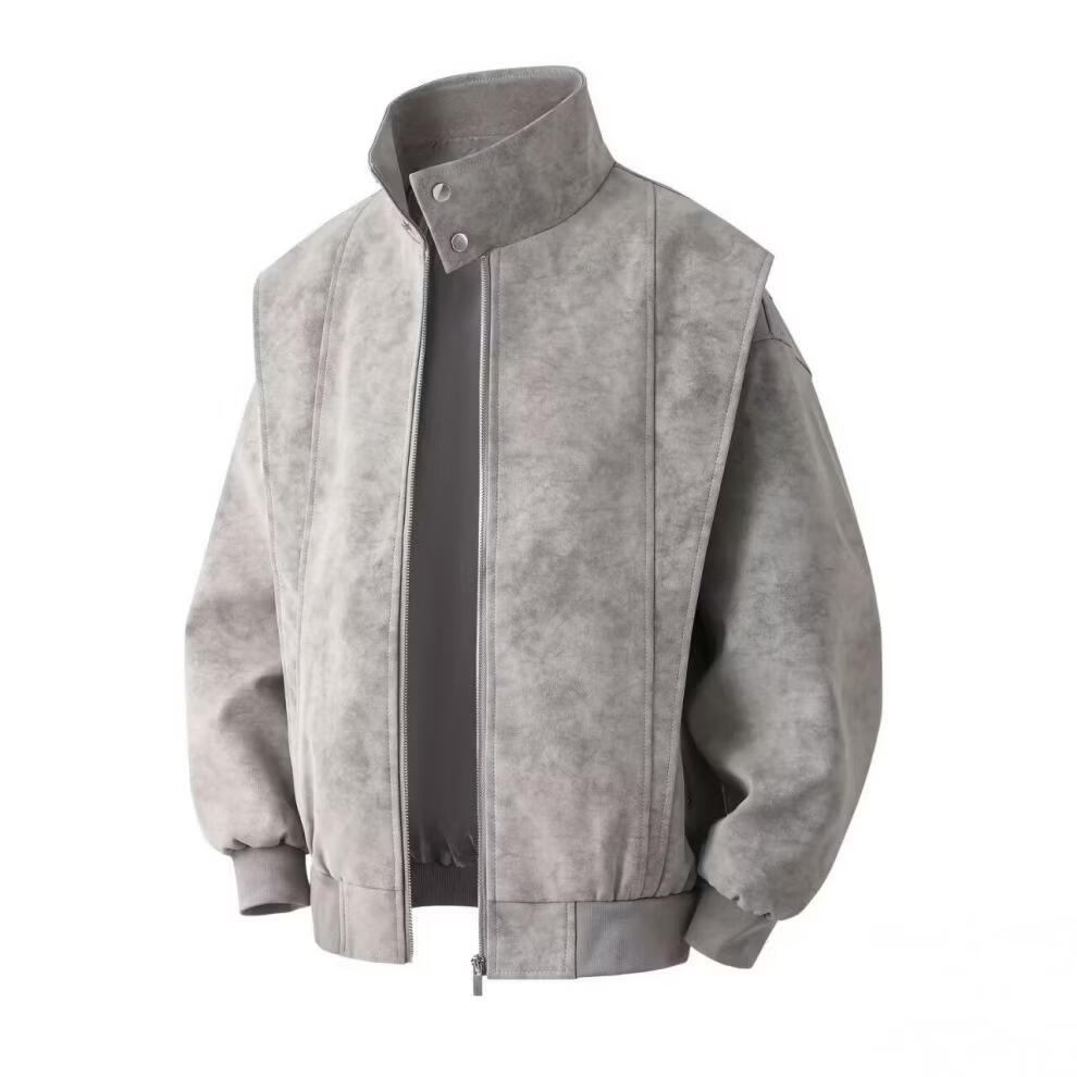 American retro leather jacket for men 2026 new tie-dye jacket spring loose stand-up collar handsome motorcycle jacket for men light gray M