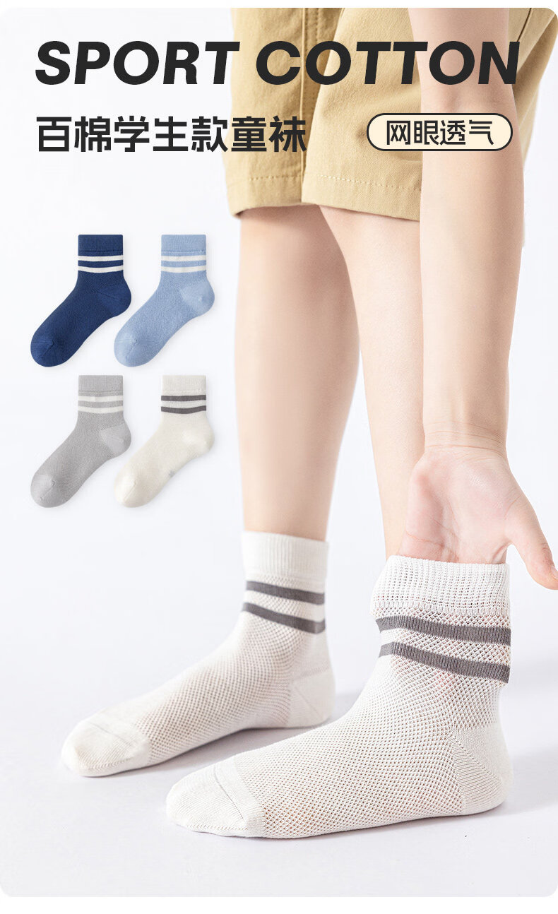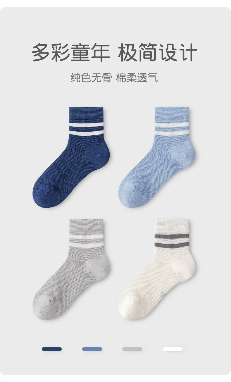 MiiOW children's socks spring and summer thin pure cotton mesh breathable big children's boys' boneless cotton socks boys' school socks 2607 4 pairs in total 3-5 years old M recommended shoe size 24-27