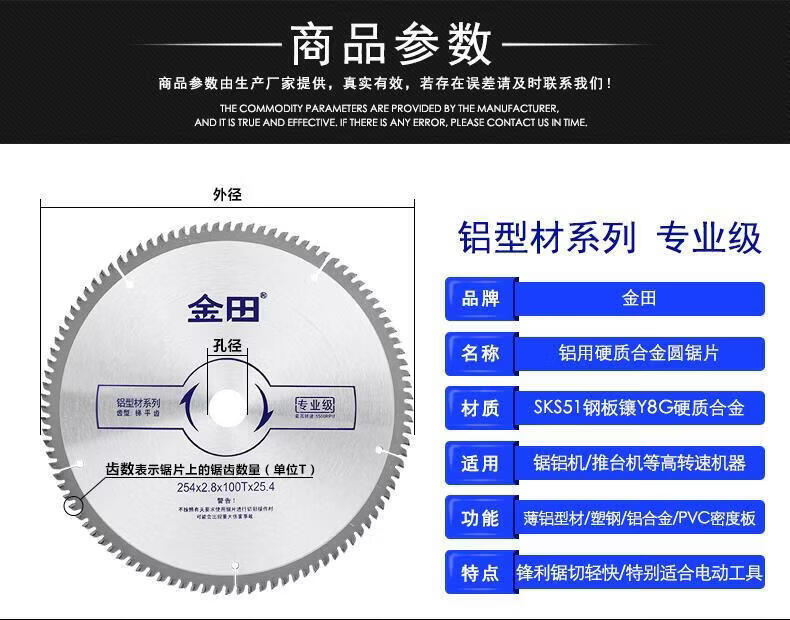 Jintian aluminum saw blade aluminum alloy 120 tooth circular saw blade grade 10 inch 255 cutting blade 7 inch aluminum saw machine 355 12 inch 300x3.0x100 teeth x30
