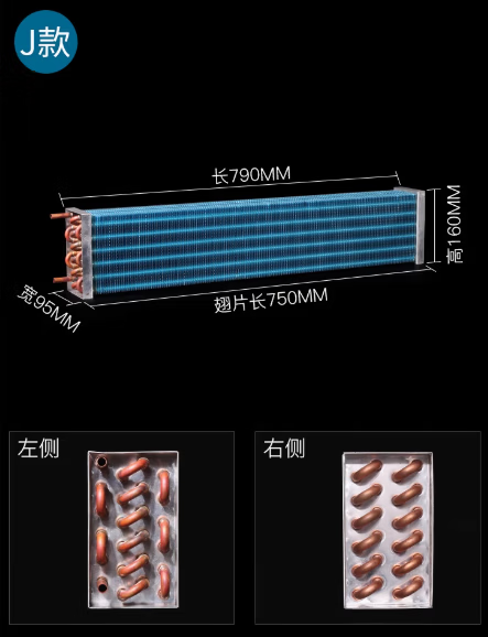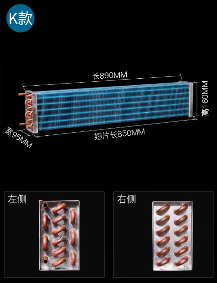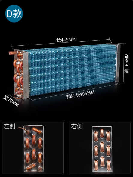 XMSJ air-cooled copper tube condenser refrigerator freezer chiller water air-conditioning fresh cabinet water-cooled radiator evaporator A type double air outlet condenser + 2 120 fans