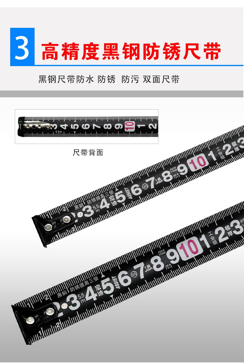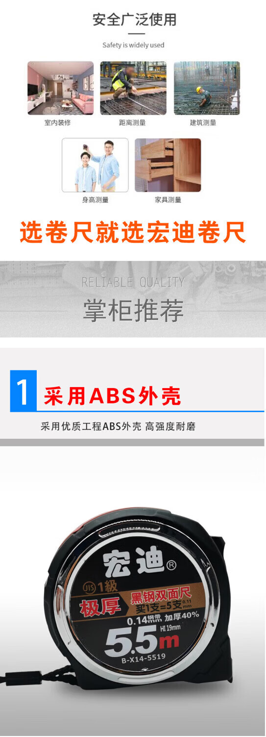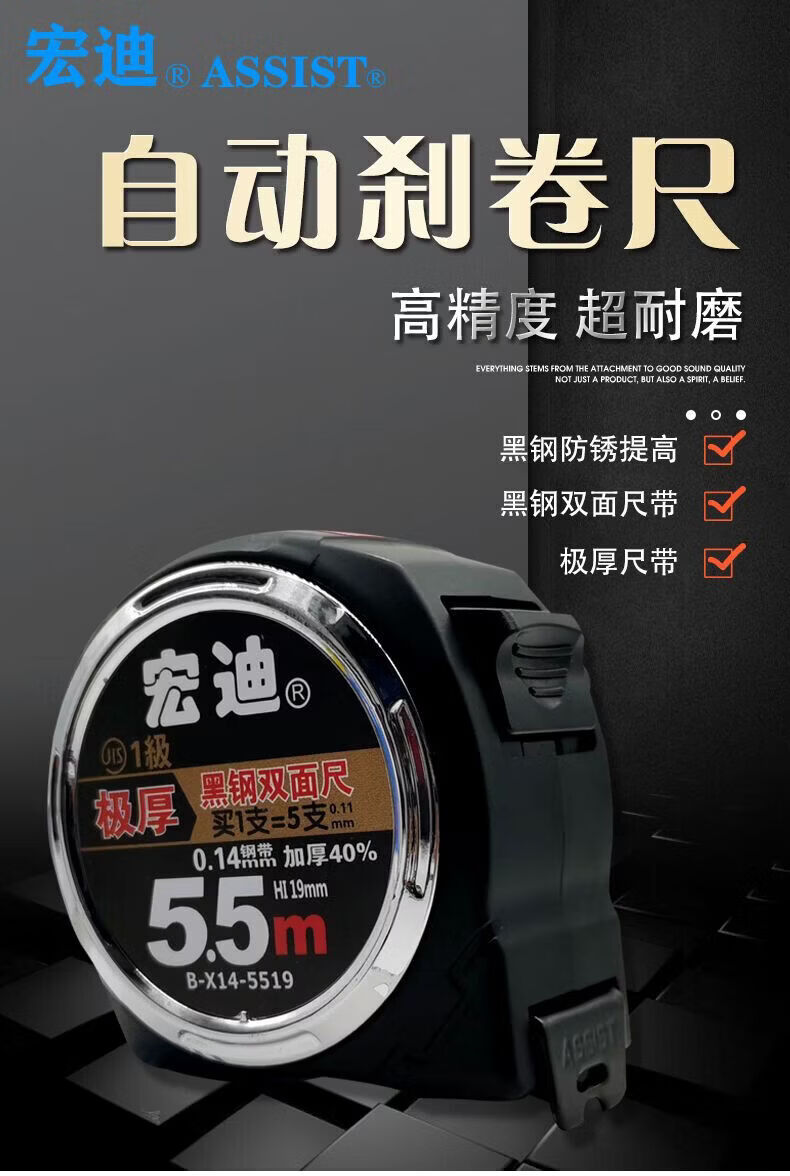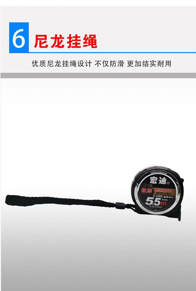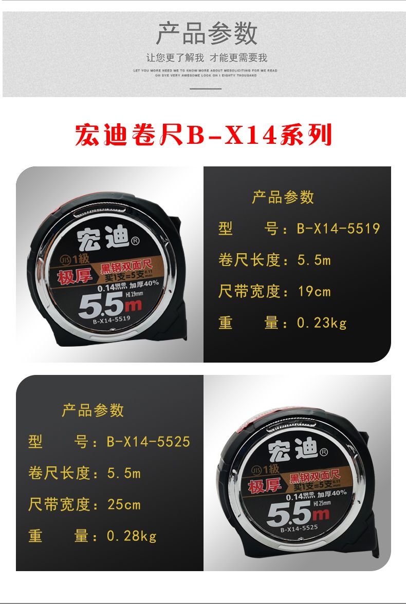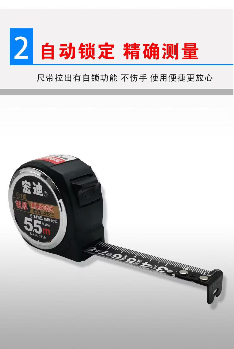 Hongdi-Lineal aus gerolltem Reiskasten aus schwarzem Stahl, wasserdicht, rost- und korrosionsbeständig, 5,5 Meter, minimale Verdickung, erstklassige japanische Präzision, doppelseitig verschleißfest B-X14-3816