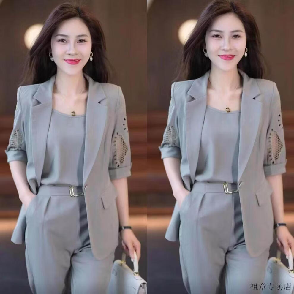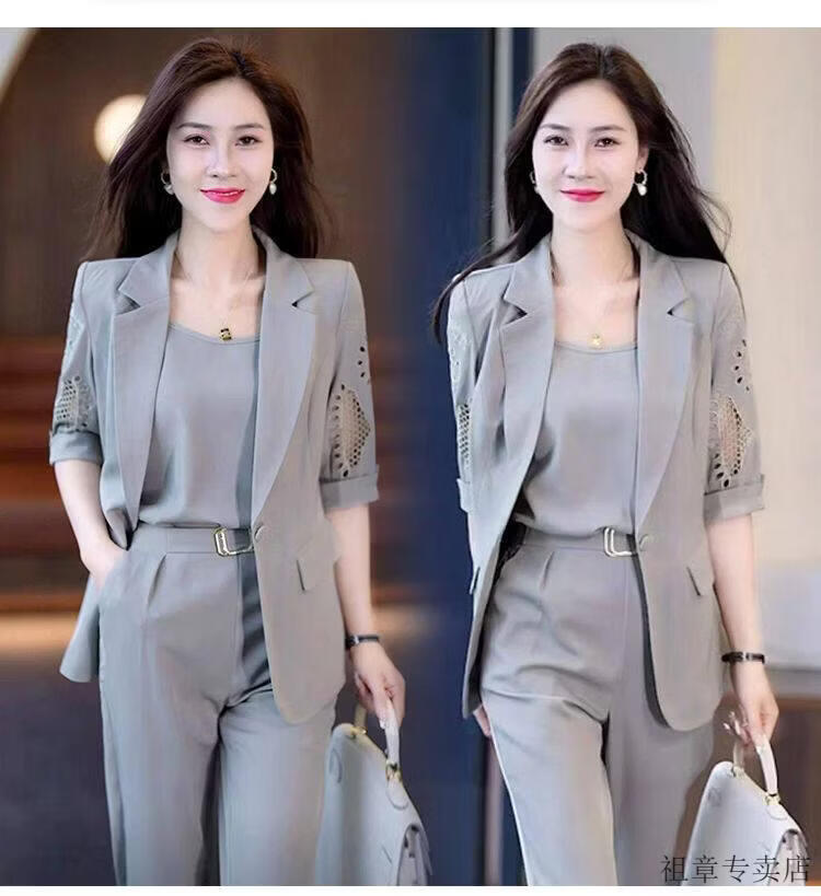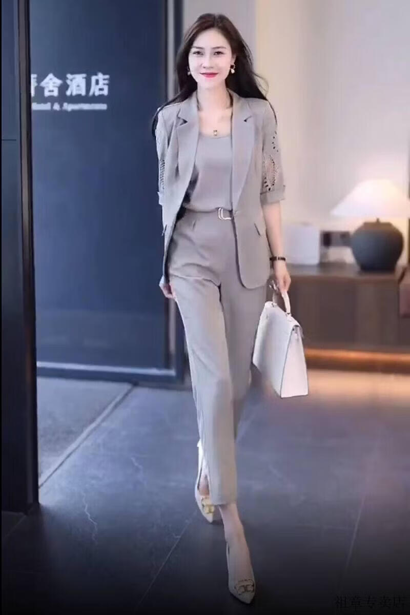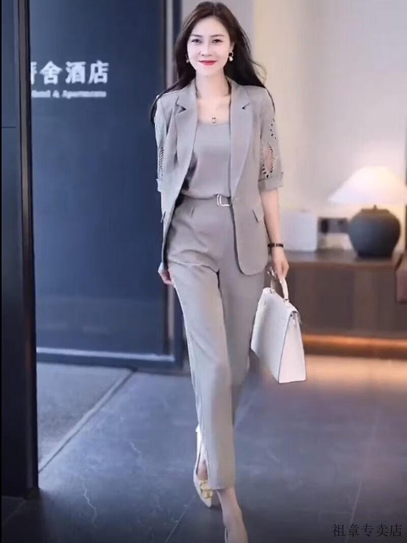 Hengyuanxiang fashionable temperament small suit suit for women 2026 spring and summer new style professional sense suit and pants three-piece set gray coat + vest + pants three-piece set M recommended 75-95Jin Jin equals 0.5 kg