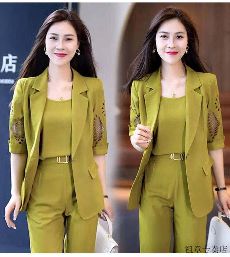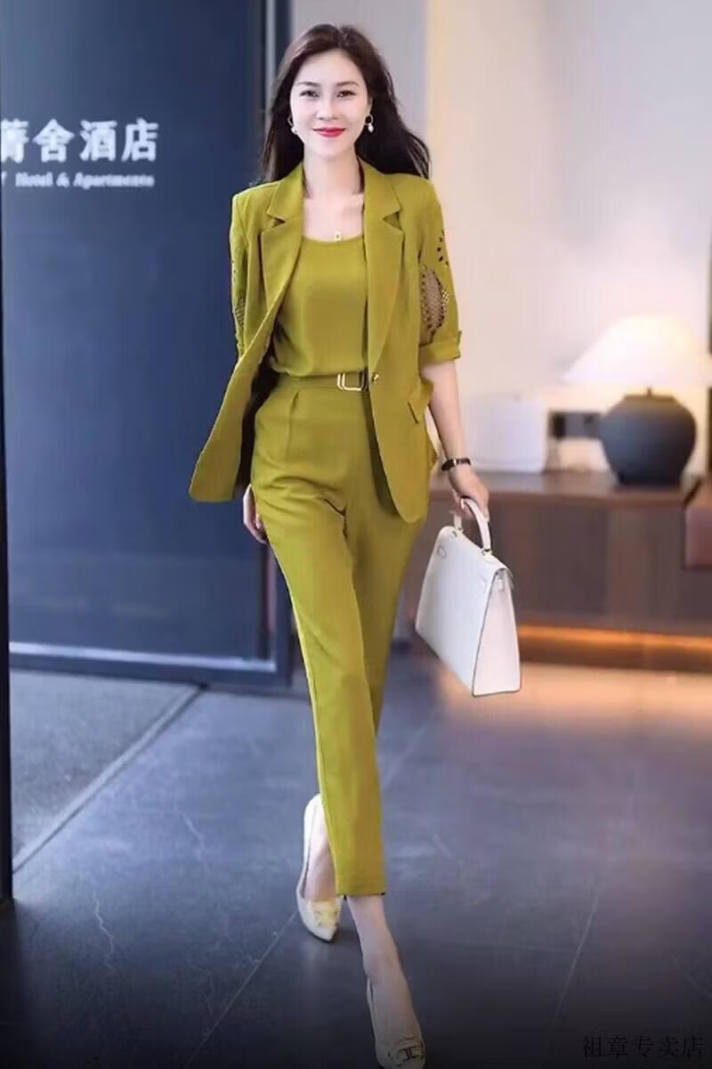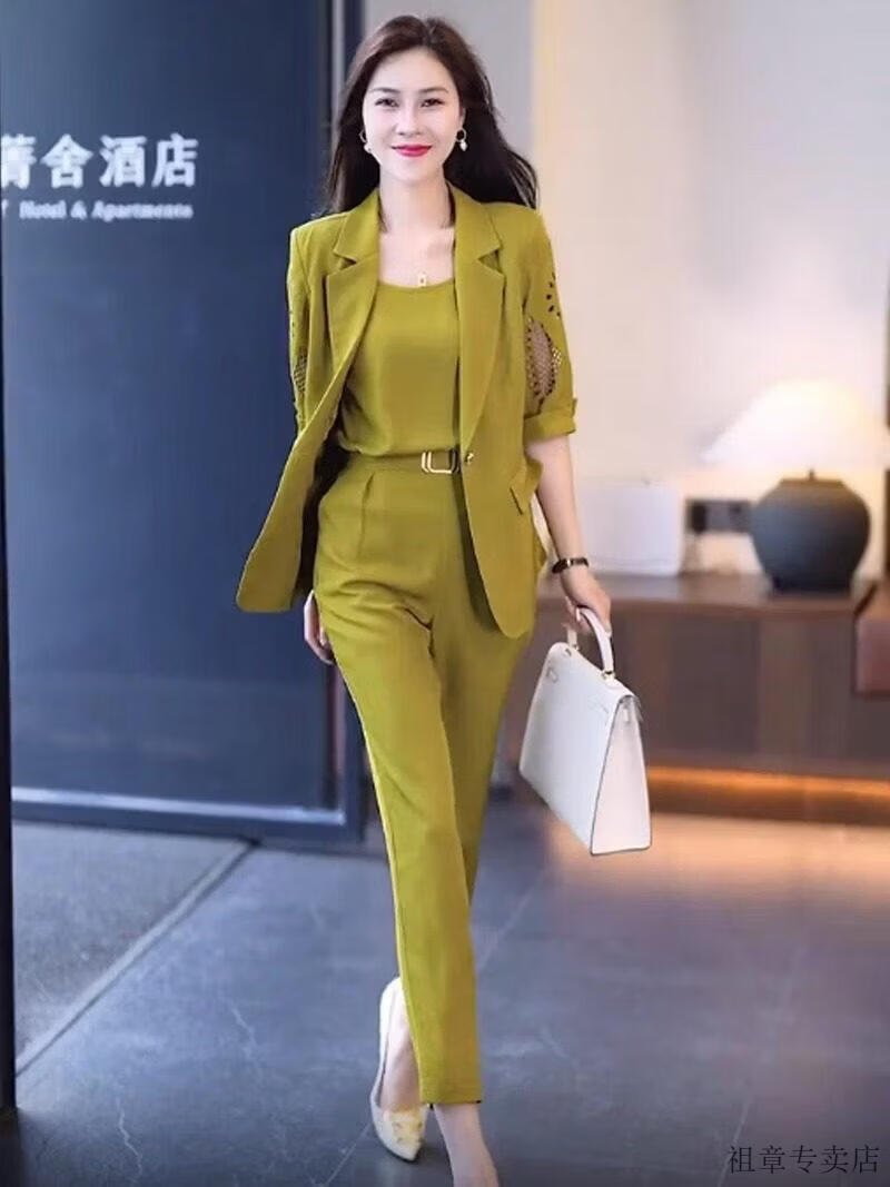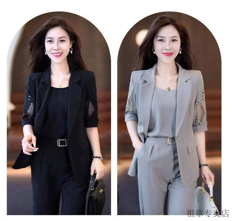 Hengyuanxiang fashionable temperament small suit suit for women 2026 spring and summer new style professional sense suit and pants three-piece set gray coat + vest + pants three-piece set M recommended 75-95Jin Jin equals 0.5 kg