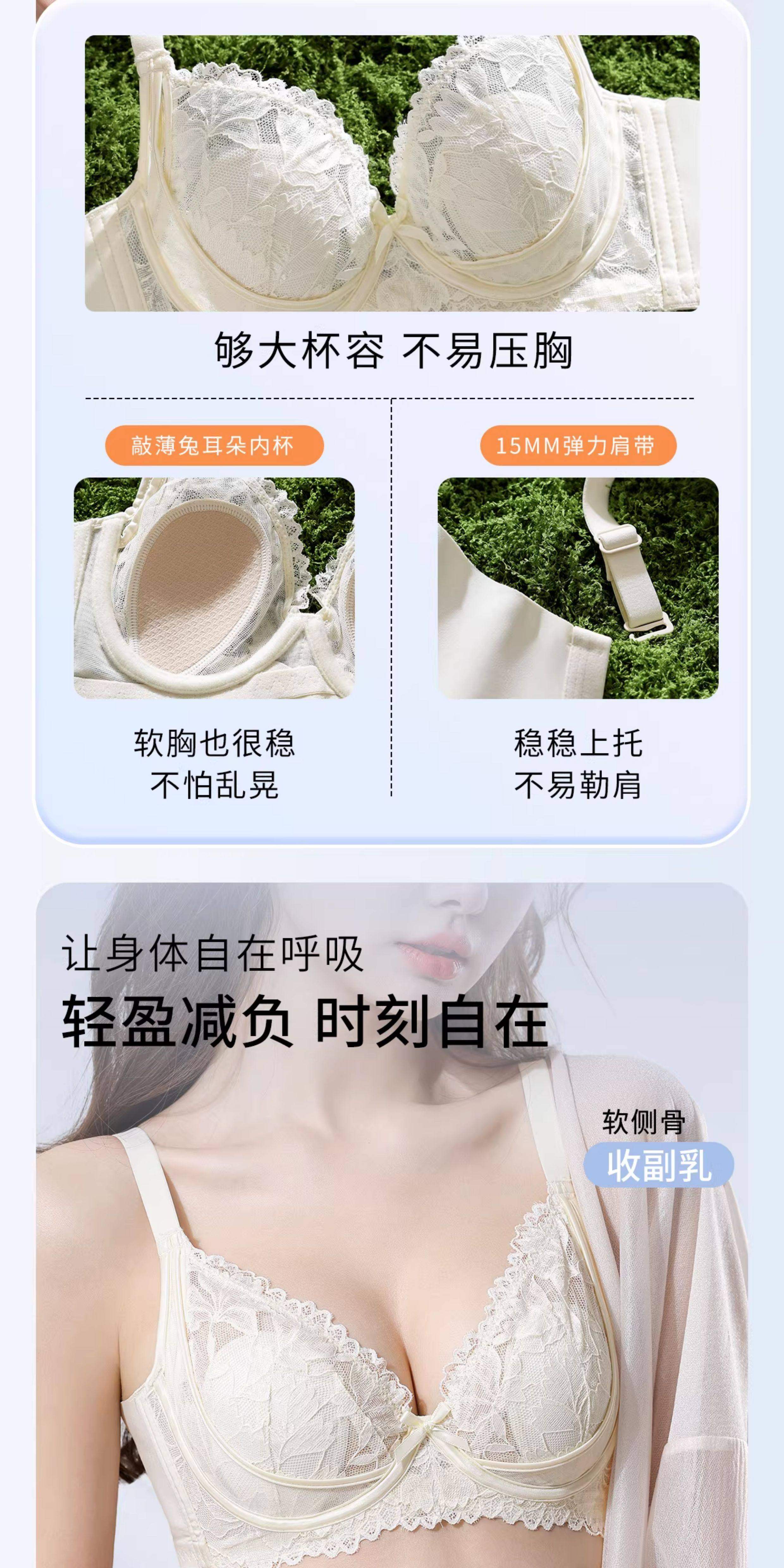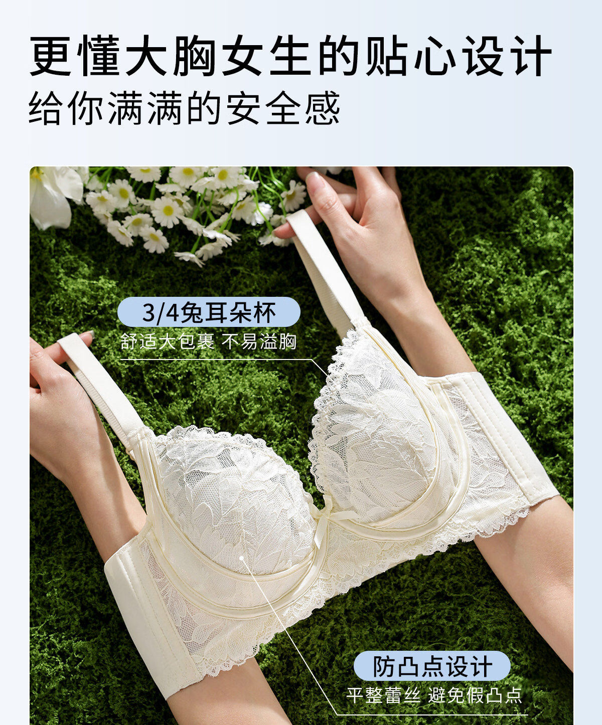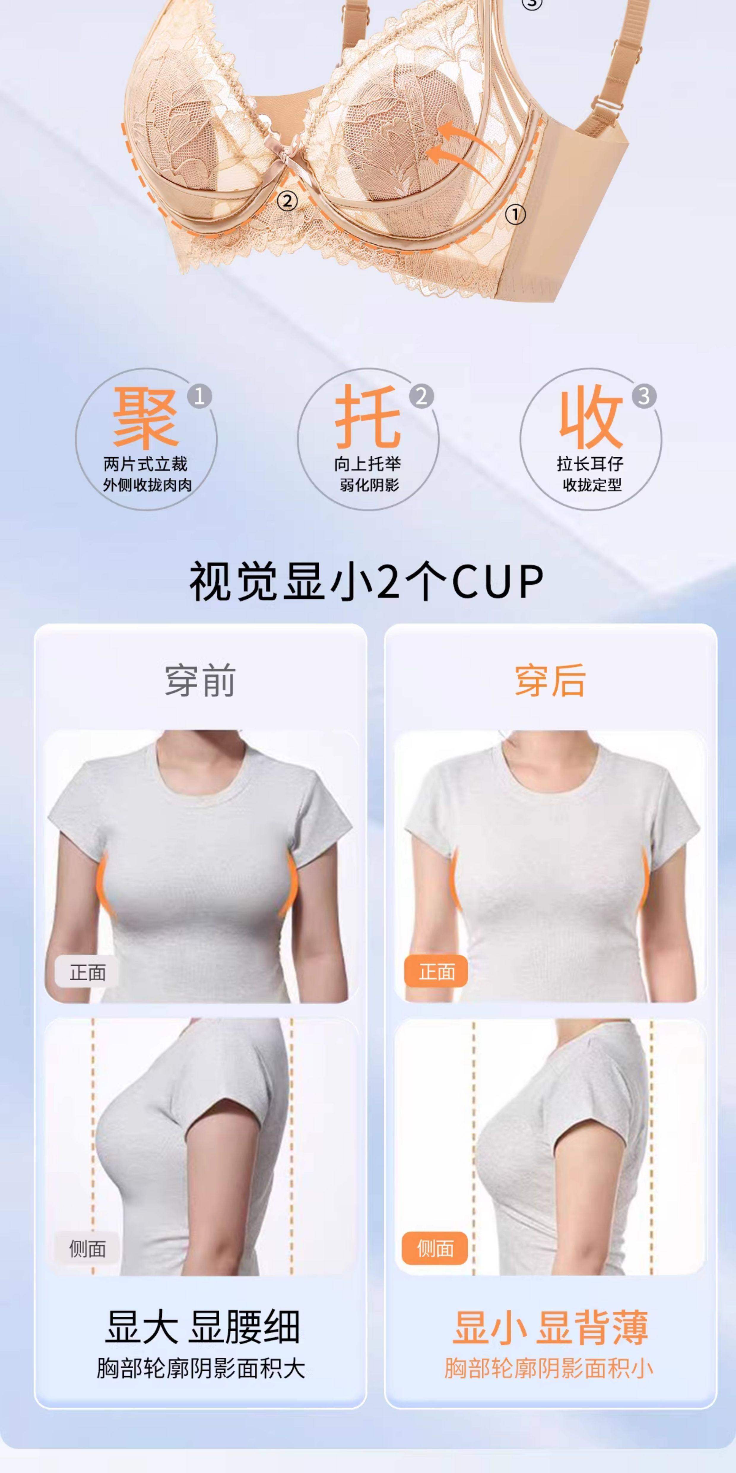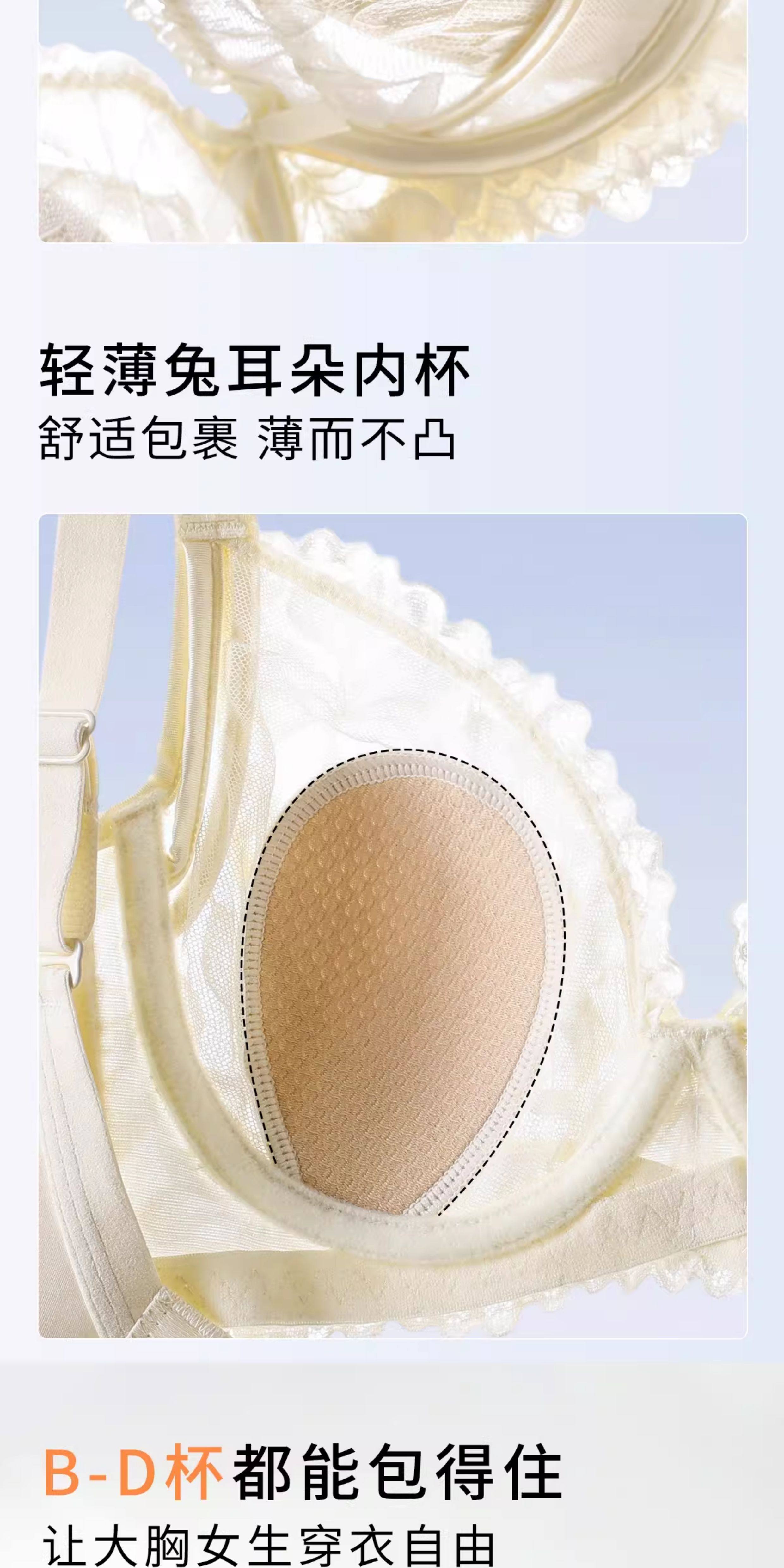 Urban Beauty Lace Underwear Women's Summer Thin Rabbit Ear Cup Breathable Breast Reduction Prevent Sagging Gather Big Breasts Make Small Bra Champagne White Big Breasts Make Smaller Prevent Sagging 75B BC Cup Approximately 90-105 Jin Jin is equal to 0.5 kg