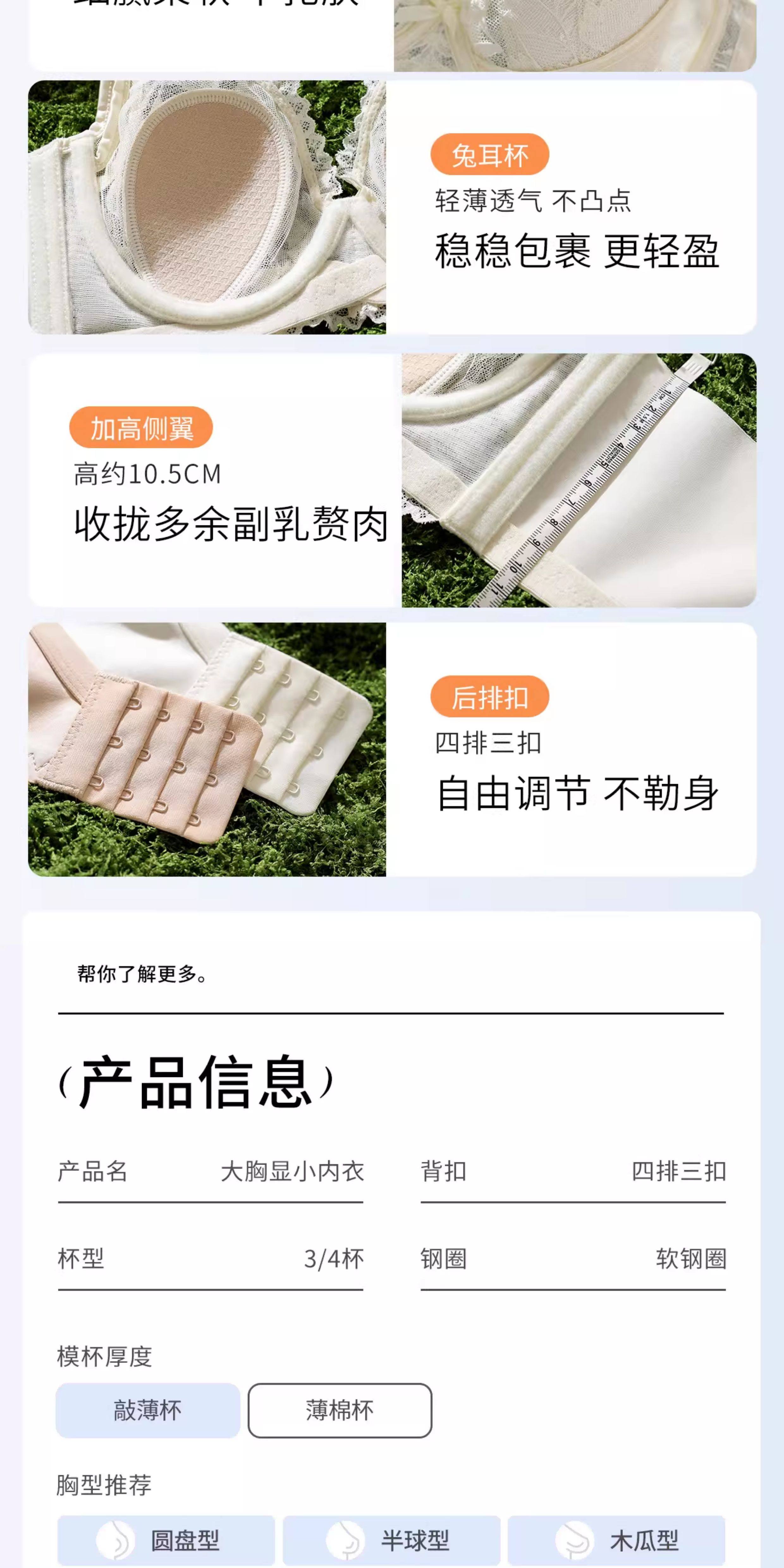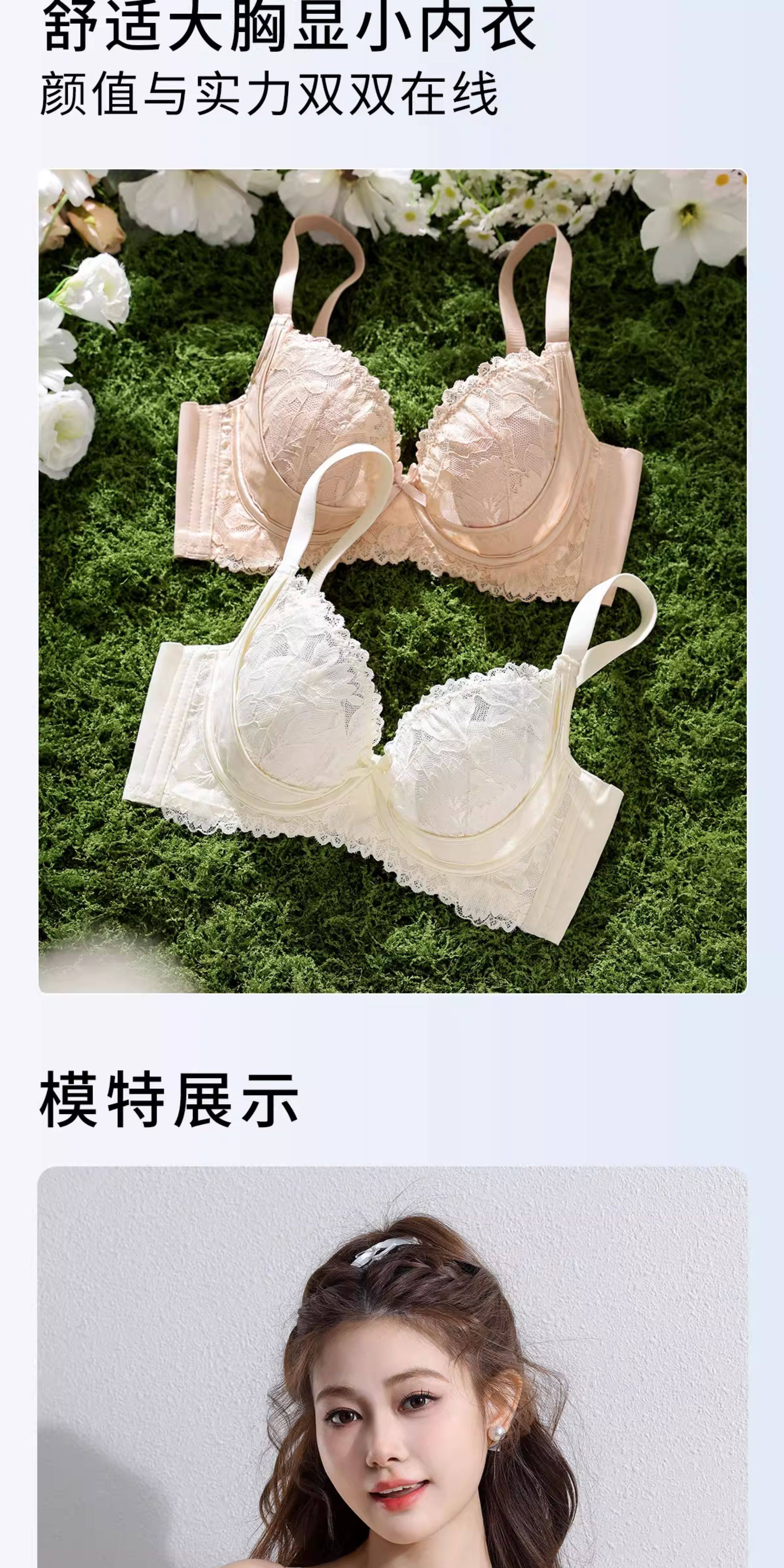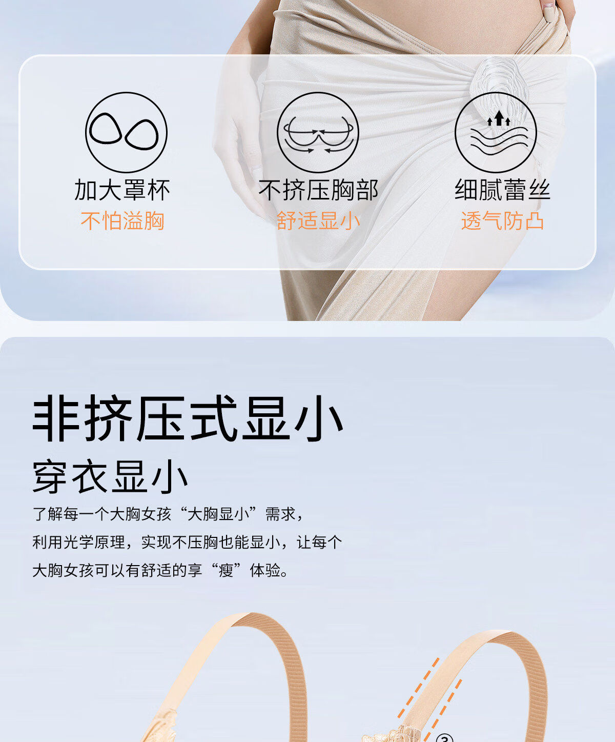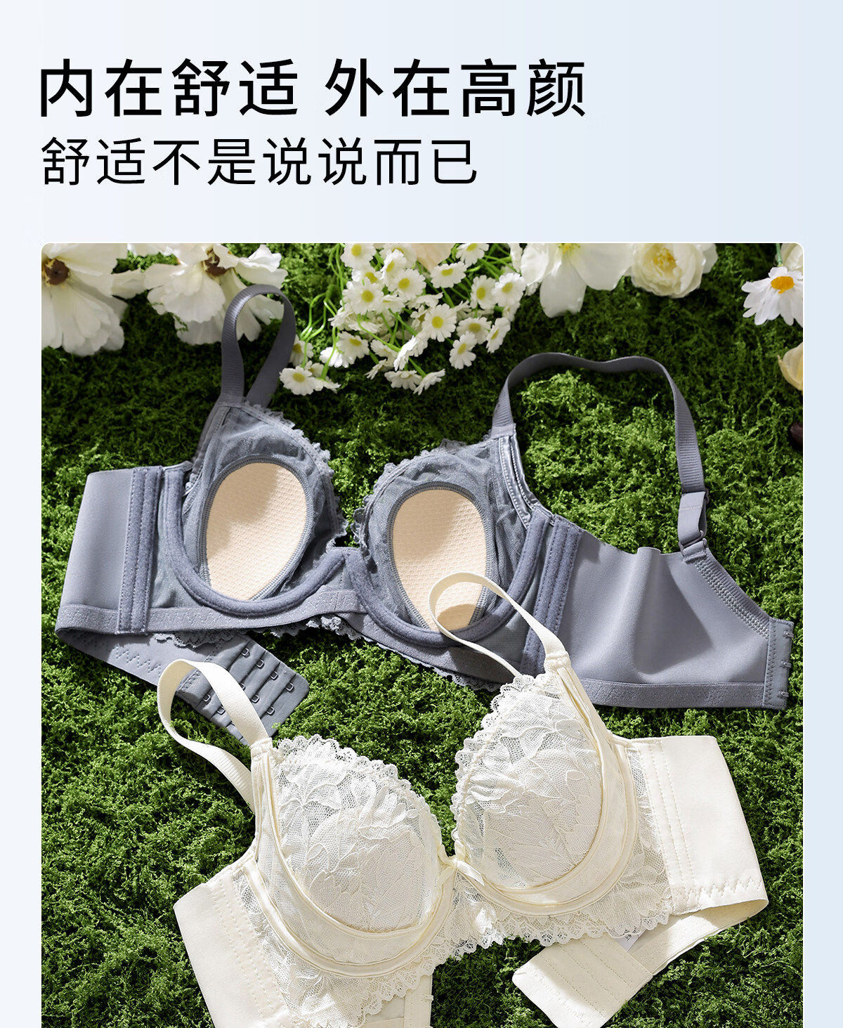 Urban Beauty Lace Underwear Women's Summer Thin Rabbit Ear Cup Breathable Breast Reduction Prevent Sagging Gather Big Breasts Make Small Bra Champagne White Big Breasts Make Smaller Prevent Sagging 75B BC Cup Approximately 90-105 Jin Jin is equal to 0.5 kg