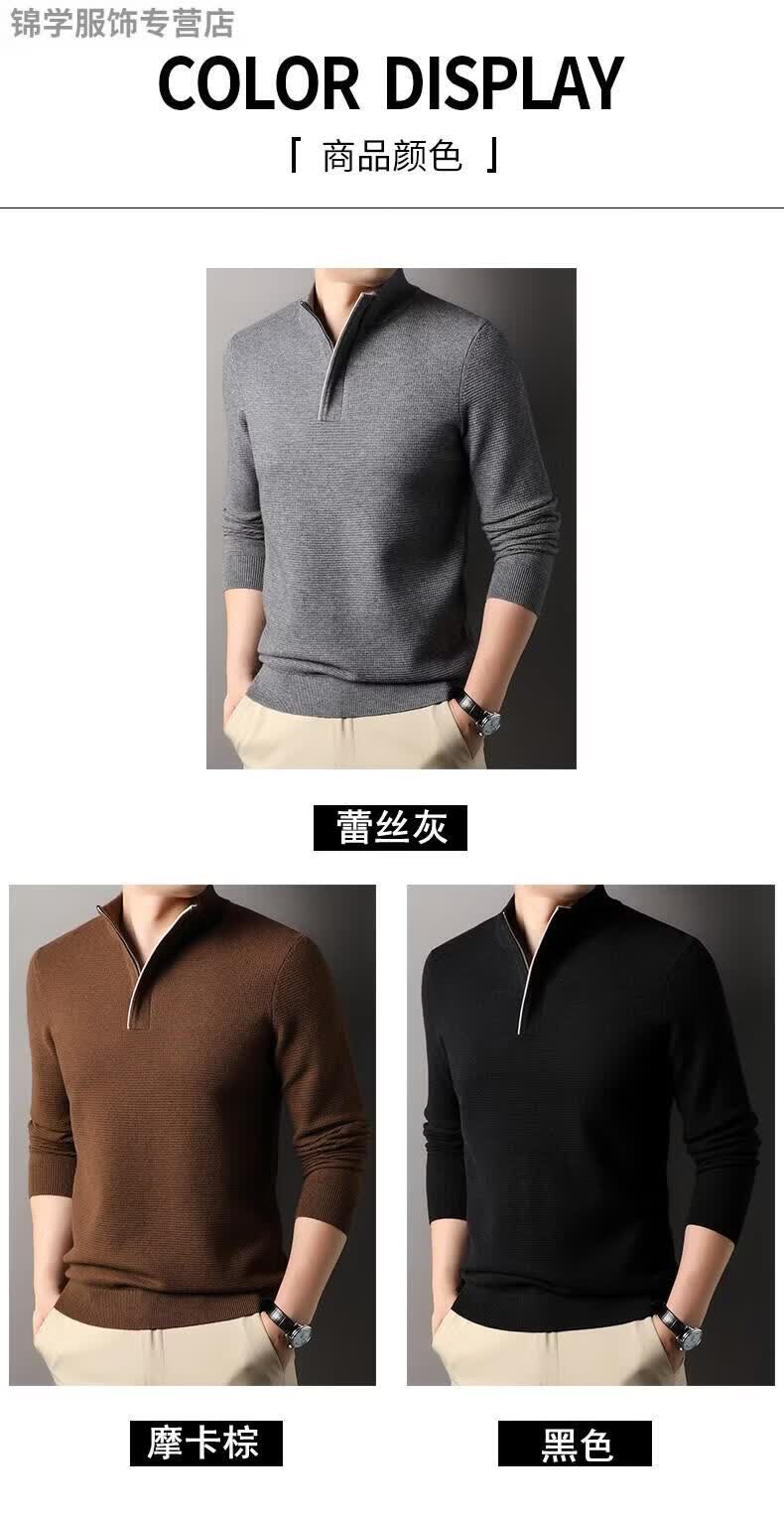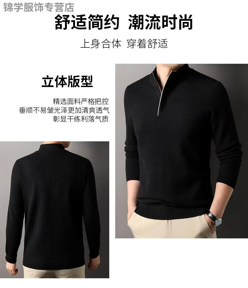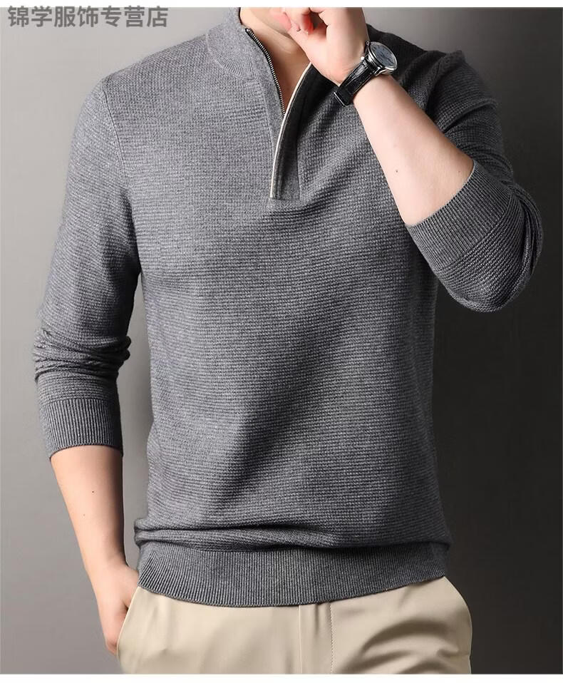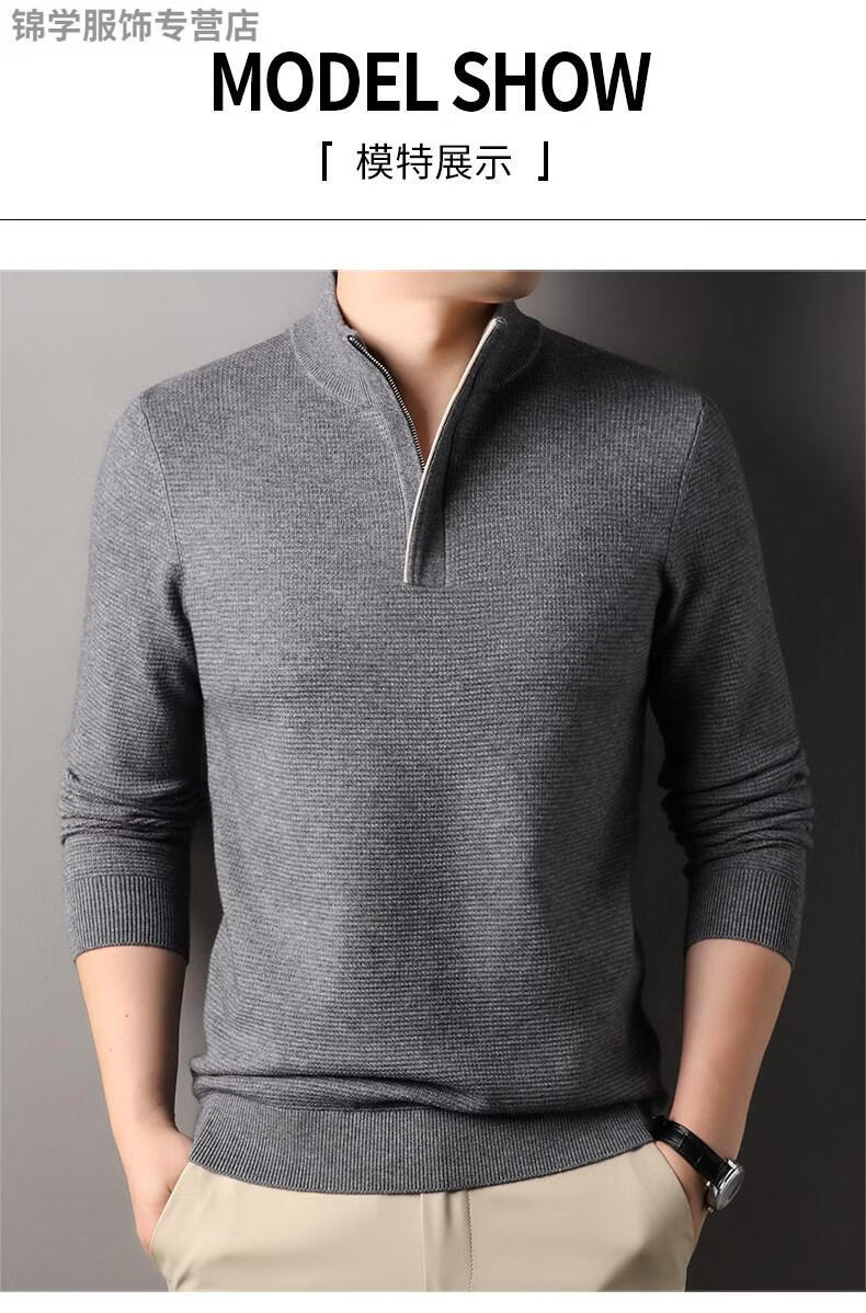 GY Youngor men's half-high zipper fashion casual stand-up collar solid color woolen sweater thickened new men's bottoming knitted lace gray M 165 recommended 95-115Jin Jin equals 0.5 kg