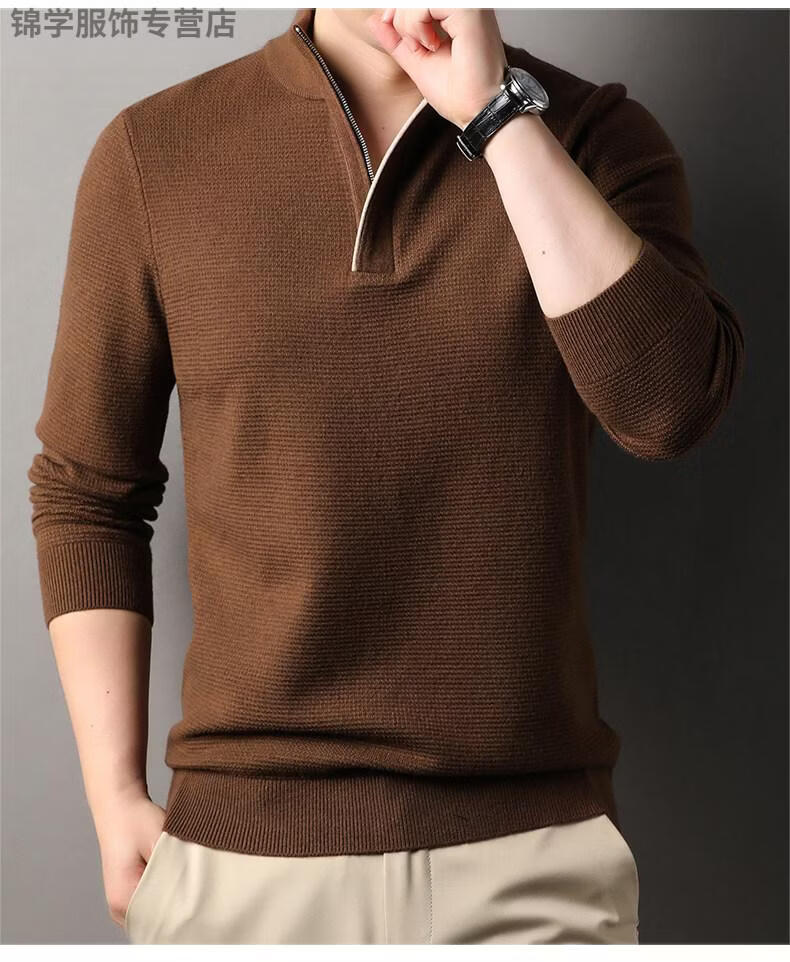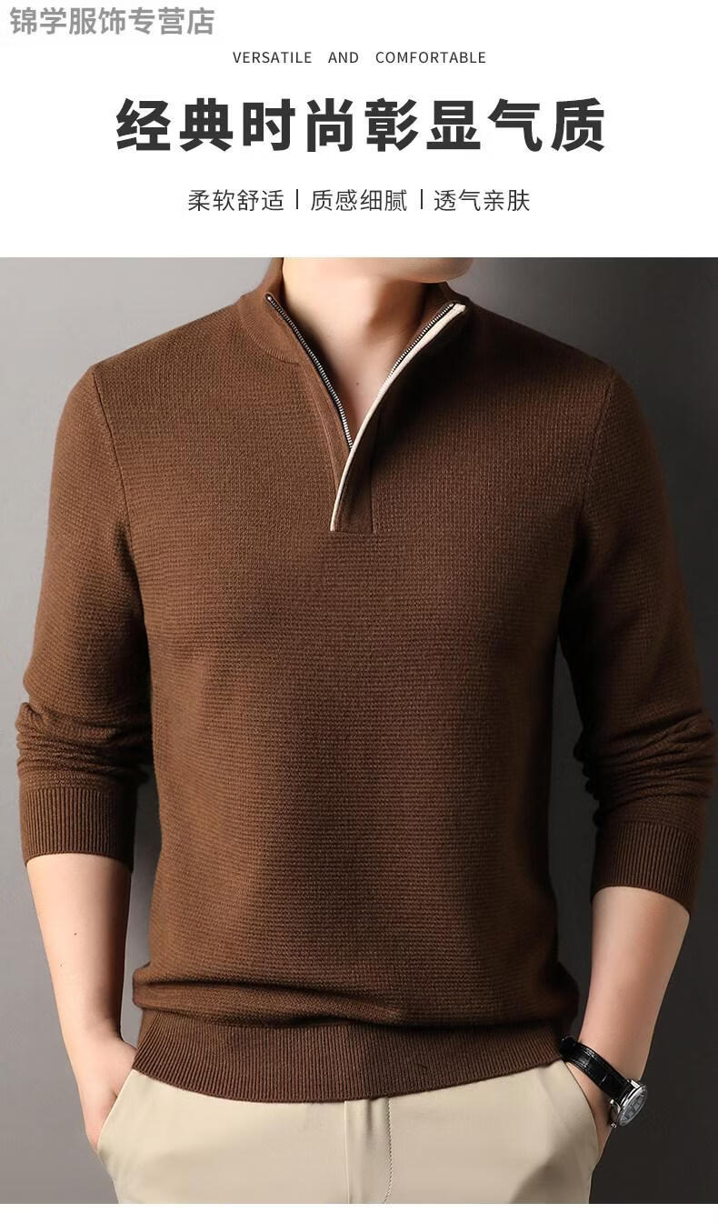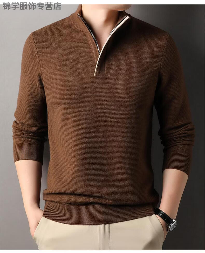 GY Youngor men's half-high zipper fashion casual stand-up collar solid color woolen sweater thickened new men's bottoming knitted lace gray M 165 recommended 95-115Jin Jin equals 0.5 kg