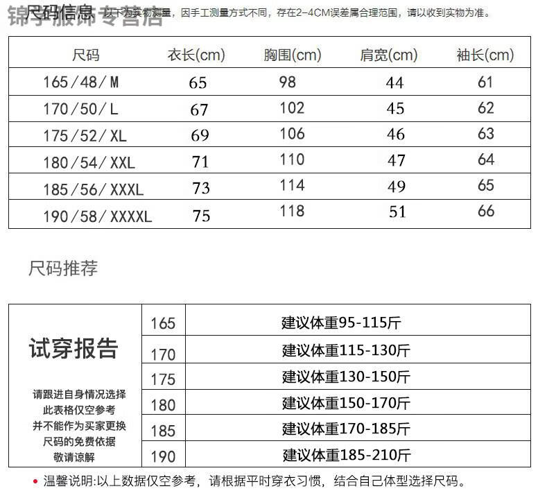 China (cm) 165 / 88-90 170 / 96-98 175 / 108-110 180 / 118-122 185 / 126-130
