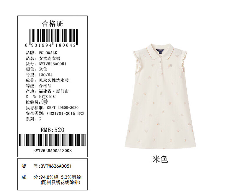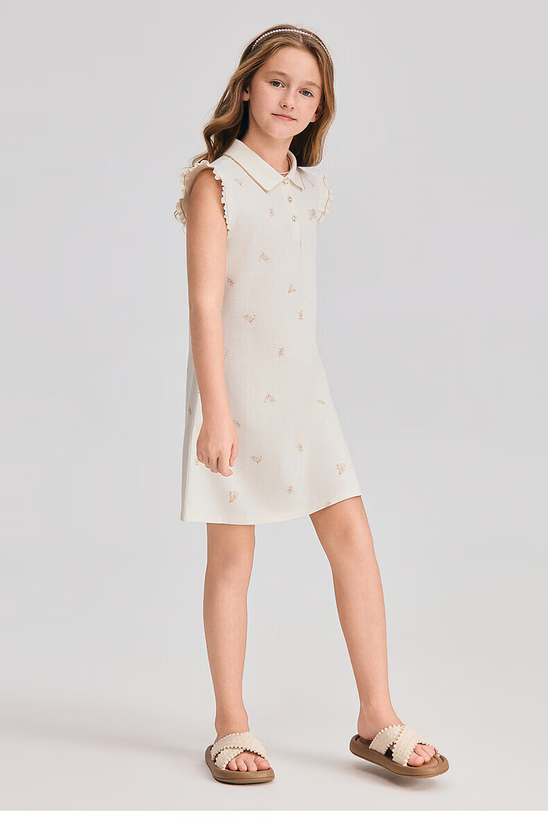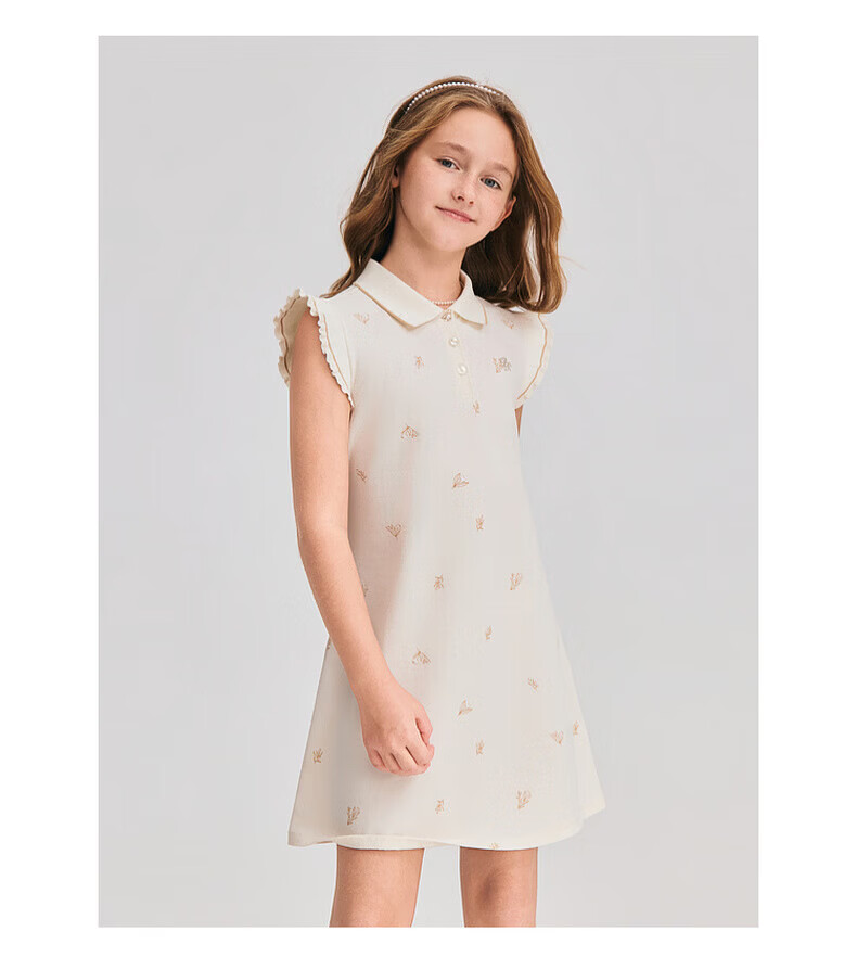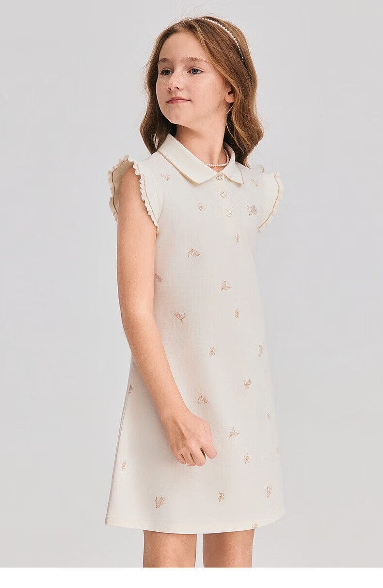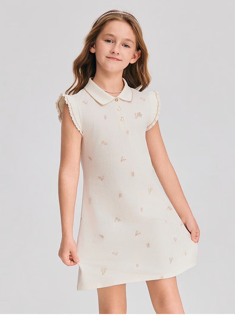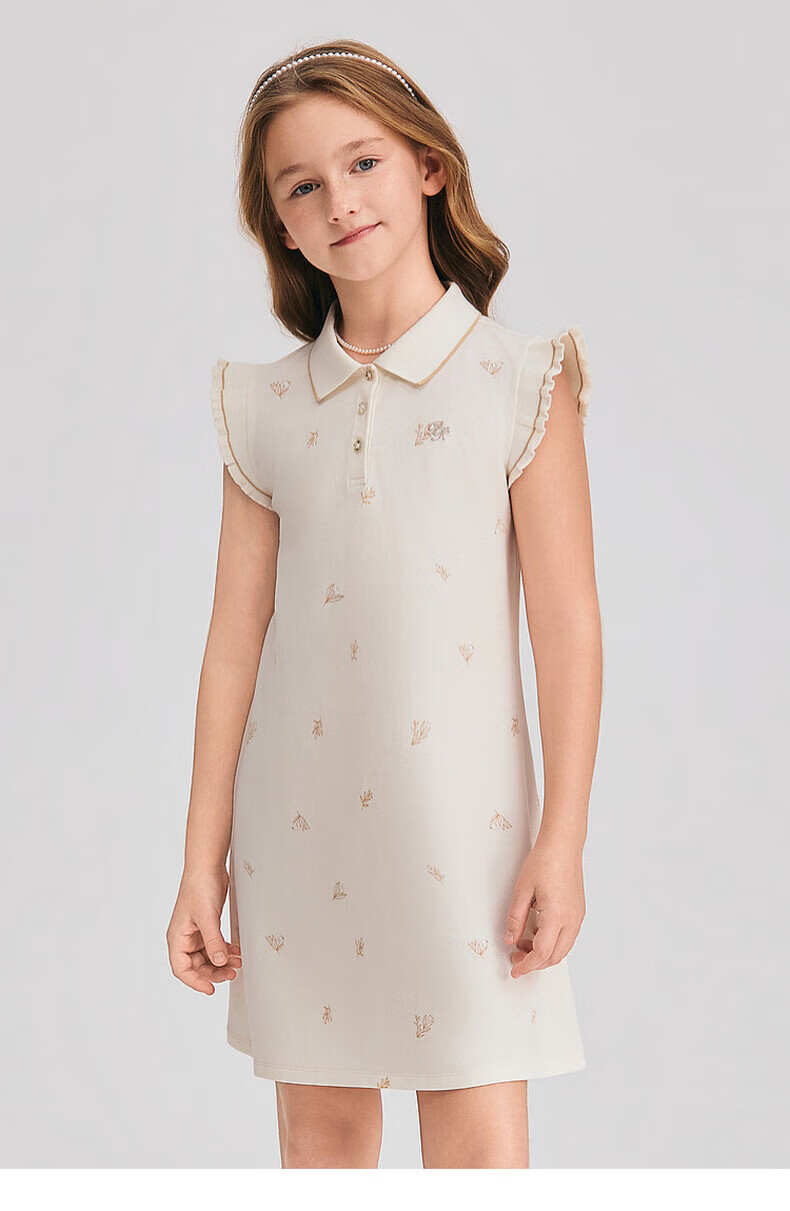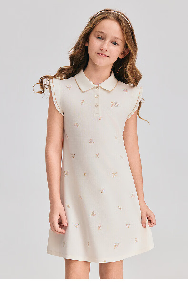 POLOWALK children's clothing 2026 summer new arrival girls short-sleeved dress POLO collar knitted long skirt children's skirt beige 110 cm