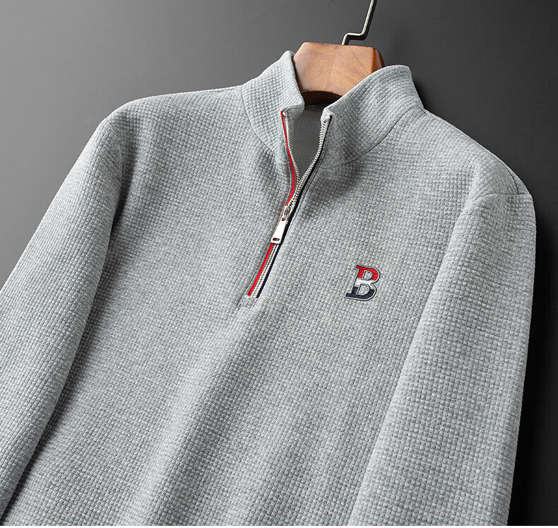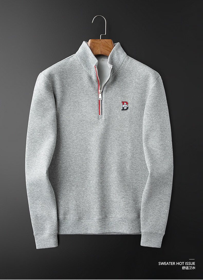 B PRORSUM British Burberry zipper stand collar sweatshirt spring and autumn new fashion trend slim men's cotton T-shirt black L 170