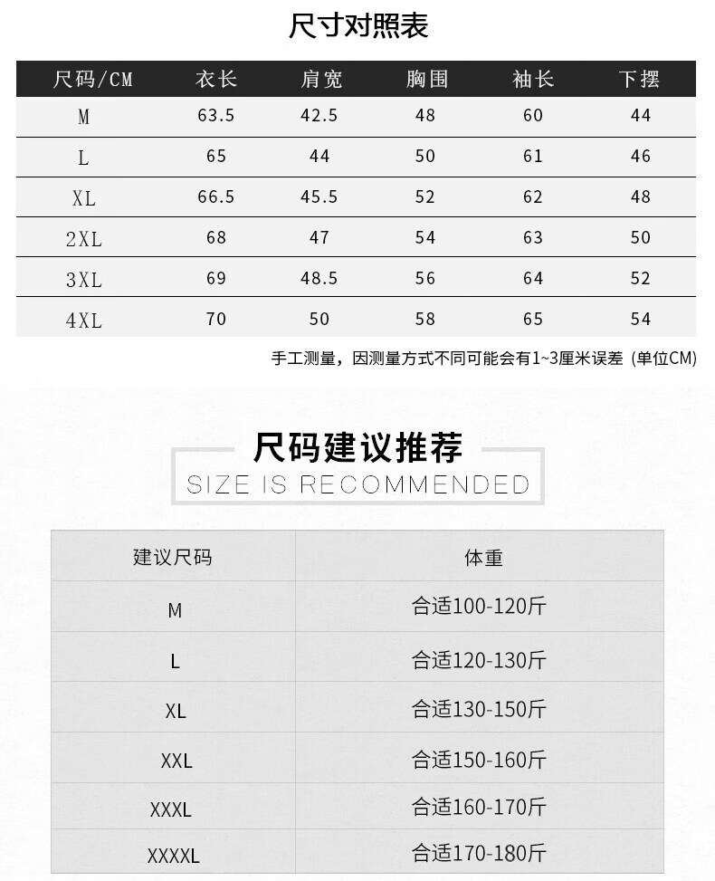 China (cm) 165 / 88-90 170 / 96-98 175 / 108-110 180 / 118-122 185 / 126-130