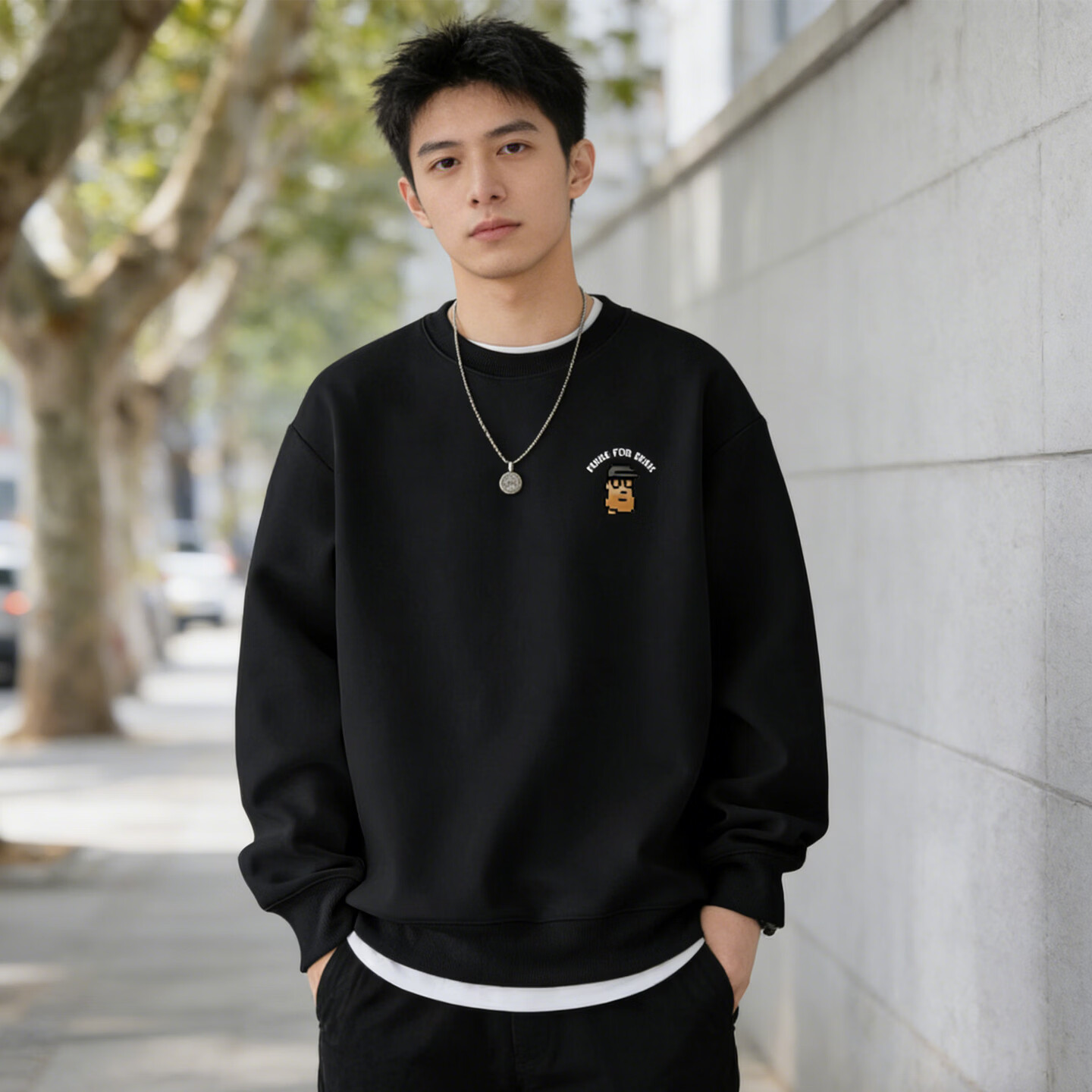 Playboy-Pullover Herren 2026 Frühjahr Neues trendiges lockeres Rundhals-Oberteil Männlicher Student All-Match-Casual-Bottom-Shirt Schwarz S 95-120Jin Jin entspricht 0,5 kg