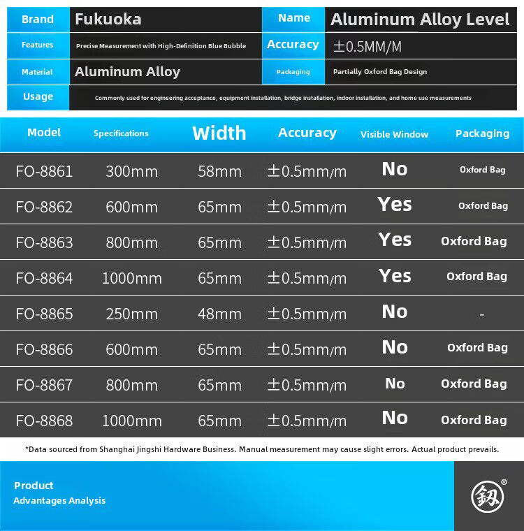 Sailoto Fukuoka high-precision strong magnetic mini level German solid aluminum alloy level 300mm 8861 + Oxford bag