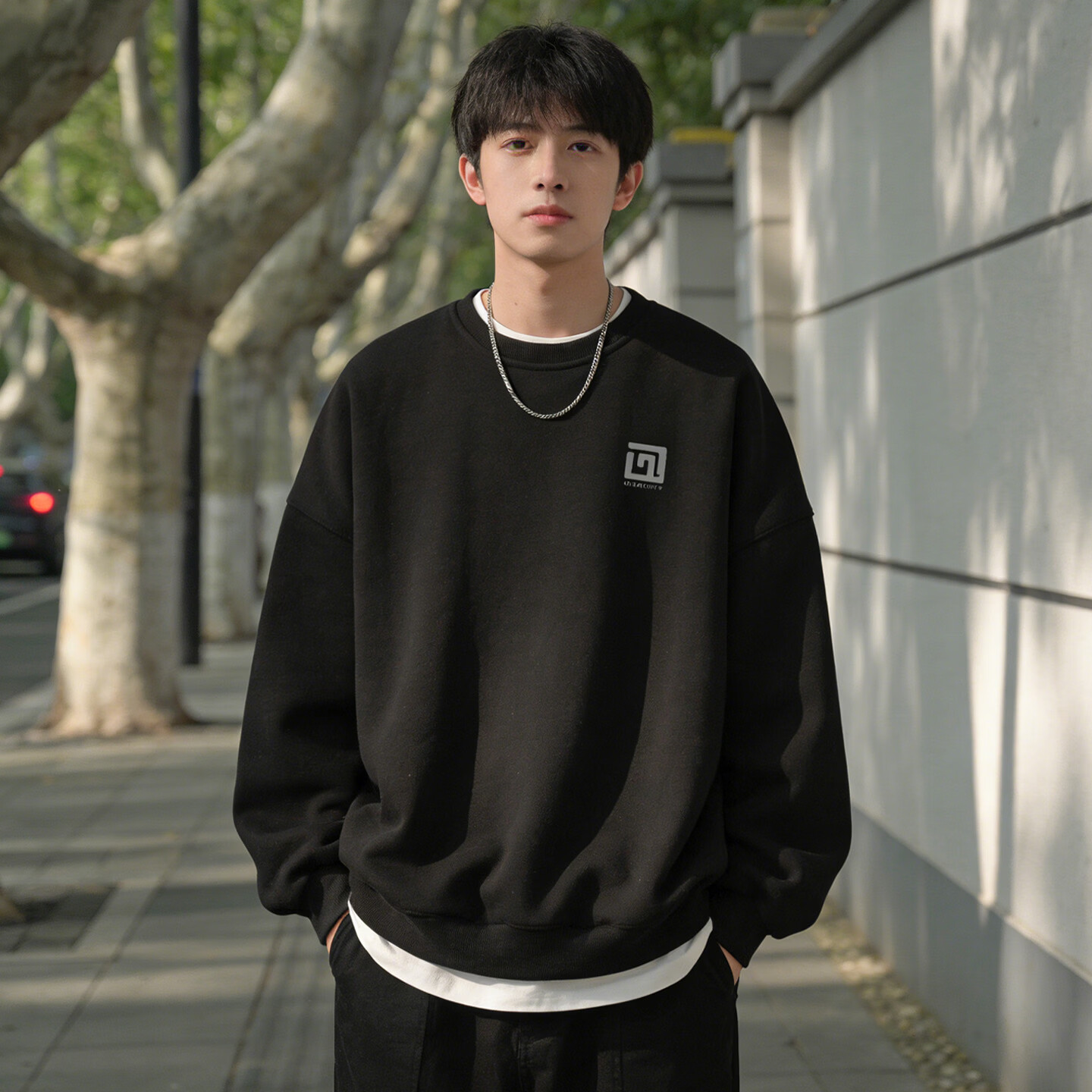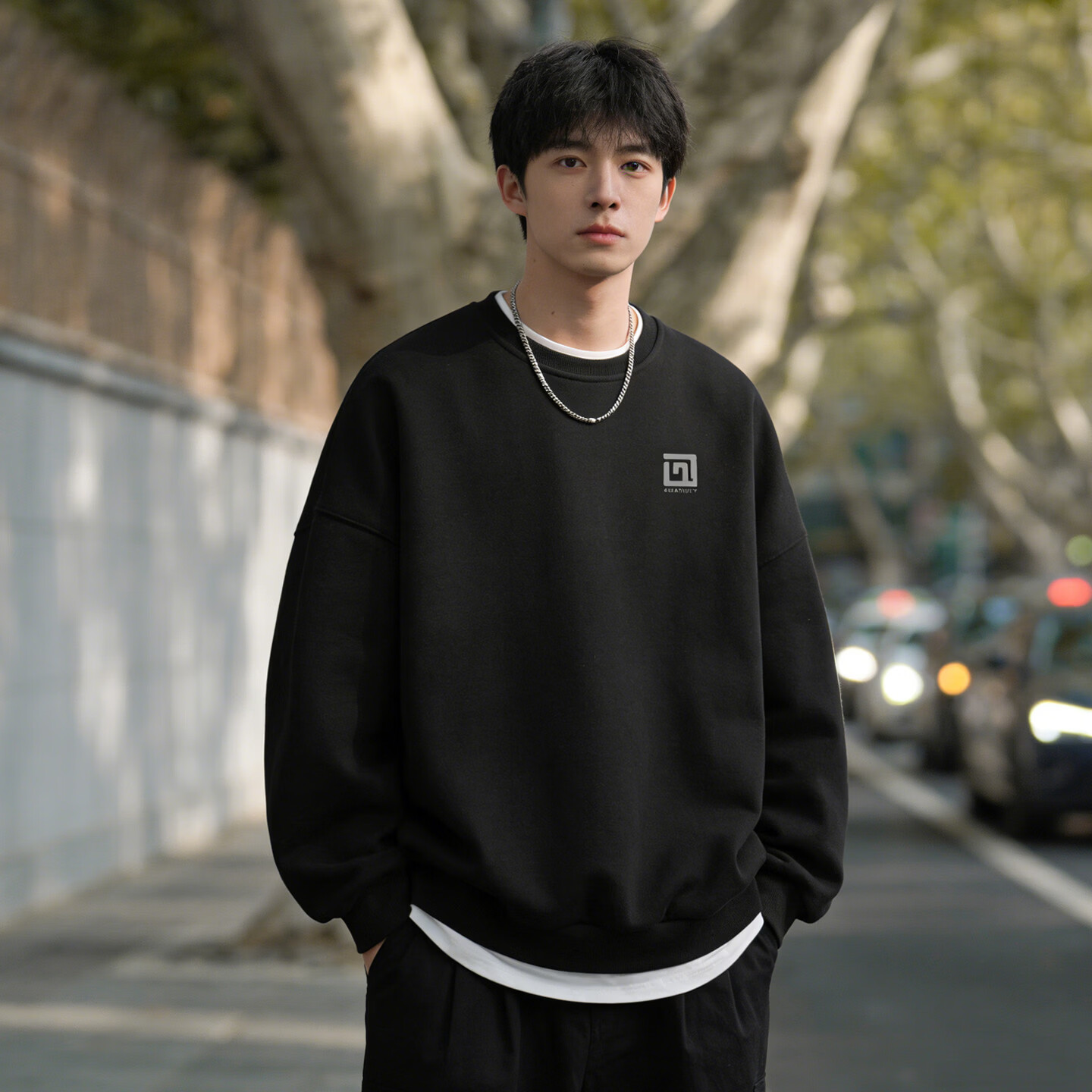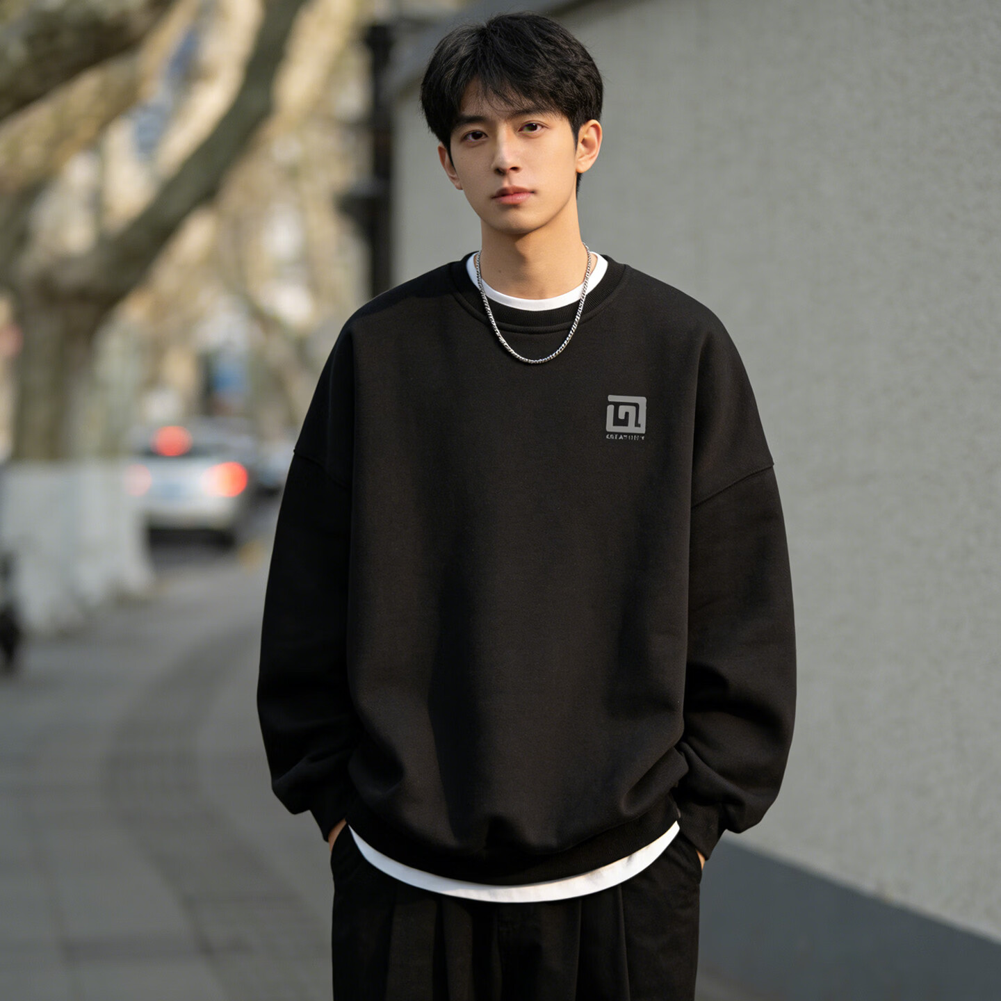 Playboy American Heavyweight Velvet Thickened Round Neck Sweater Men's 2026 Spring Loose Casual Bottoming Shirt Top Black S 95-120Jin Jin is equal to 0.5 kg