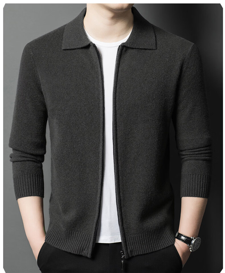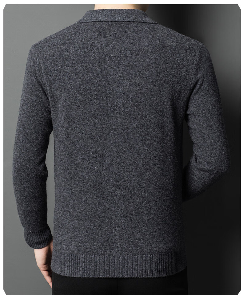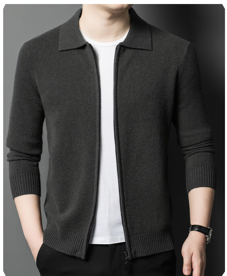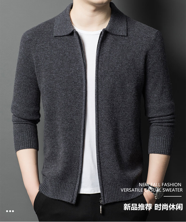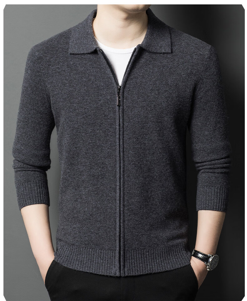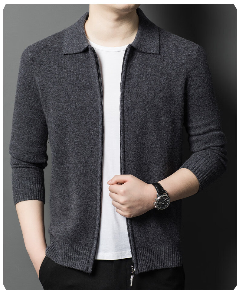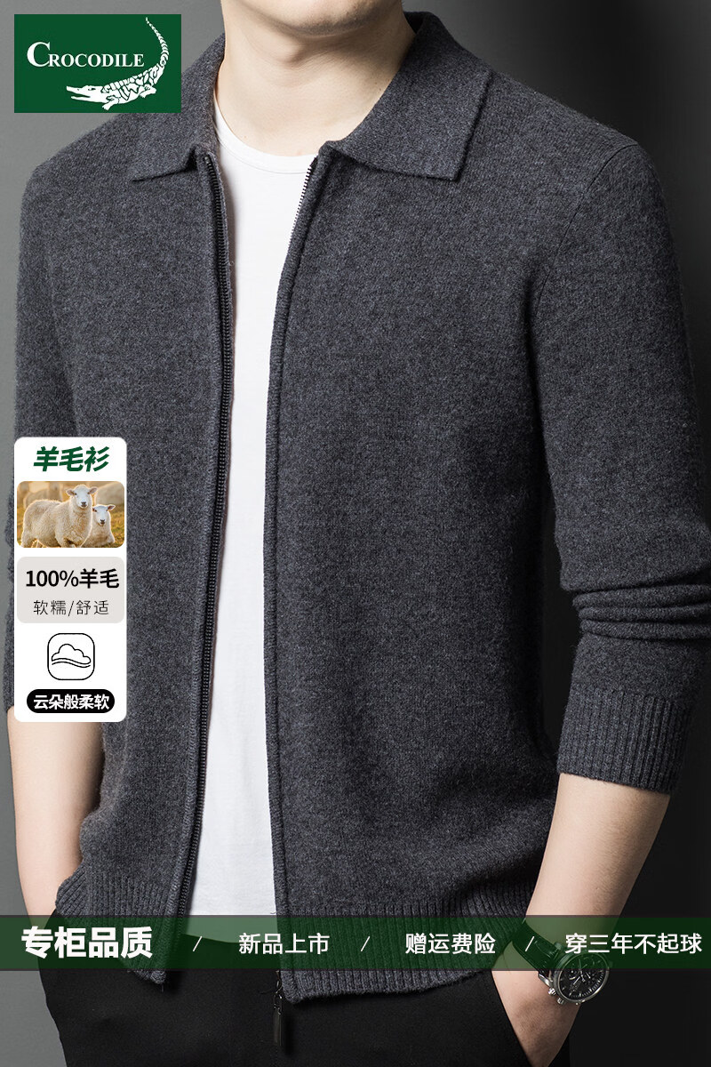 Crocodile CARTELO French crocodile pure wool sweater crocodile shirt lapel zipper cardigan men's autumn and winter solid color needle gray M recommended 90-115Jin Jin equals 0.5 kg