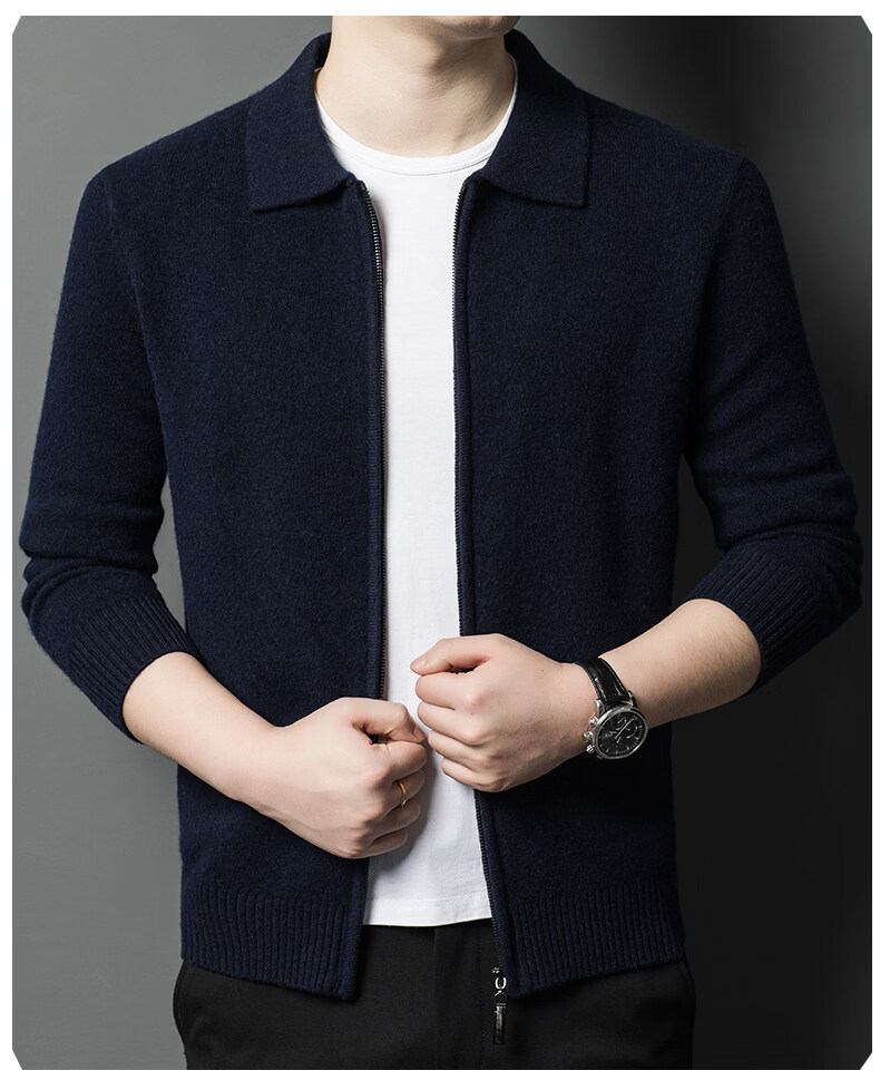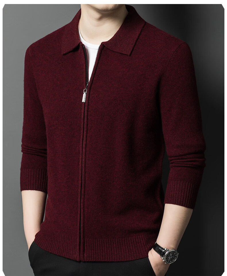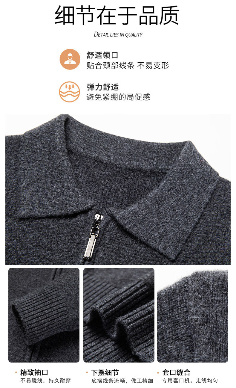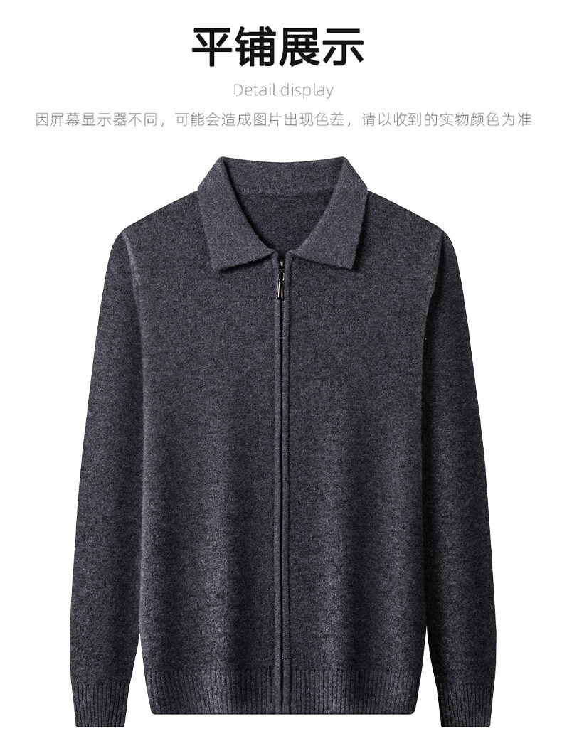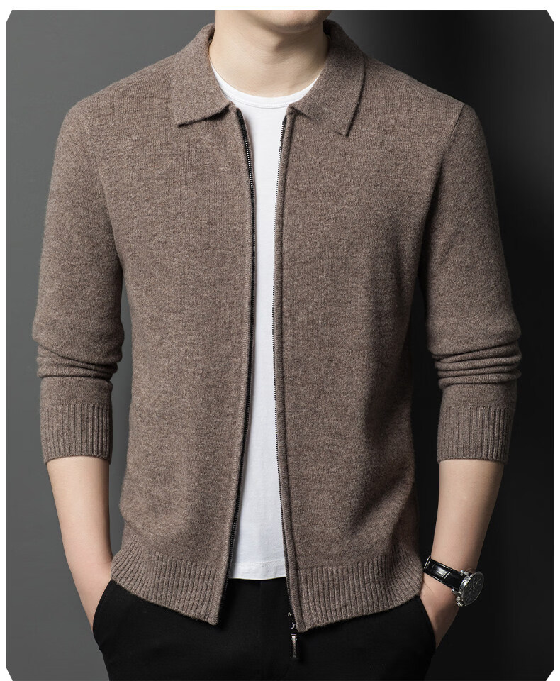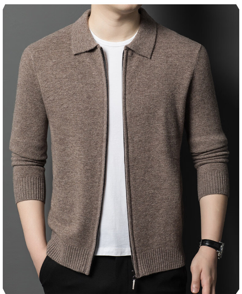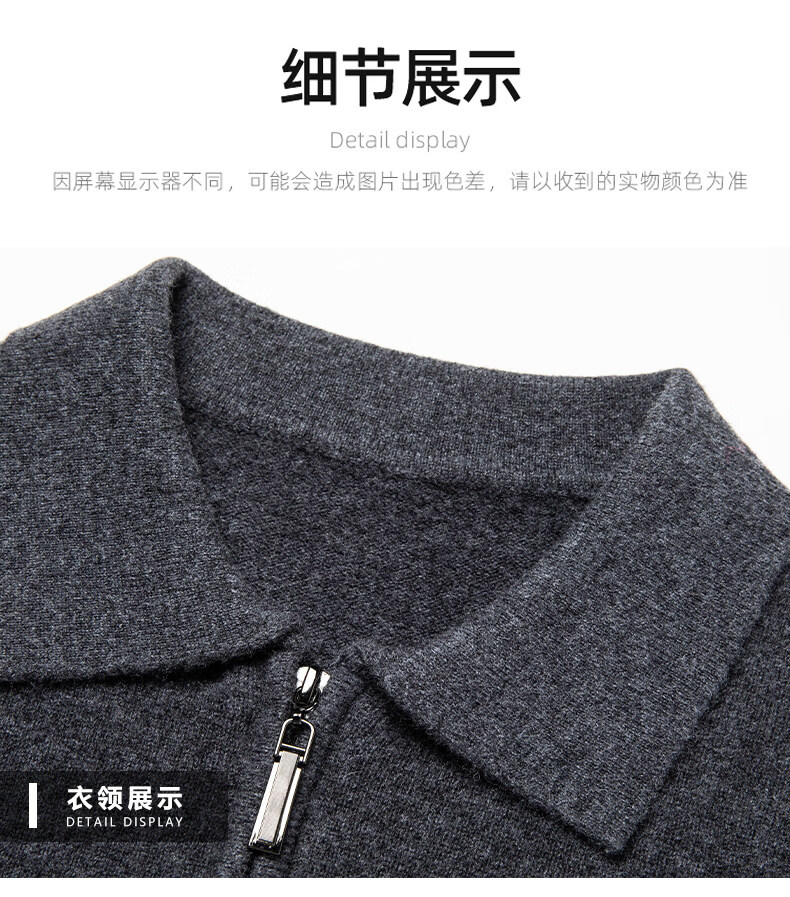 Crocodile CARTELO French crocodile pure wool sweater crocodile shirt lapel zipper cardigan men's autumn and winter solid color needle gray M recommended 90-115Jin Jin equals 0.5 kg