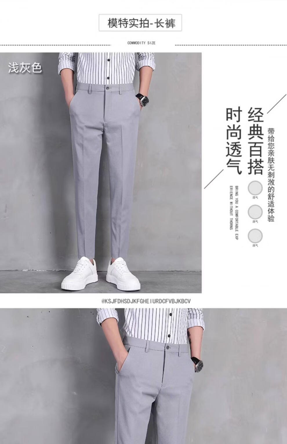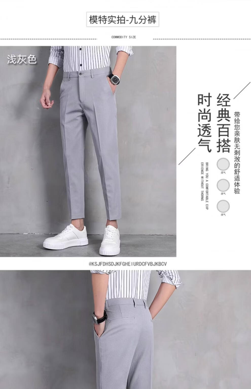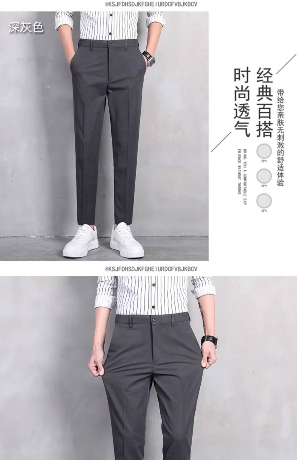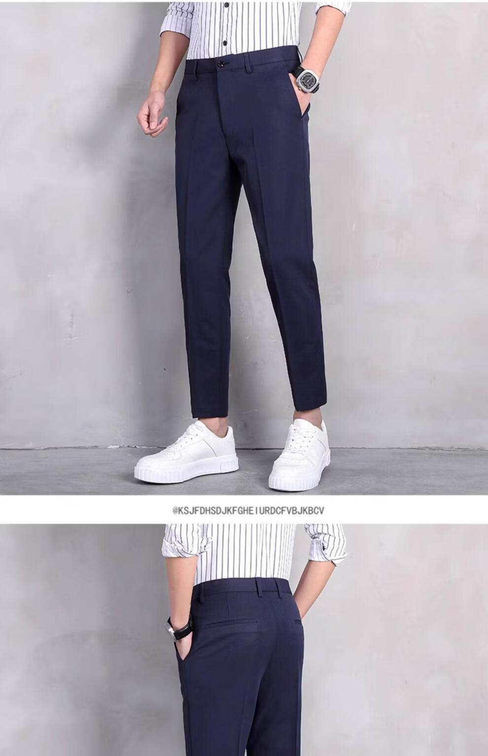Vieruodis men's brand casual pants men's ice silk thin business suit pants men's spring and summer new straight long pants nine-point pants navy blue 28