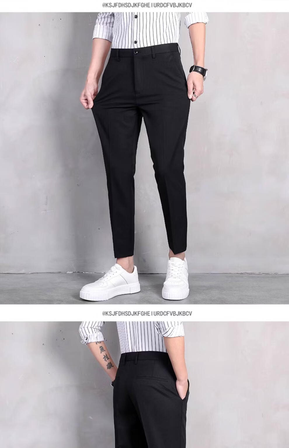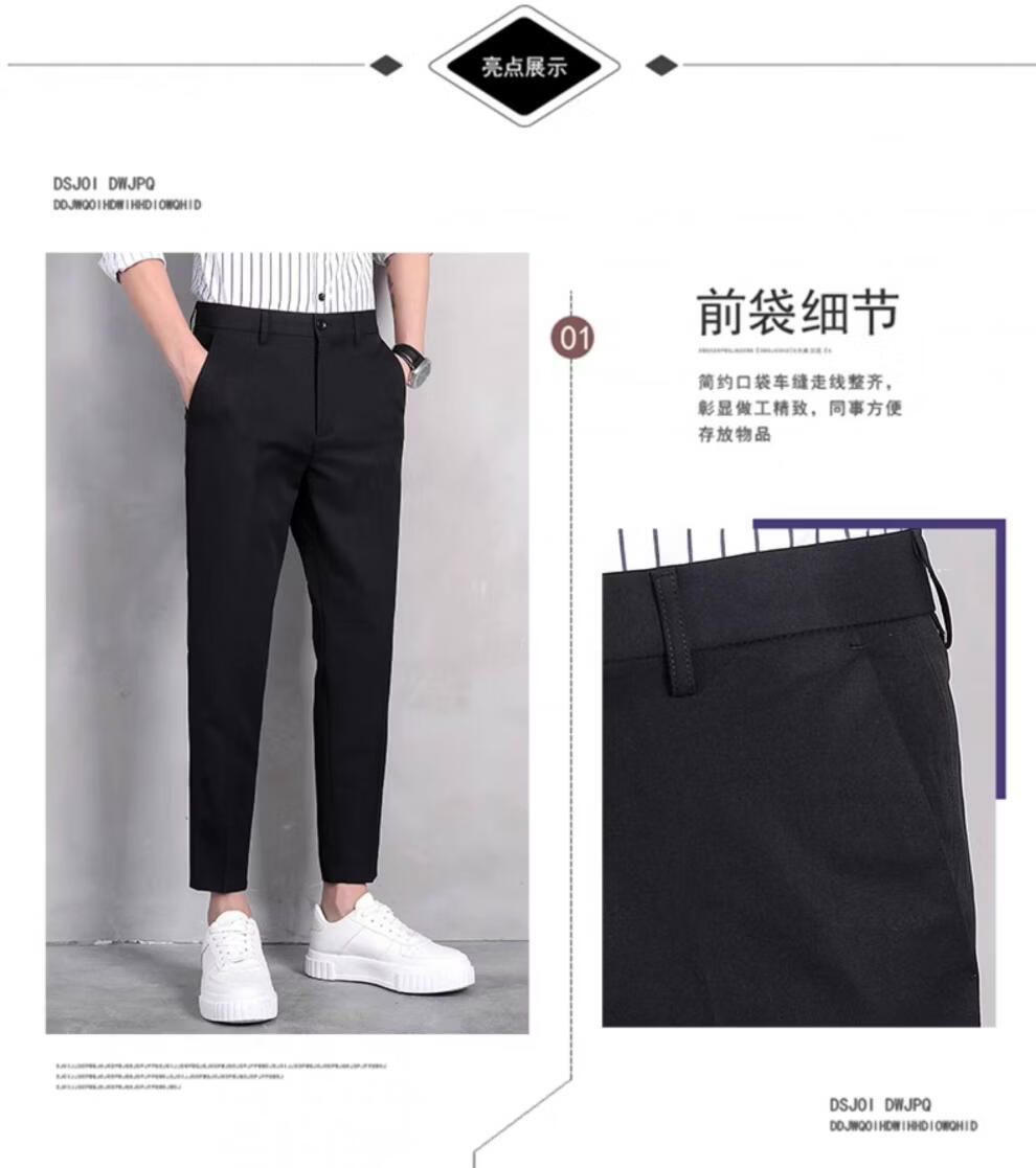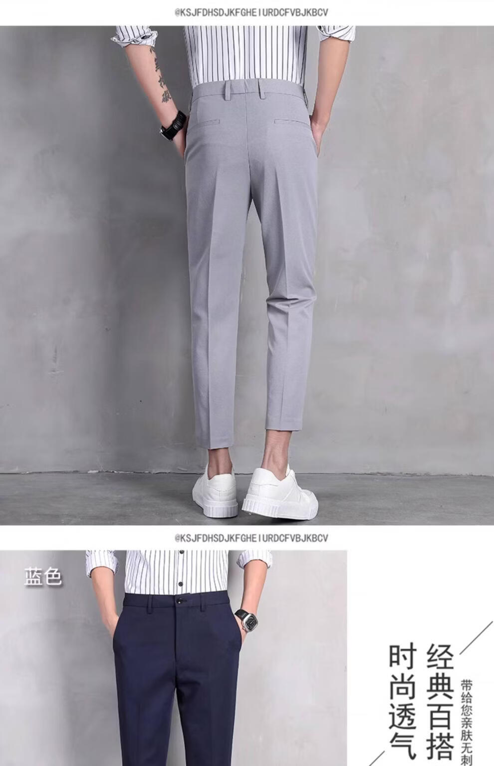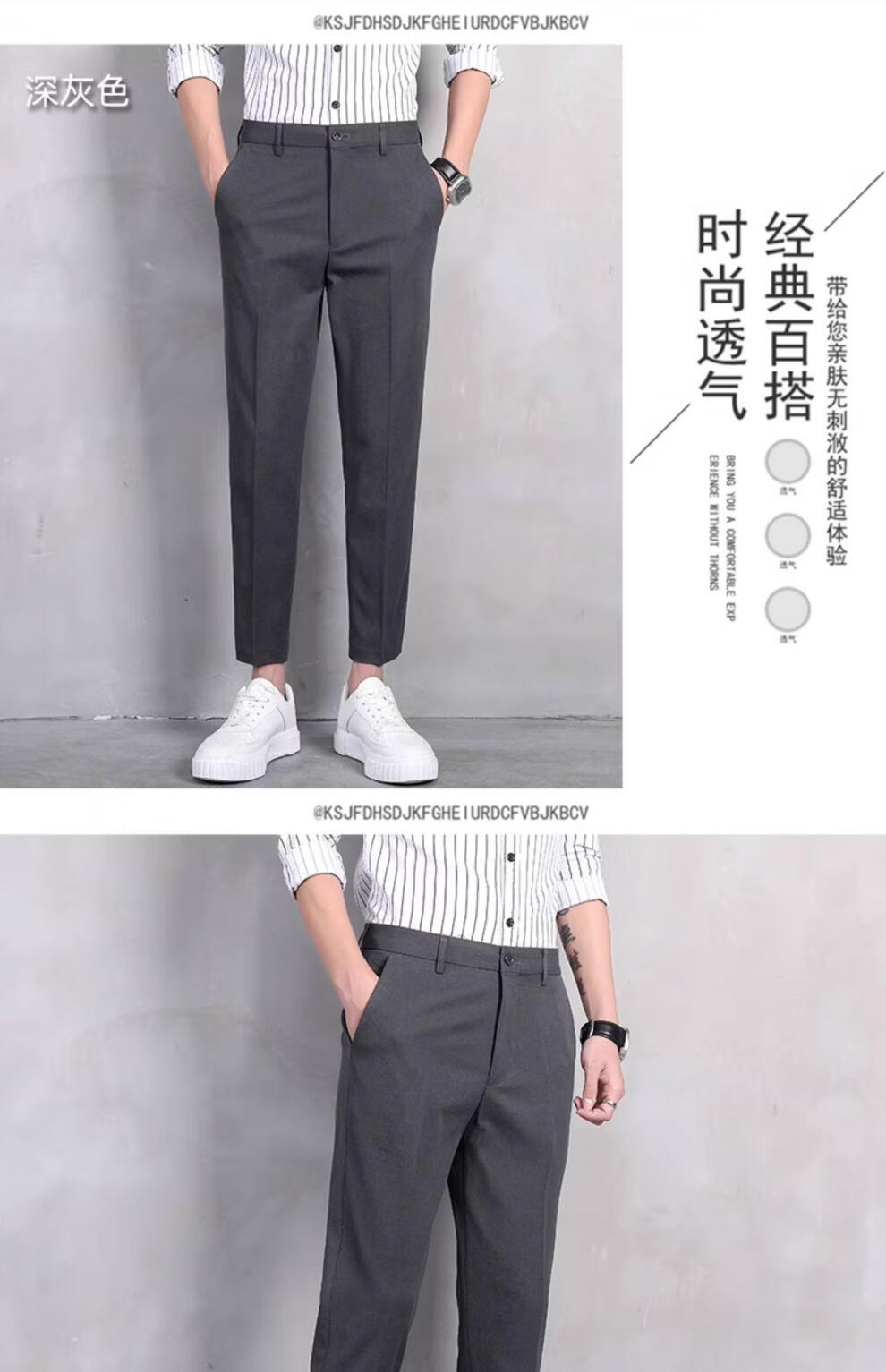 Vieruodis men's brand casual pants men's ice silk thin business suit pants men's spring and summer new straight long pants nine-point pants navy blue 28