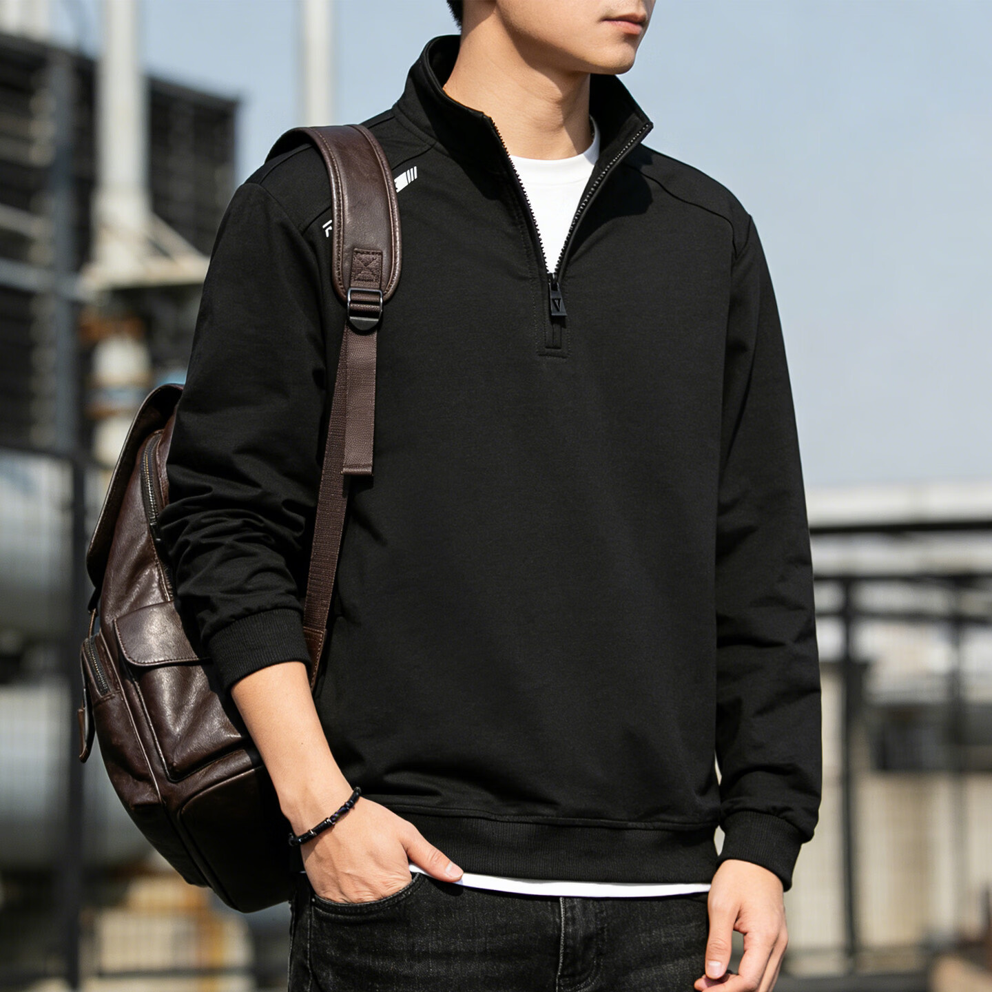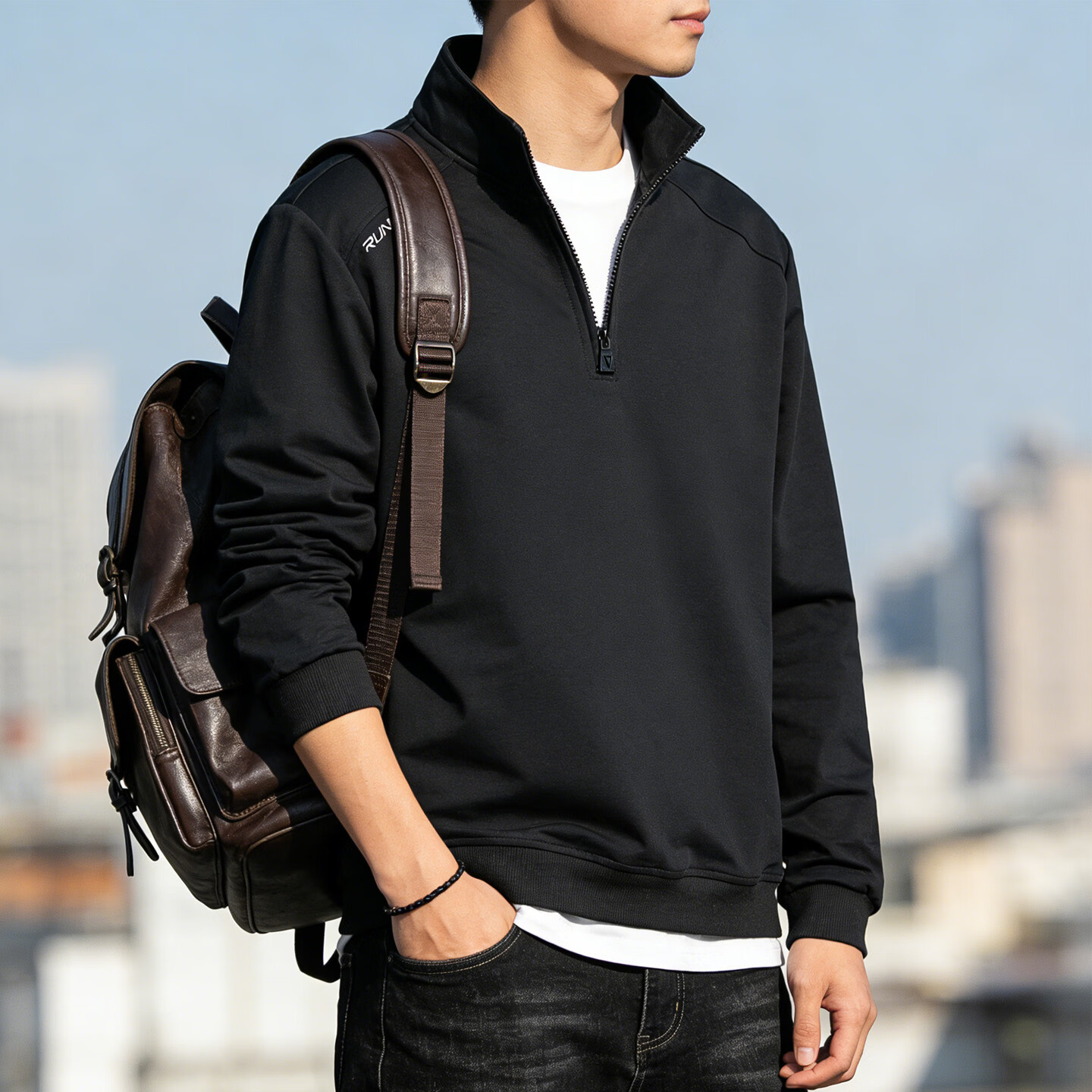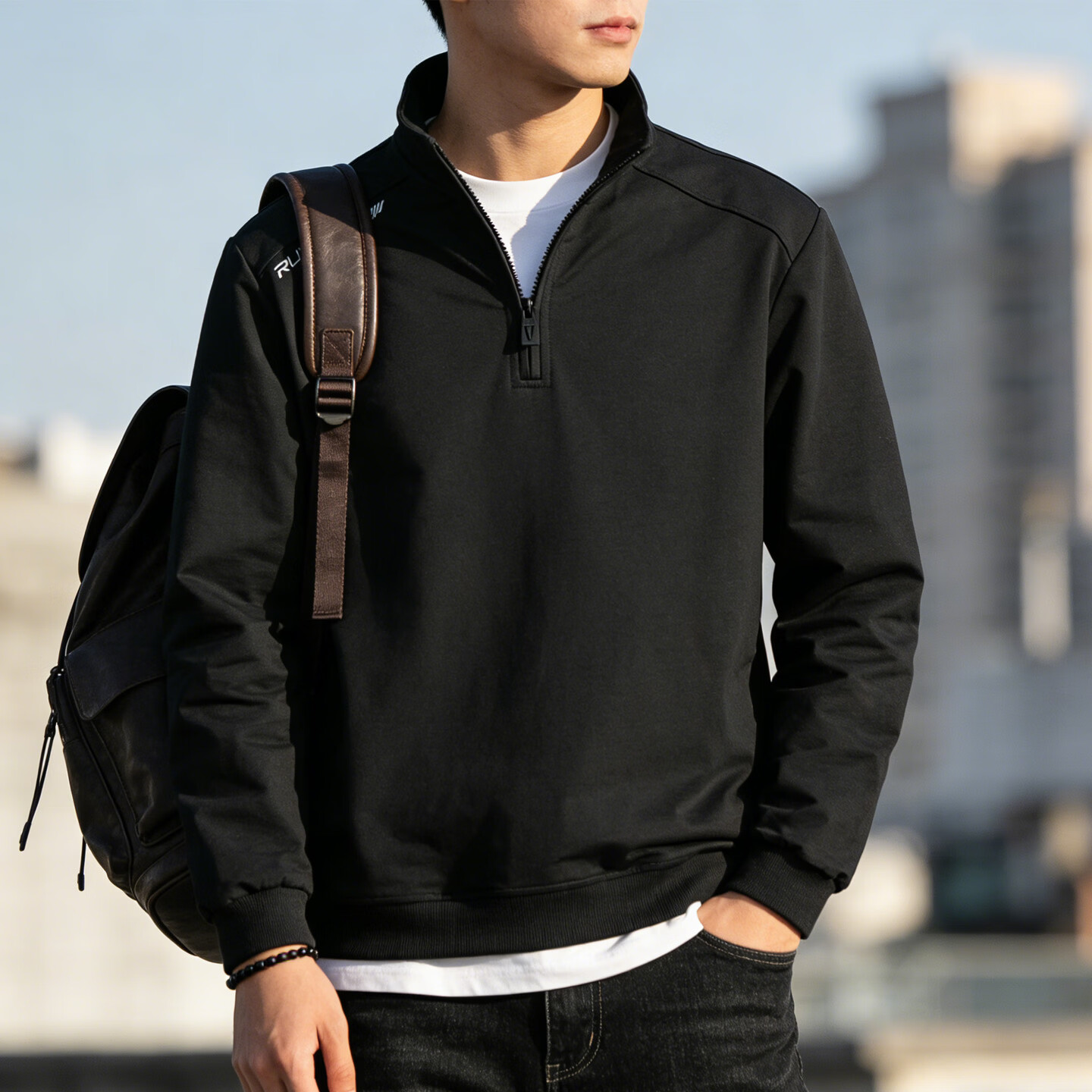 JEEP SPIRIT half zipper stand collar sweatshirt men's 2026 spring new casual loose long-sleeved top jacket men's black M 90 - 110 Jin Jin is equal to 0.5 kg