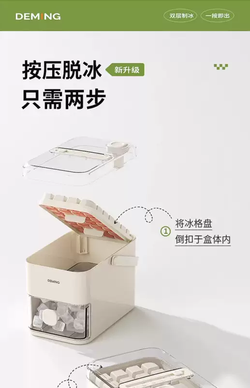 Пресс Yusenoy Пресс-форма для льда Бытовой полностью автоматический холодильник Большая емкость для хранения льда Пищевой ящик для льда с крышкой Специальный артефакт Выдвижной ящик с 56 дверцами Поднос для льда (бежевый)