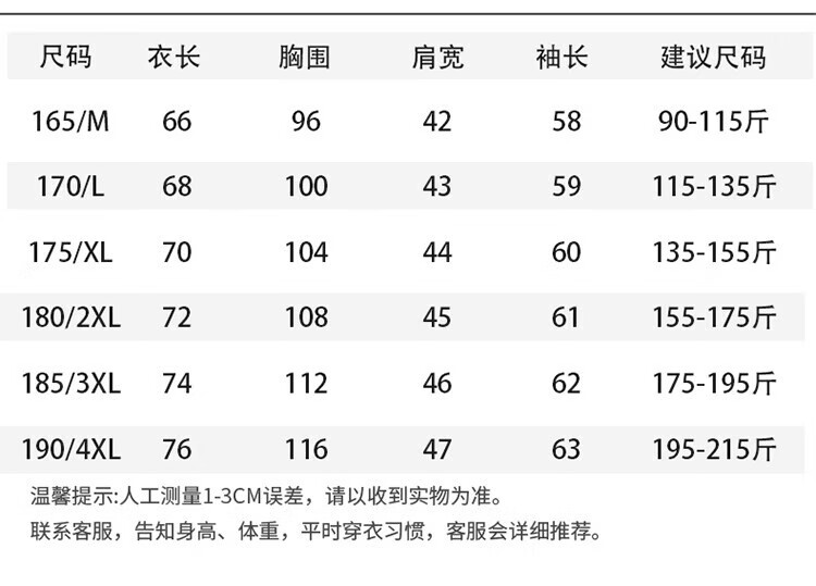 China (cm) 165 / 88-90 170 / 96-98 175 / 108-110 180 / 118-122 185 / 126-130