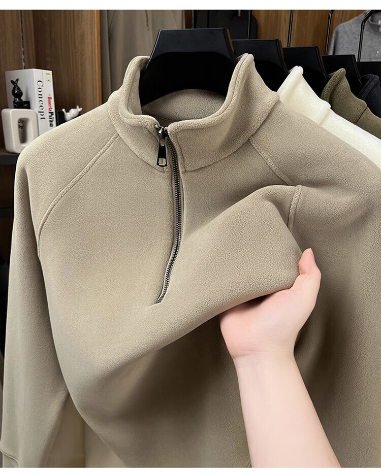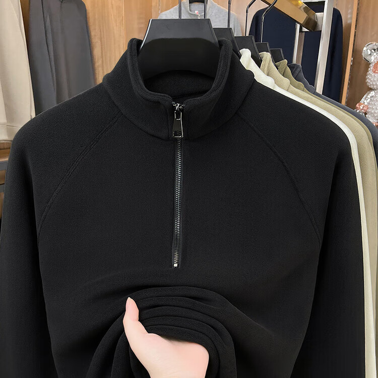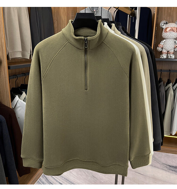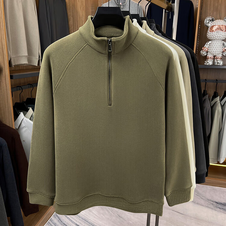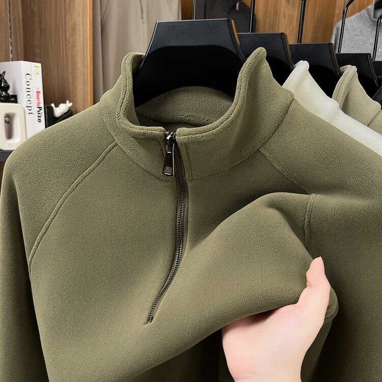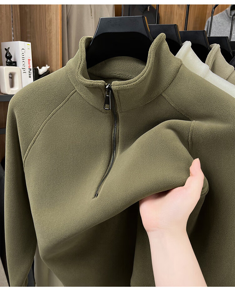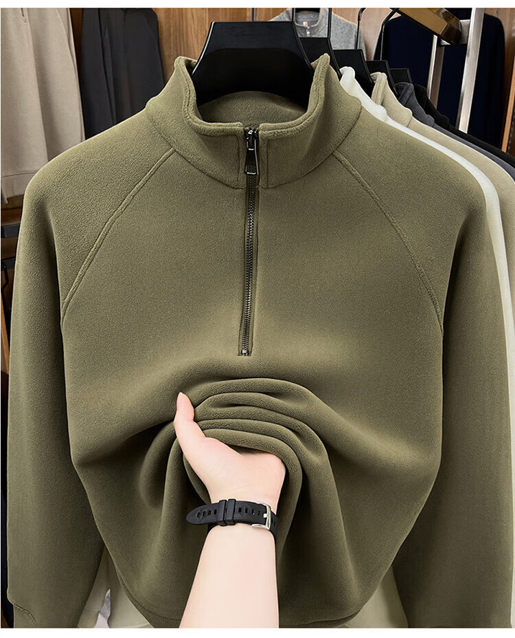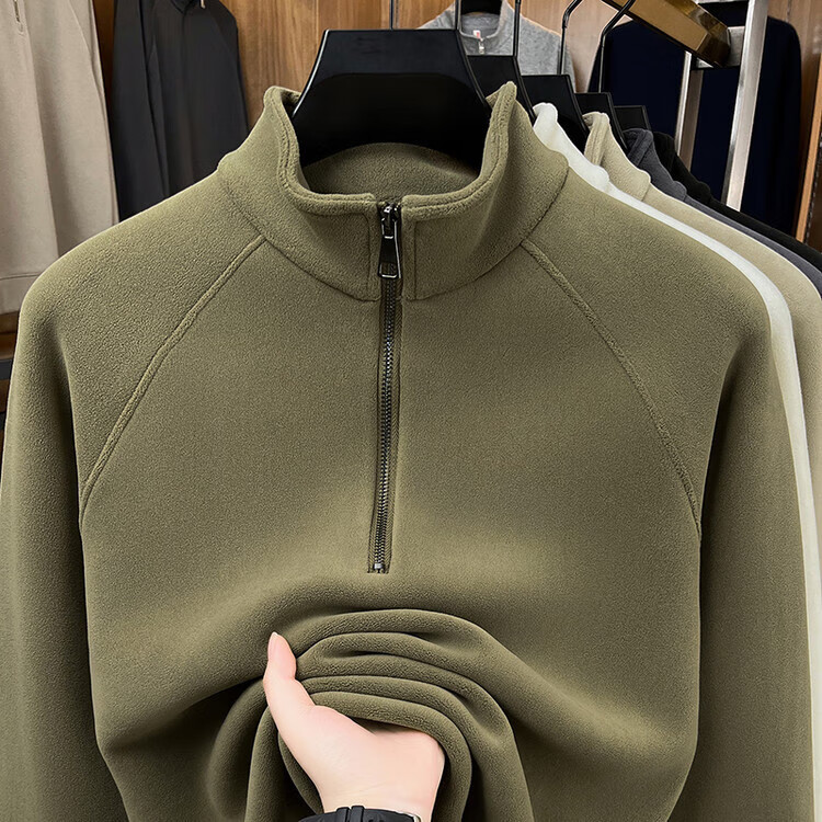 LILANZ official 2026 polar fleece simple and versatile half-zip thickened sweatshirt men's stand collar new spring long sleeve flagship official green 4XL