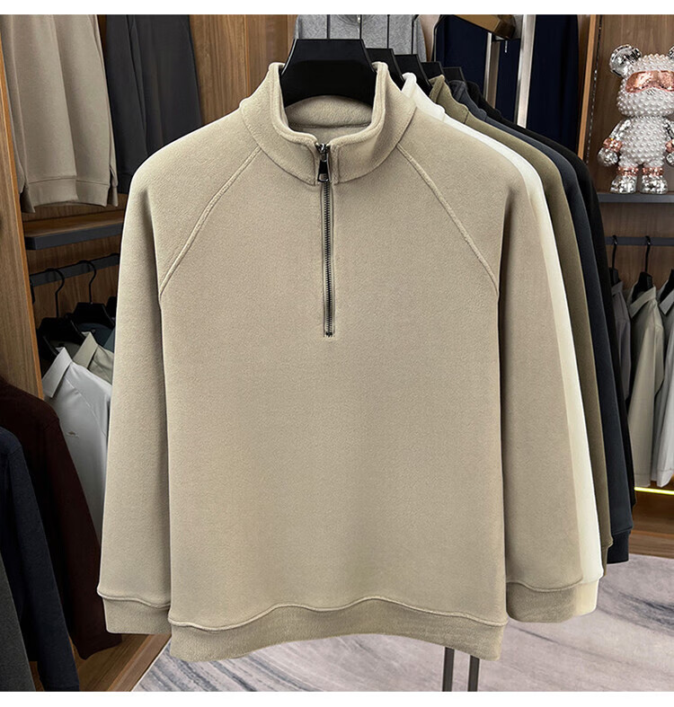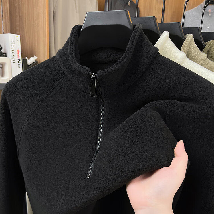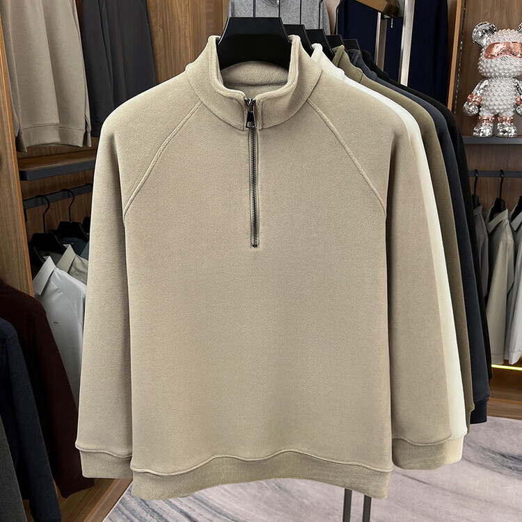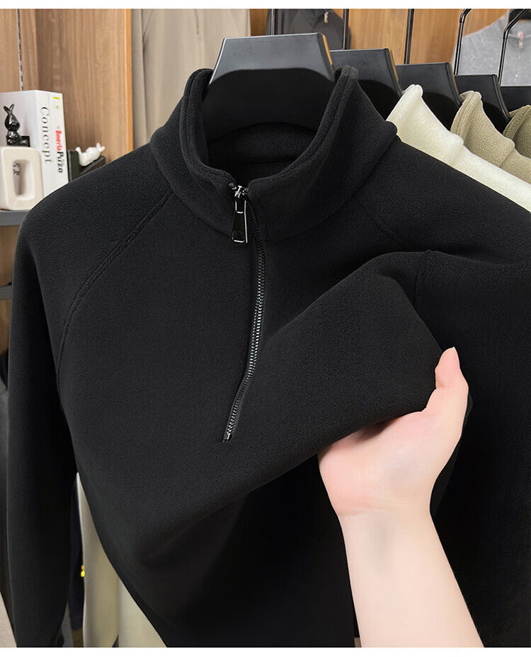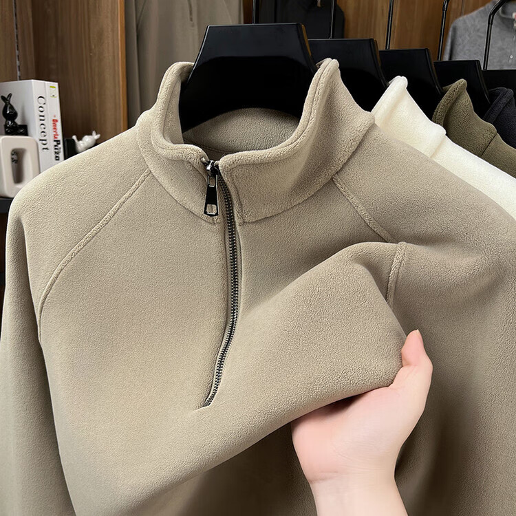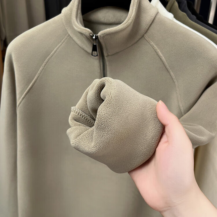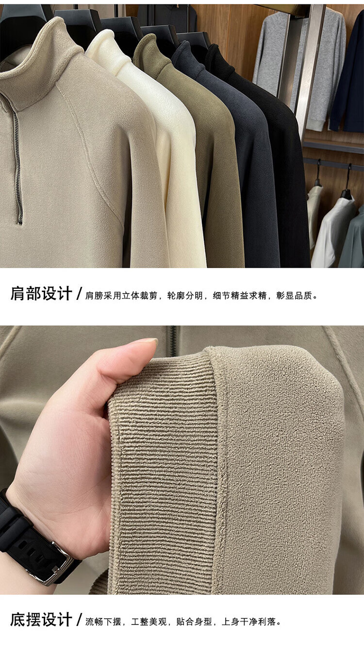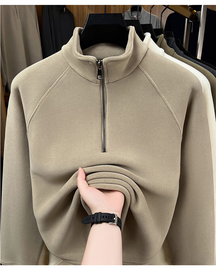 LILANZ official 2026 polar fleece simple and versatile half-zip thickened sweatshirt men's stand collar new spring long sleeve flagship official green 4XL