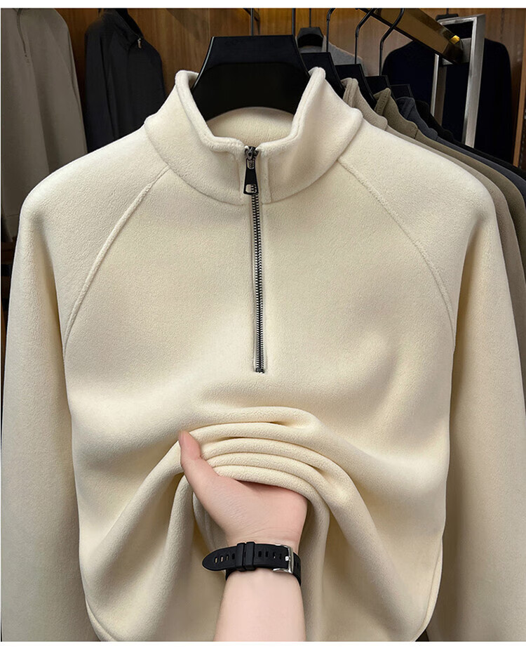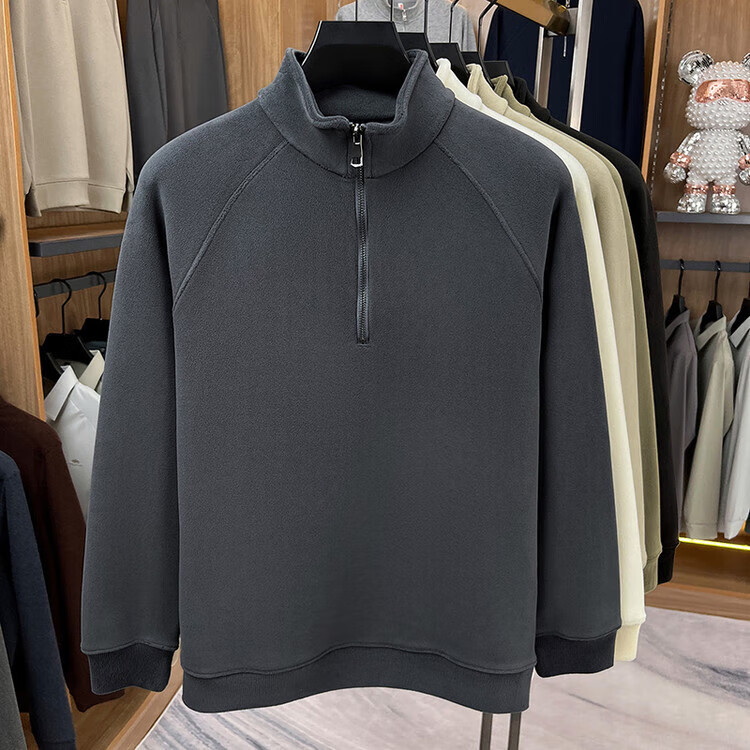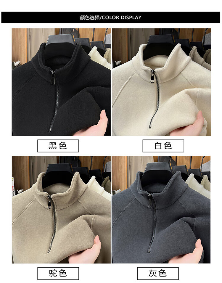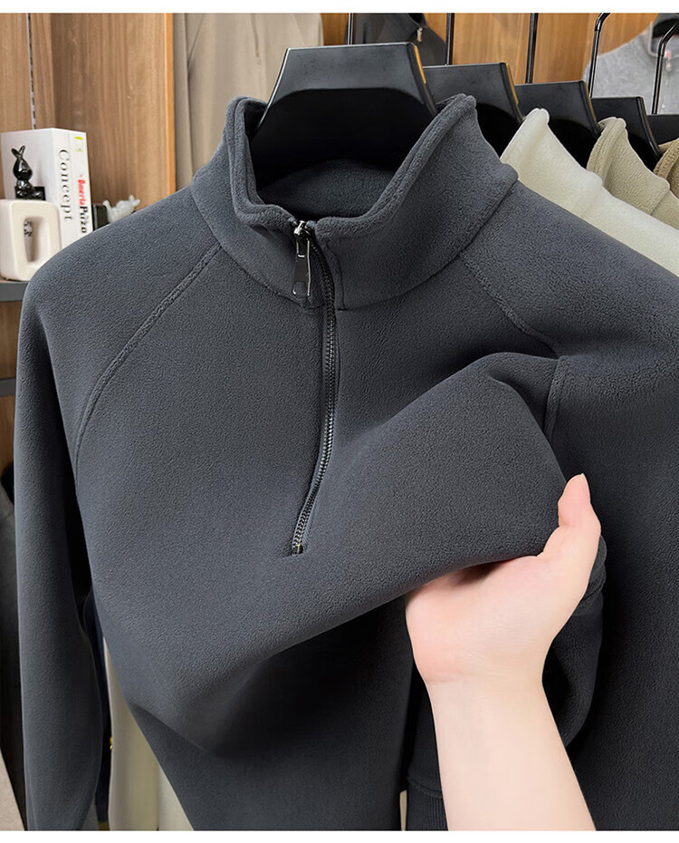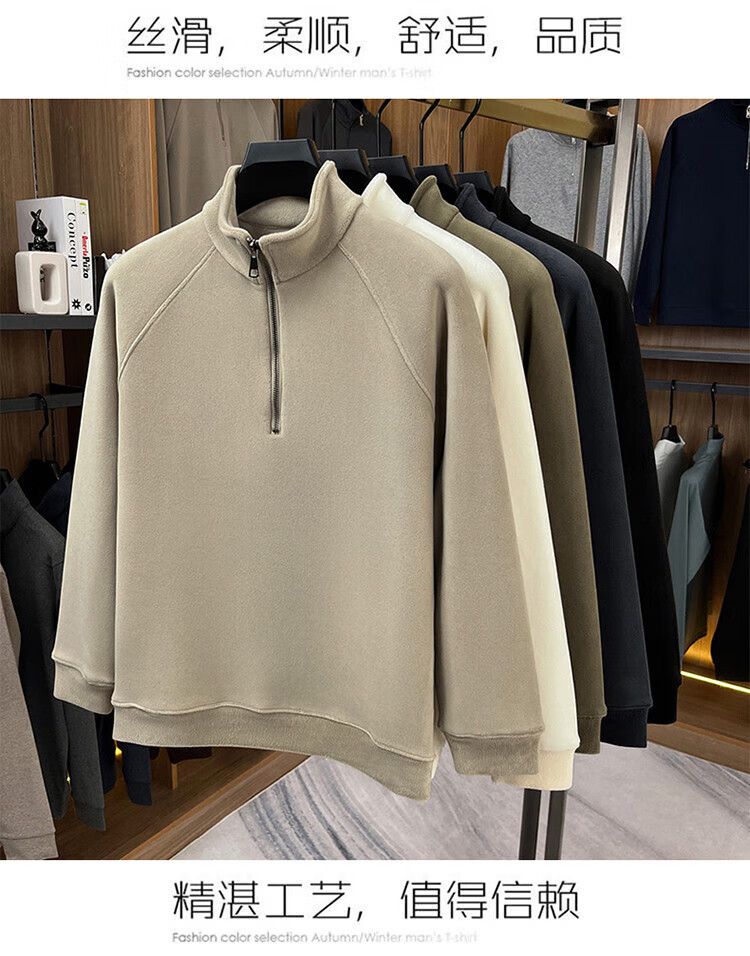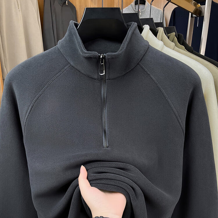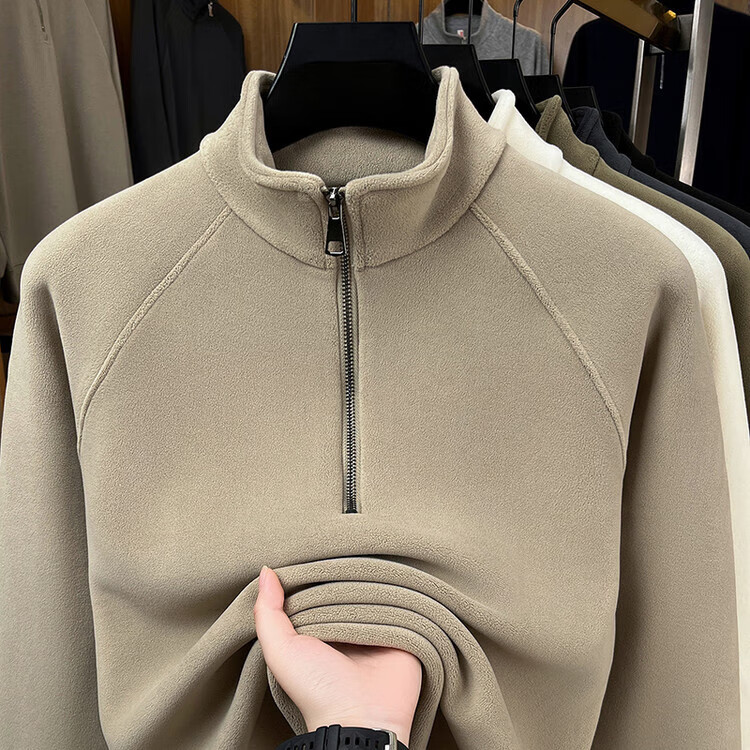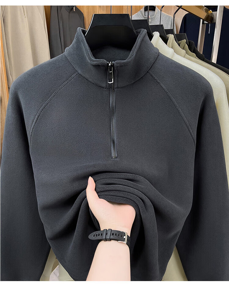 LILANZ official 2026 polar fleece simple and versatile half-zip thickened sweatshirt men's stand collar new spring long sleeve flagship official green 4XL
