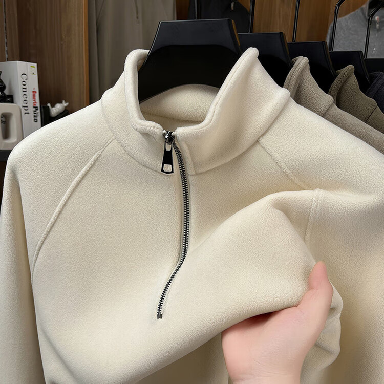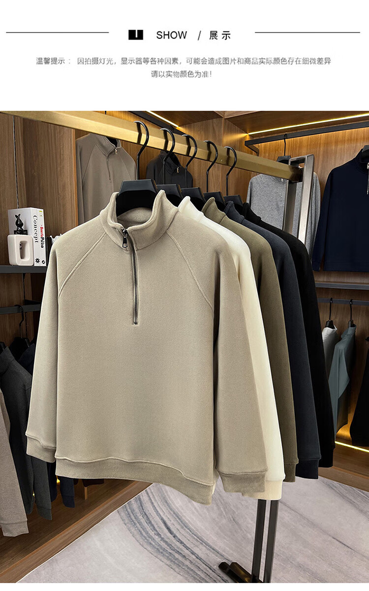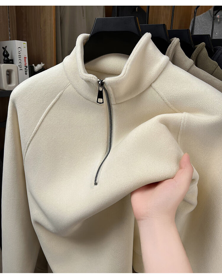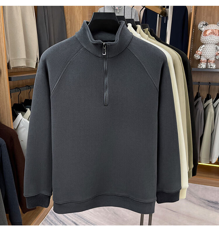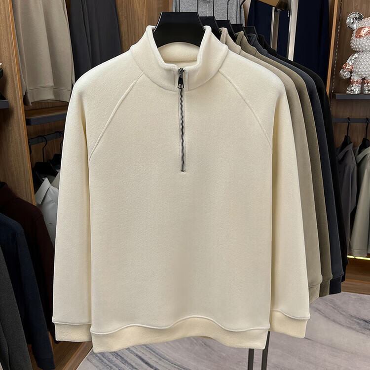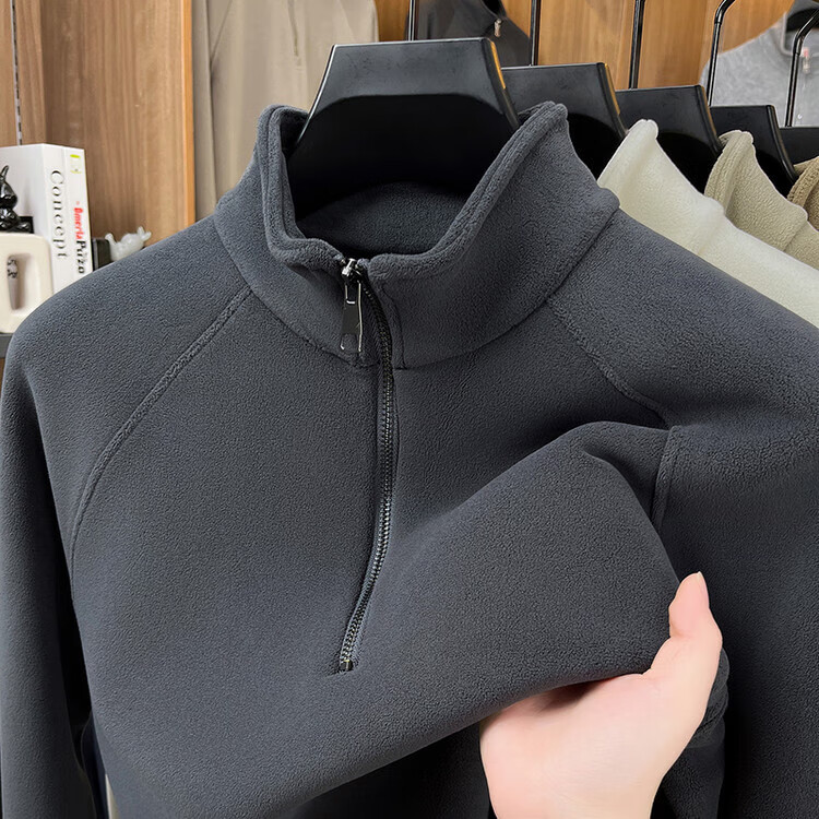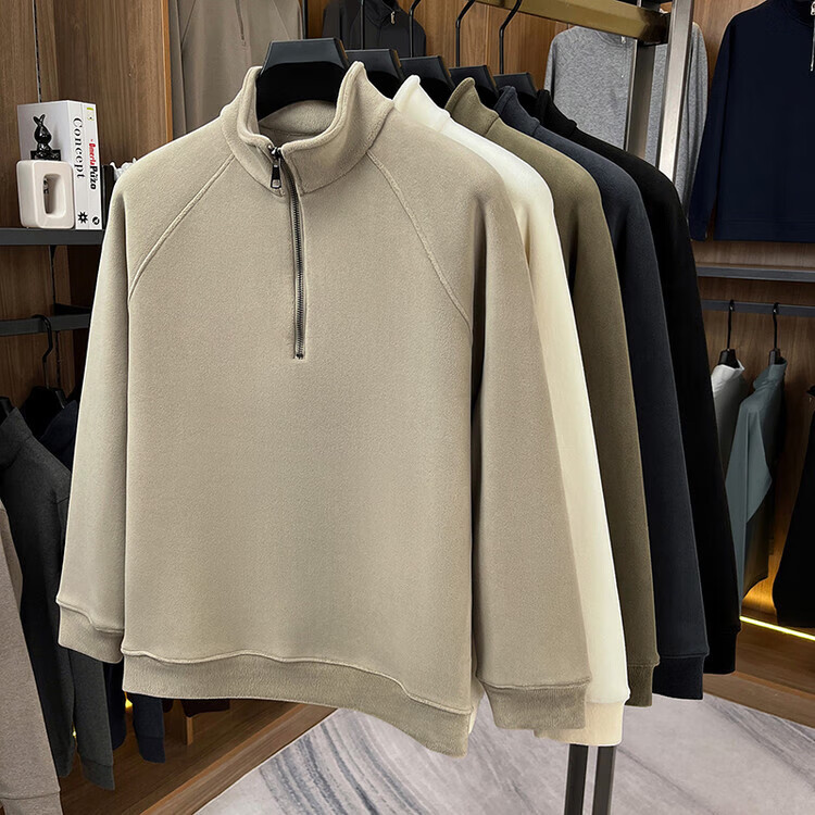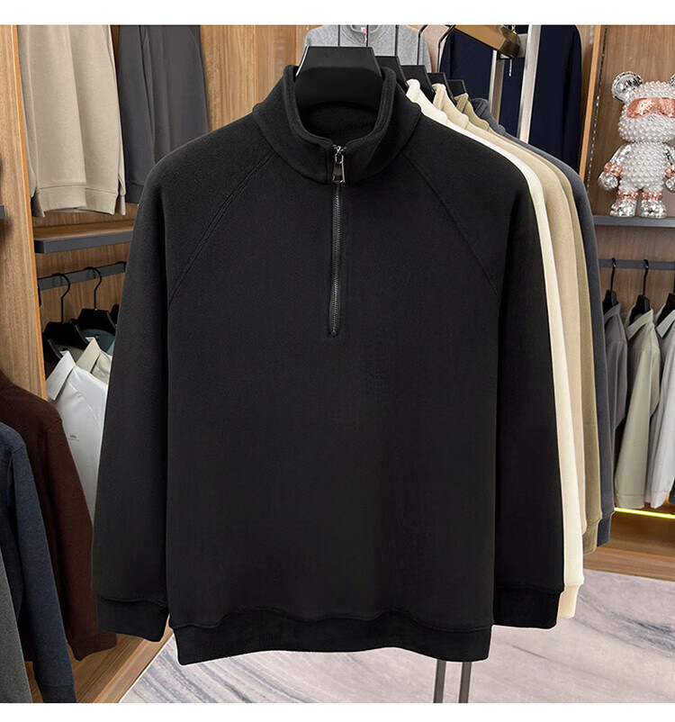 LILANZ official 2026 polar fleece simple and versatile half-zip thickened sweatshirt men's stand collar new spring long sleeve flagship official green 4XL