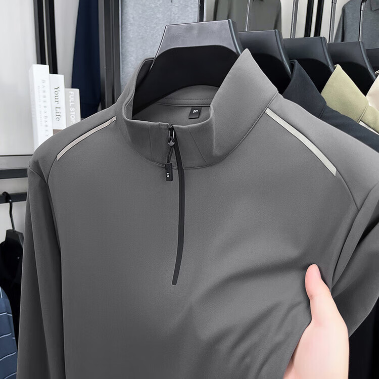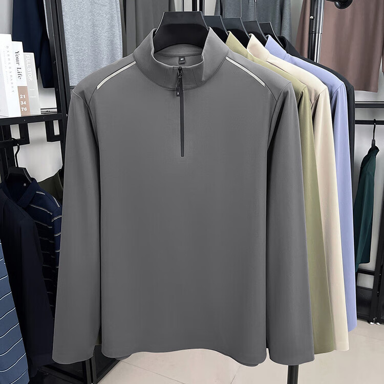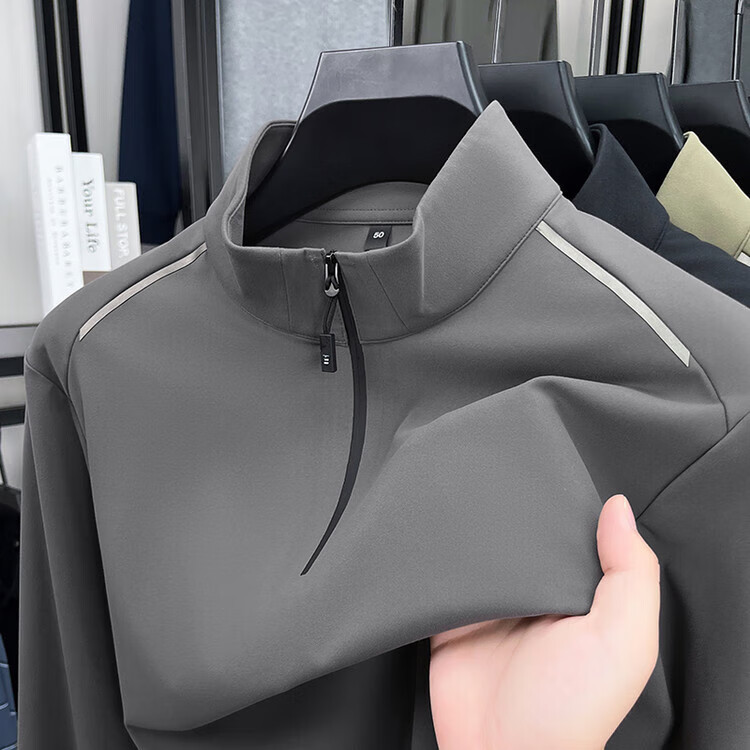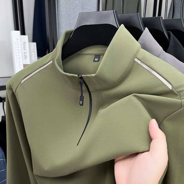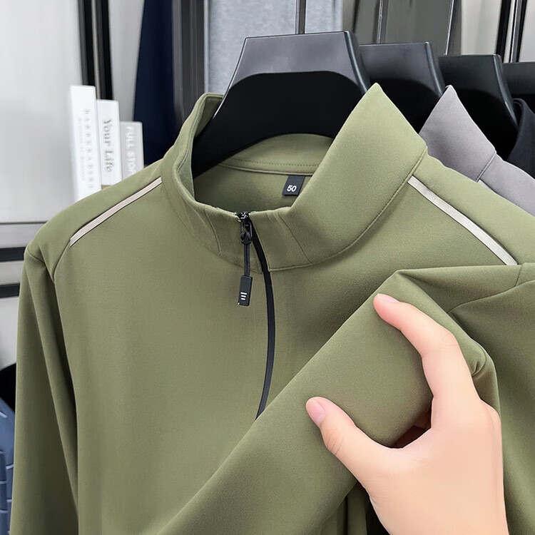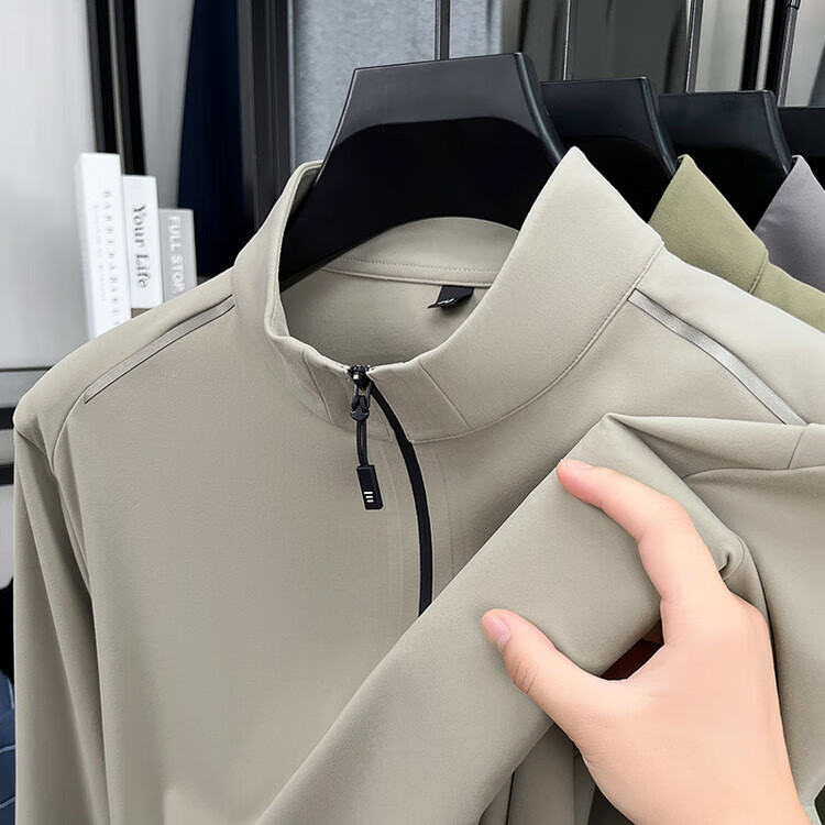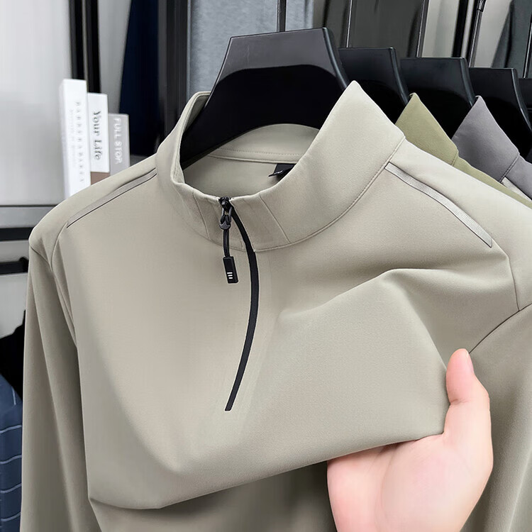 LILANZ official new light luxury high-end half-zip sweatshirt men's stand collar spring and autumn 2026 new solid color fashion flagship official khaki XL