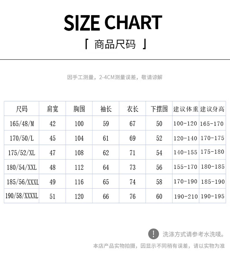 China (cm) 160-165/84-86 165-170 / 88-90 167-172 / 92-96 168-173 / 98-102 170-176 / 106-110