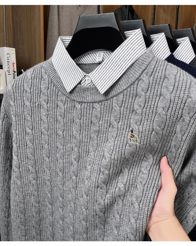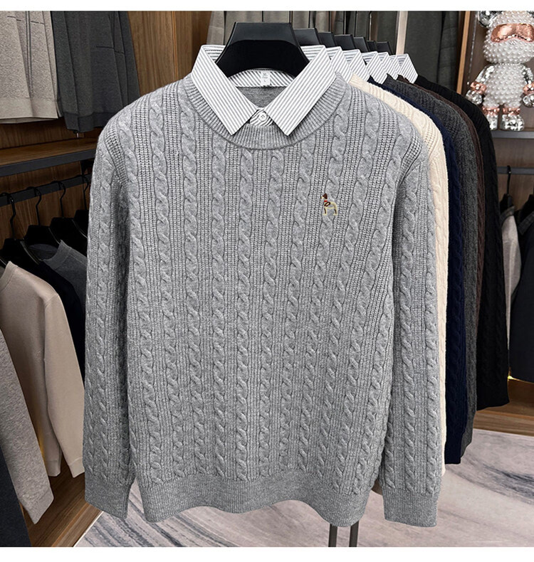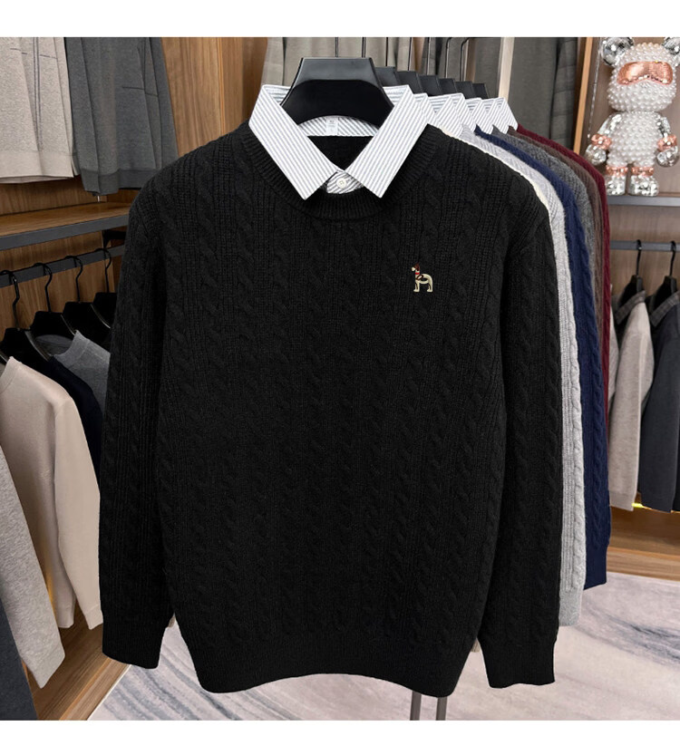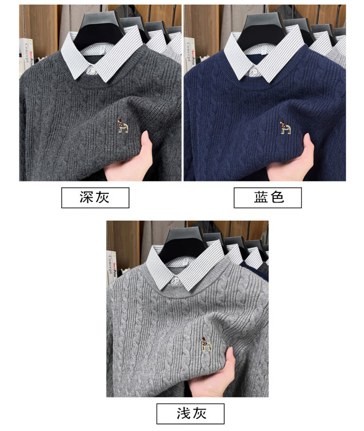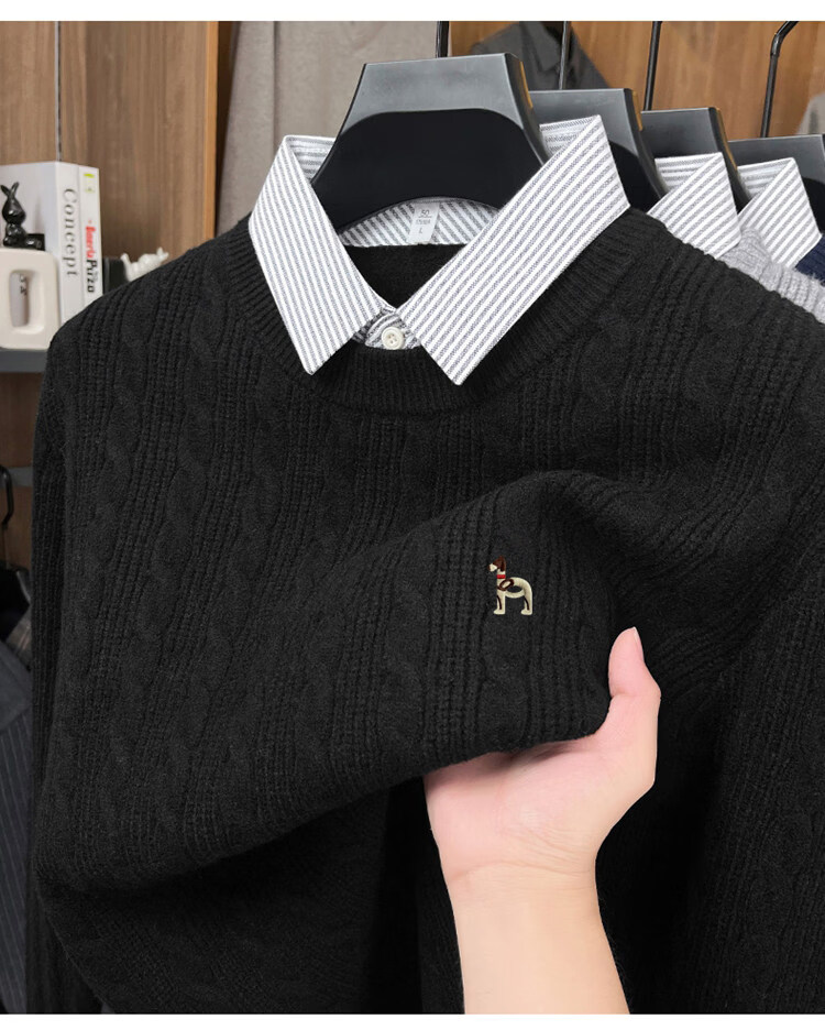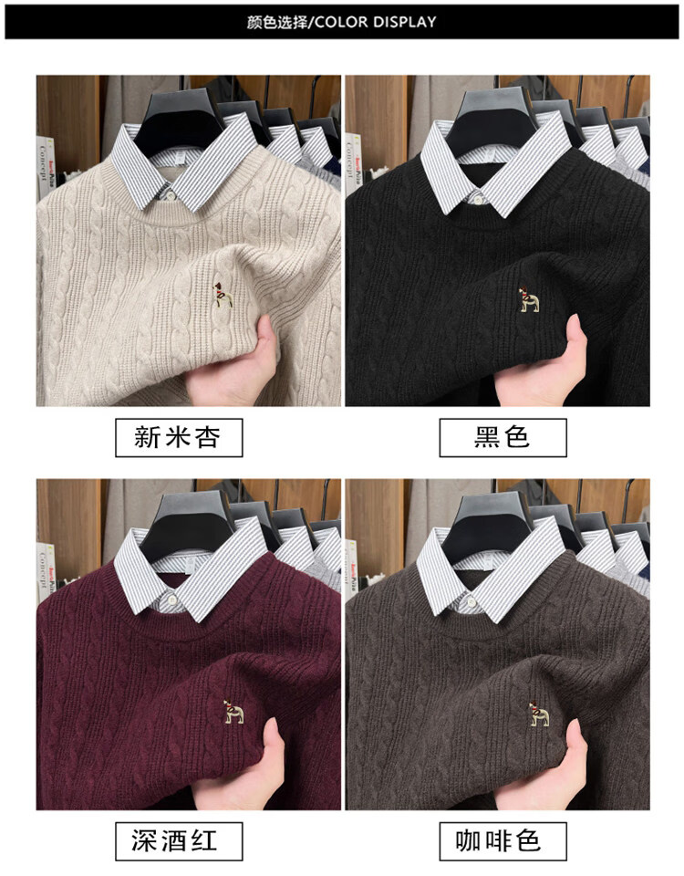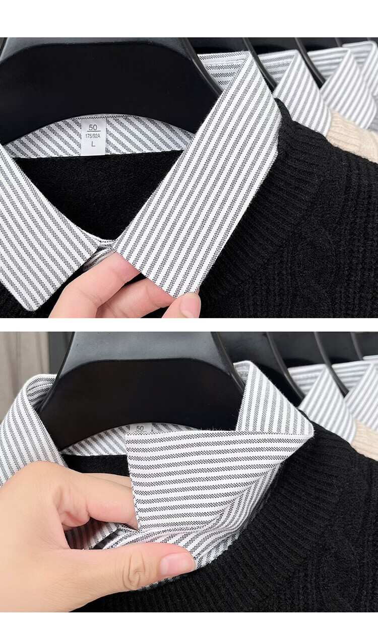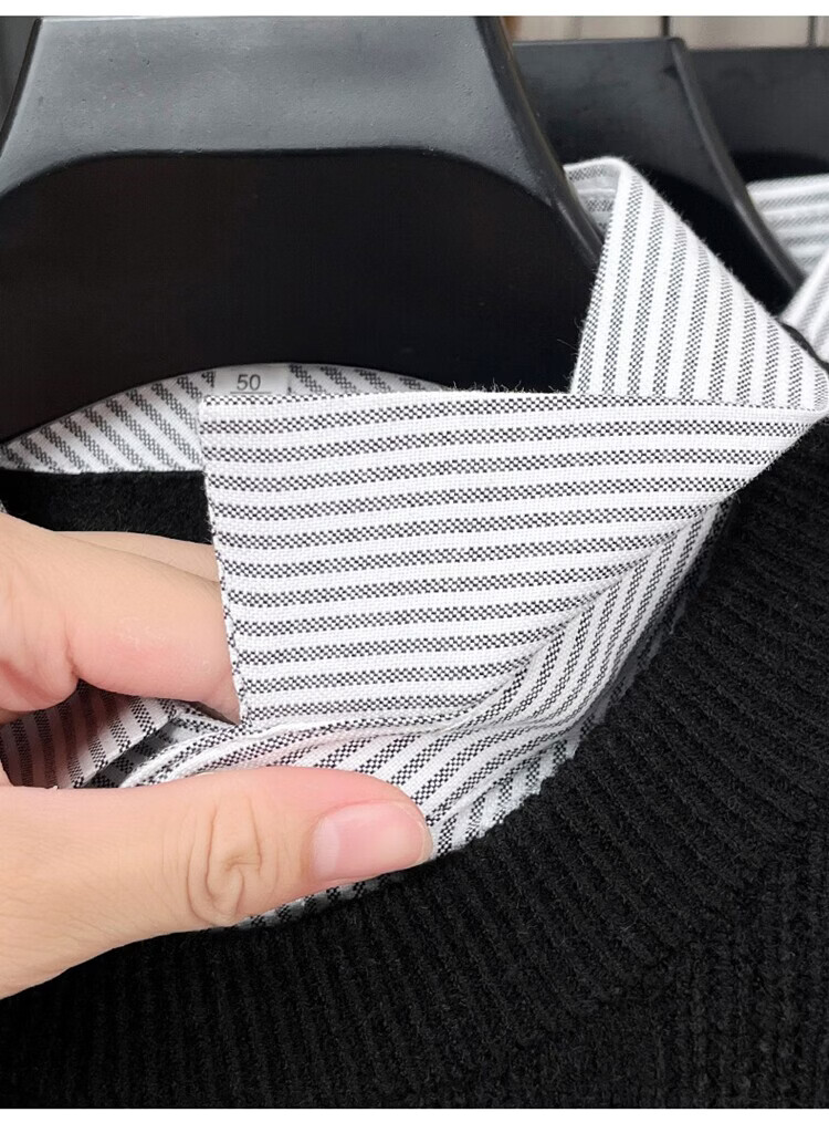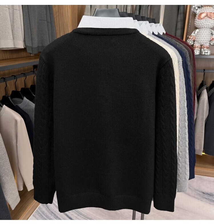 Haggis new casual cardigan men's fashion pullover sweater fake two-piece top black \xe8\ 2XL 185 size suitable for weight 175-195Jin Jin equals 0.5 kg \xe8\