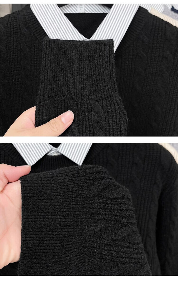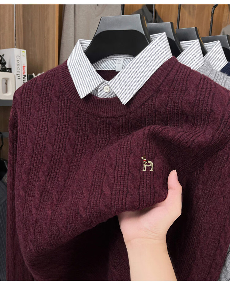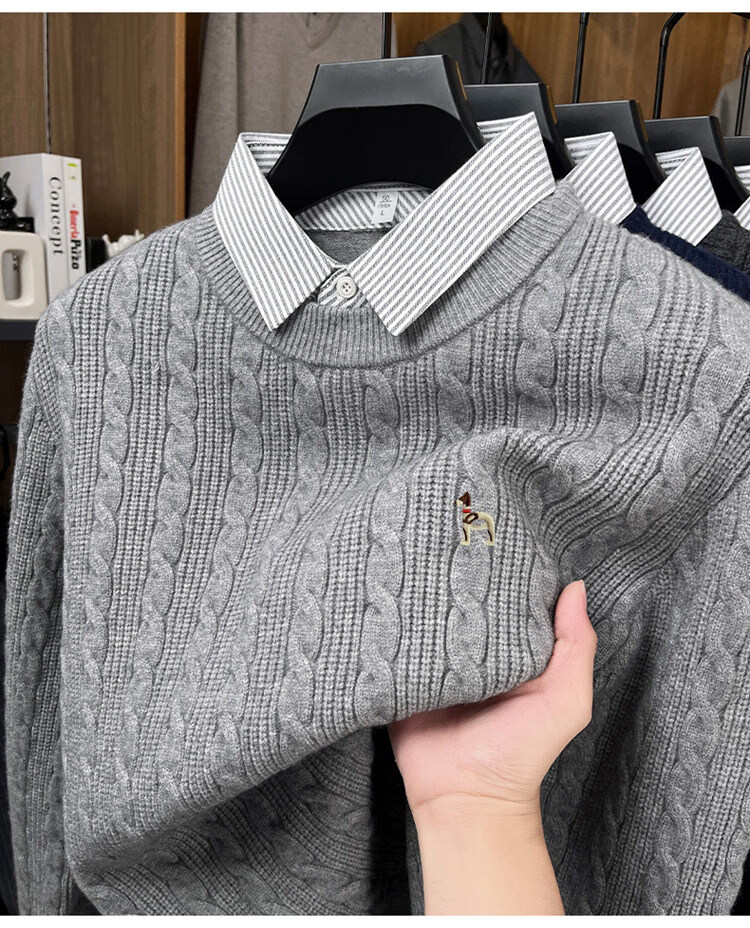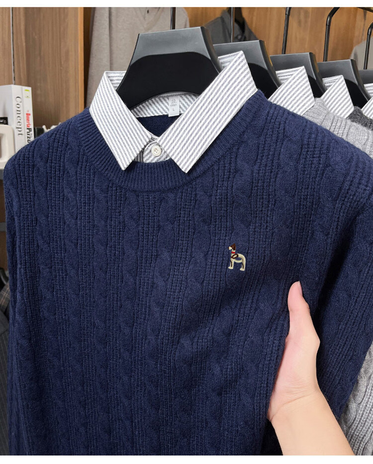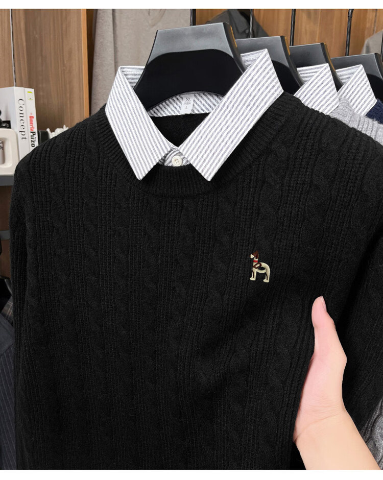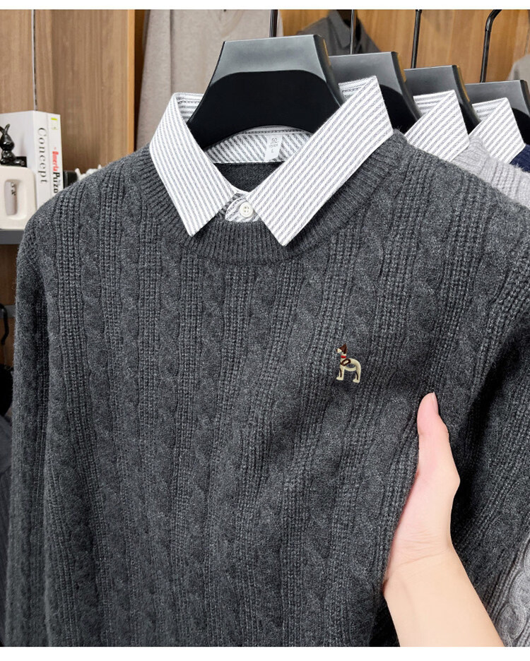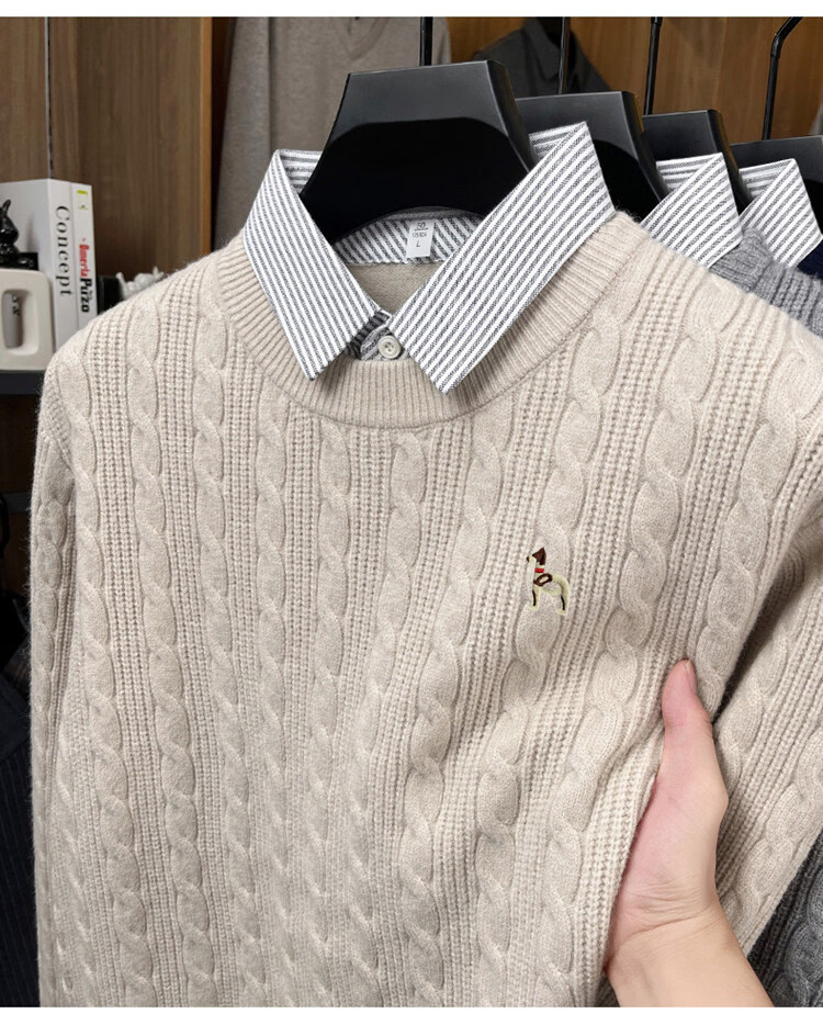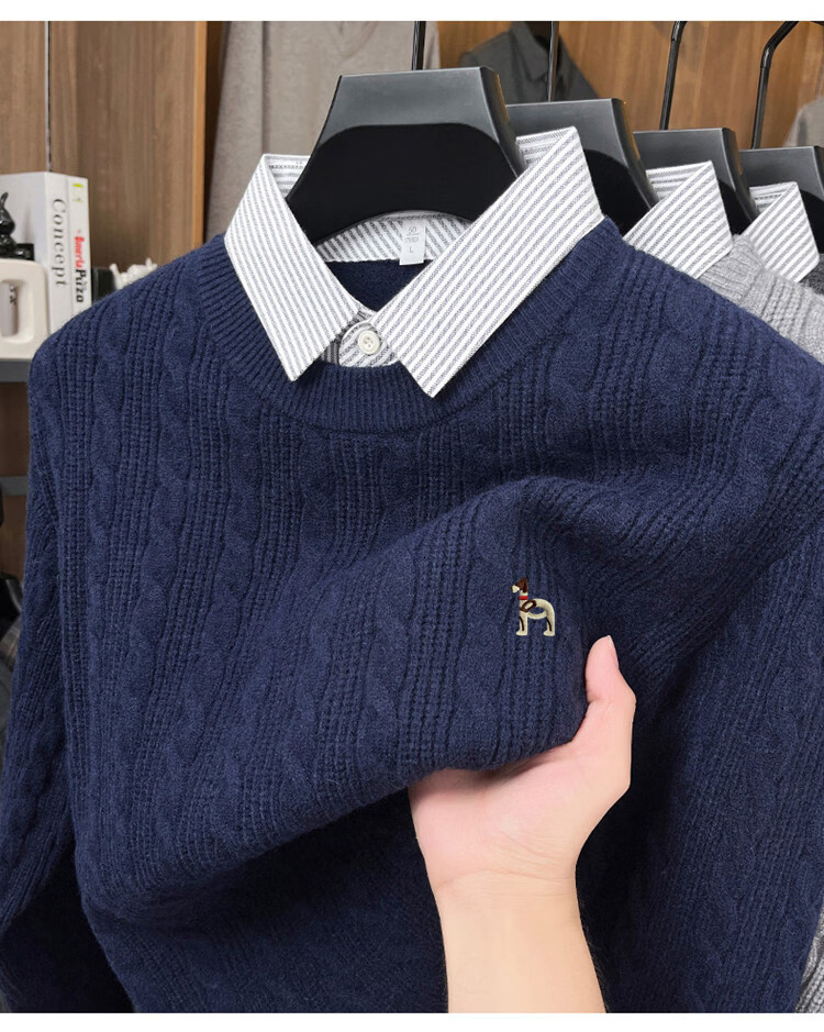 Haggis new casual cardigan men's fashion pullover sweater fake two-piece top black \xe8\ 2XL 185 size suitable for weight 175-195Jin Jin equals 0.5 kg \xe8\