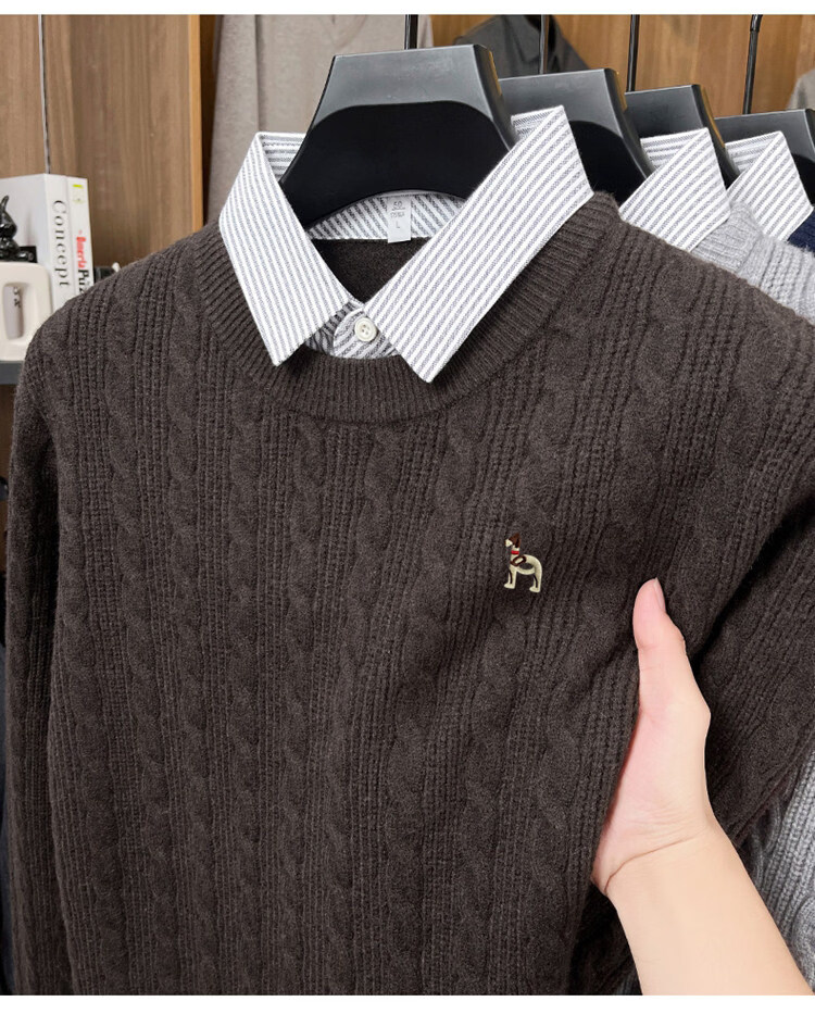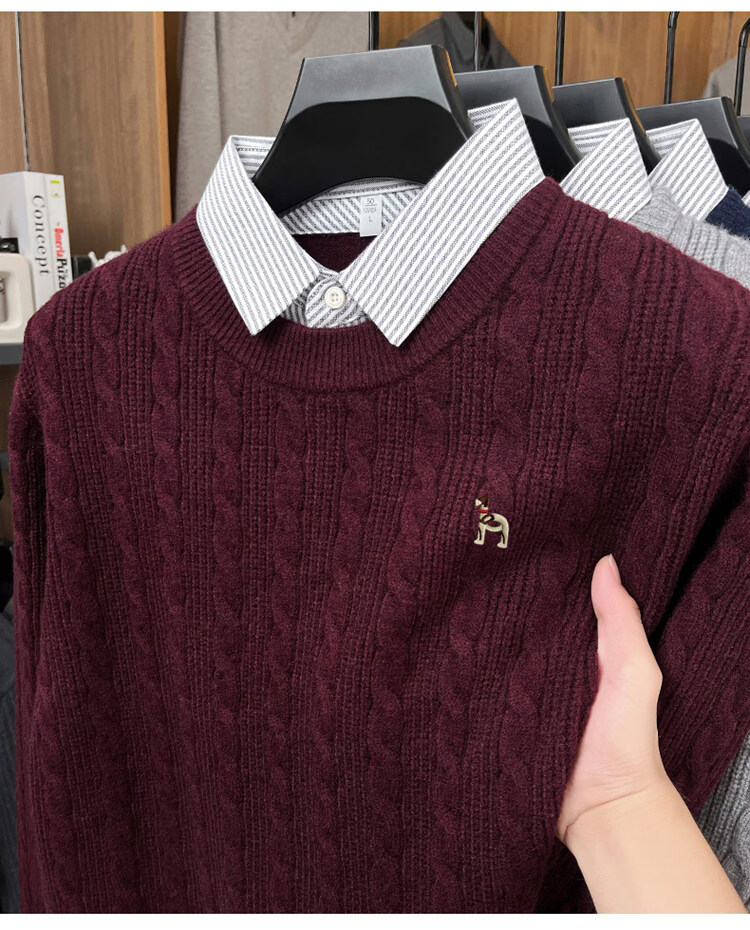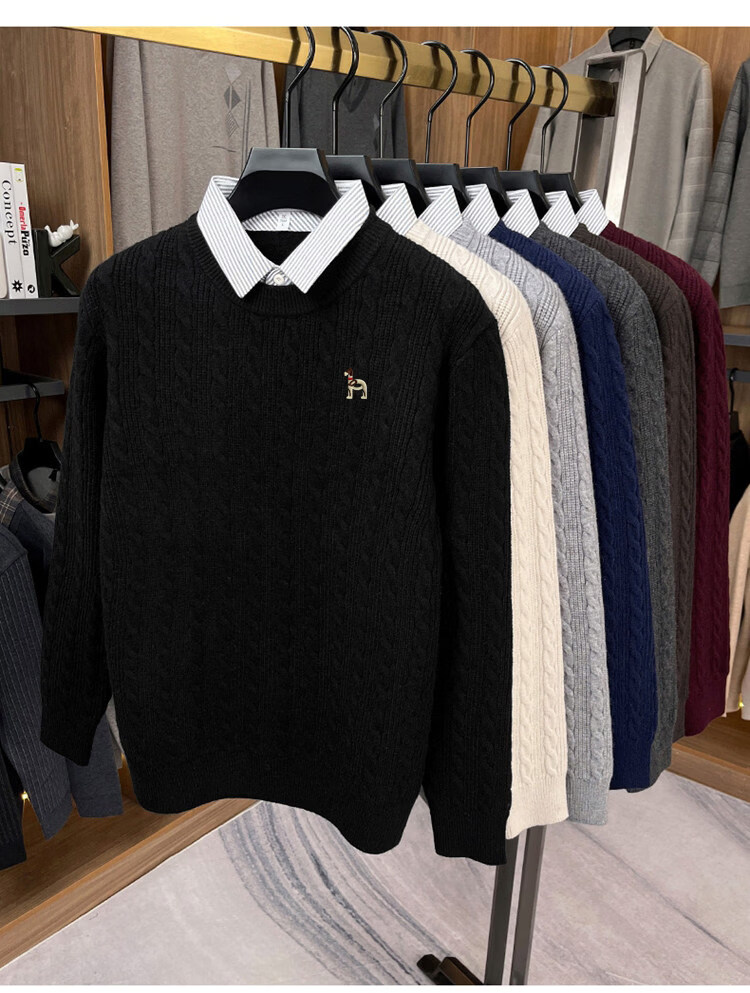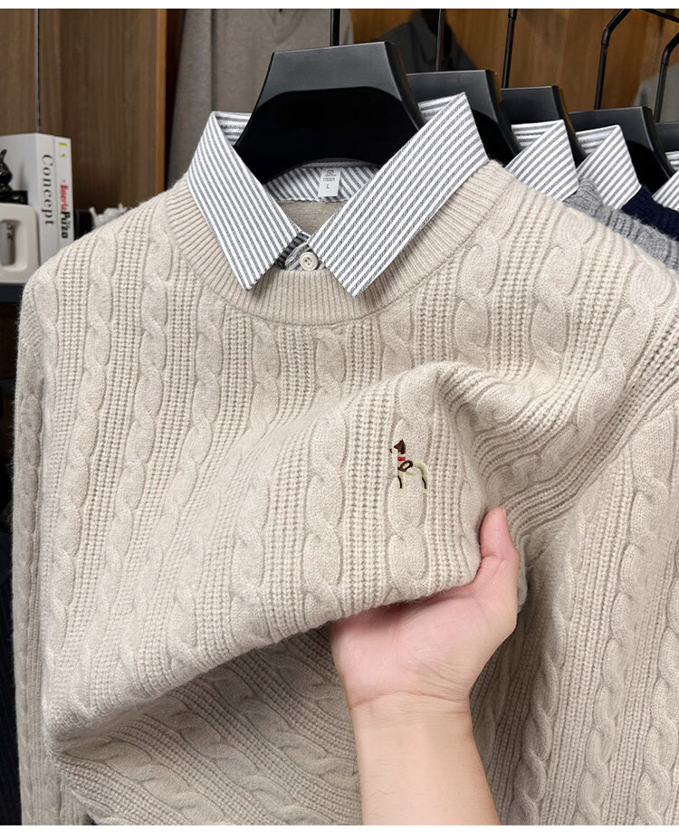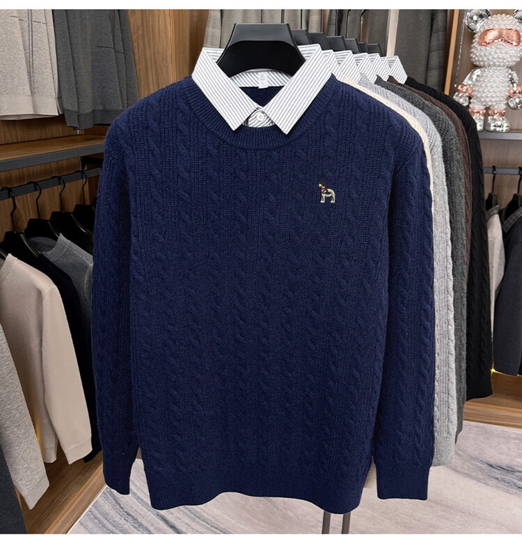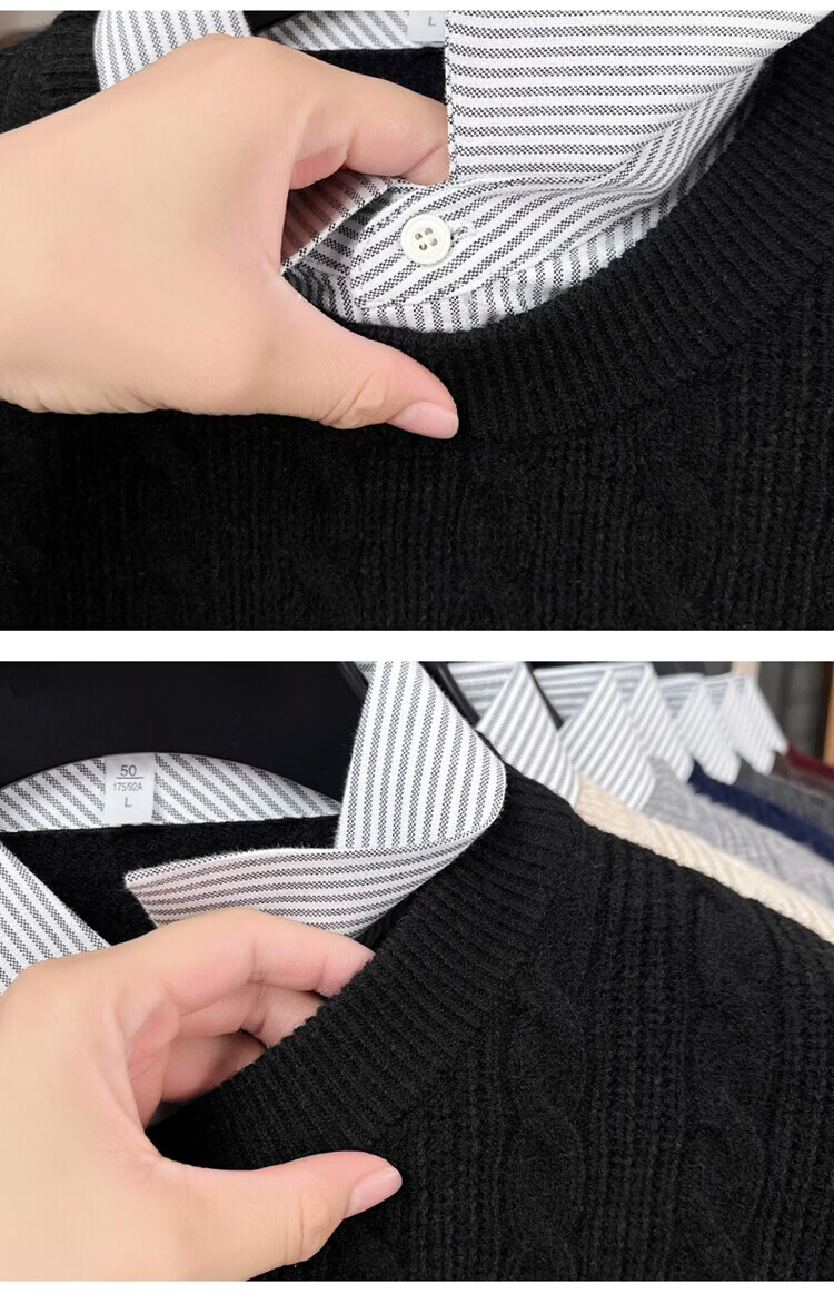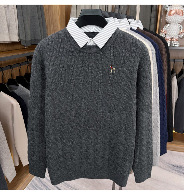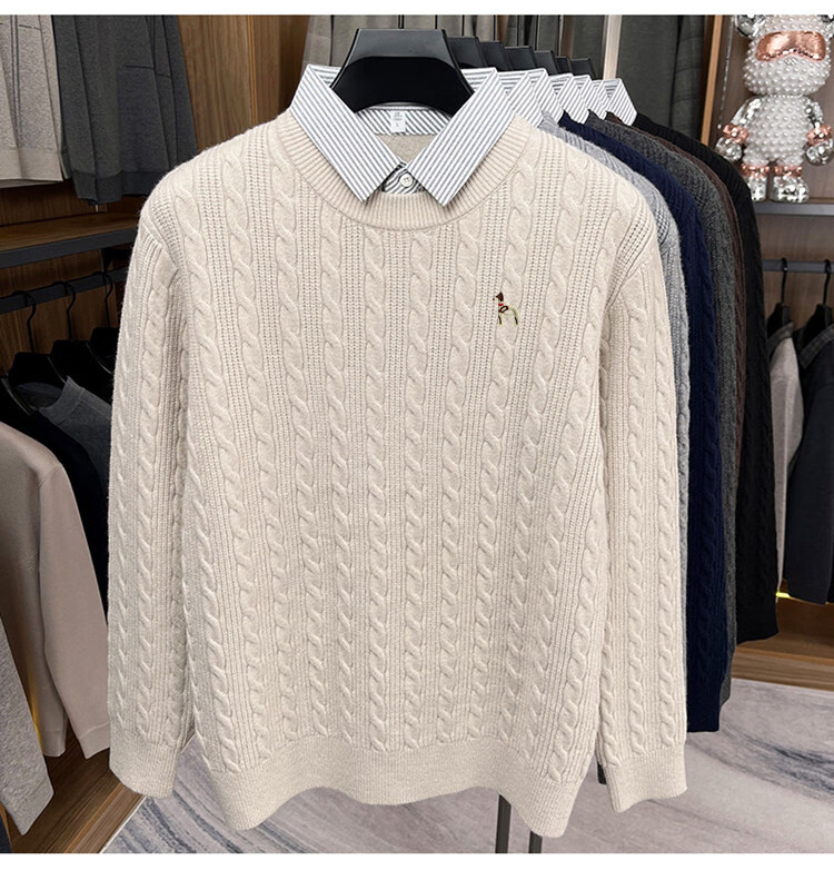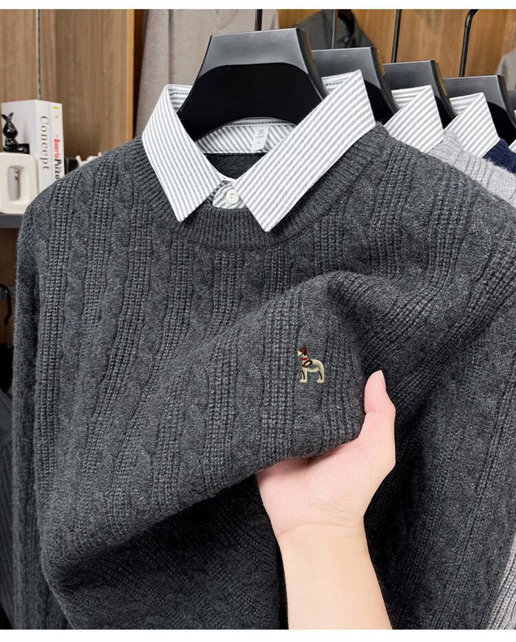 Haggis new casual cardigan men's fashion pullover sweater fake two-piece top black \xe8\ 2XL 185 size suitable for weight 175-195Jin Jin equals 0.5 kg \xe8\