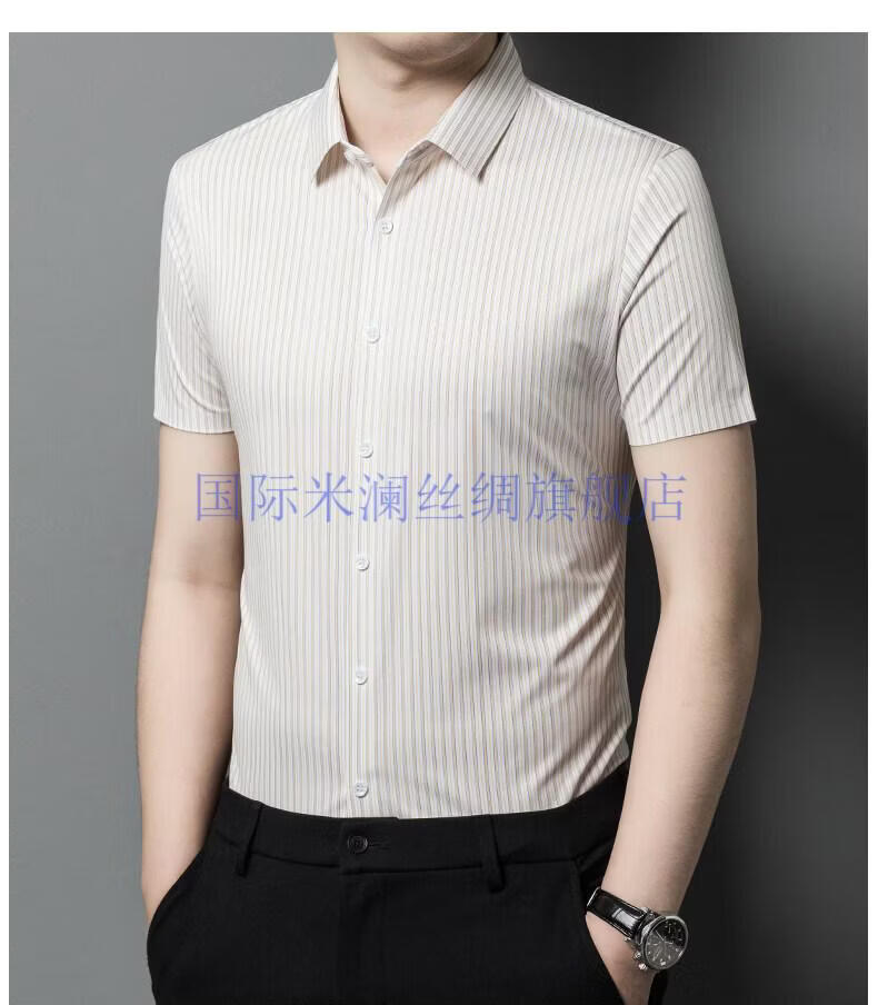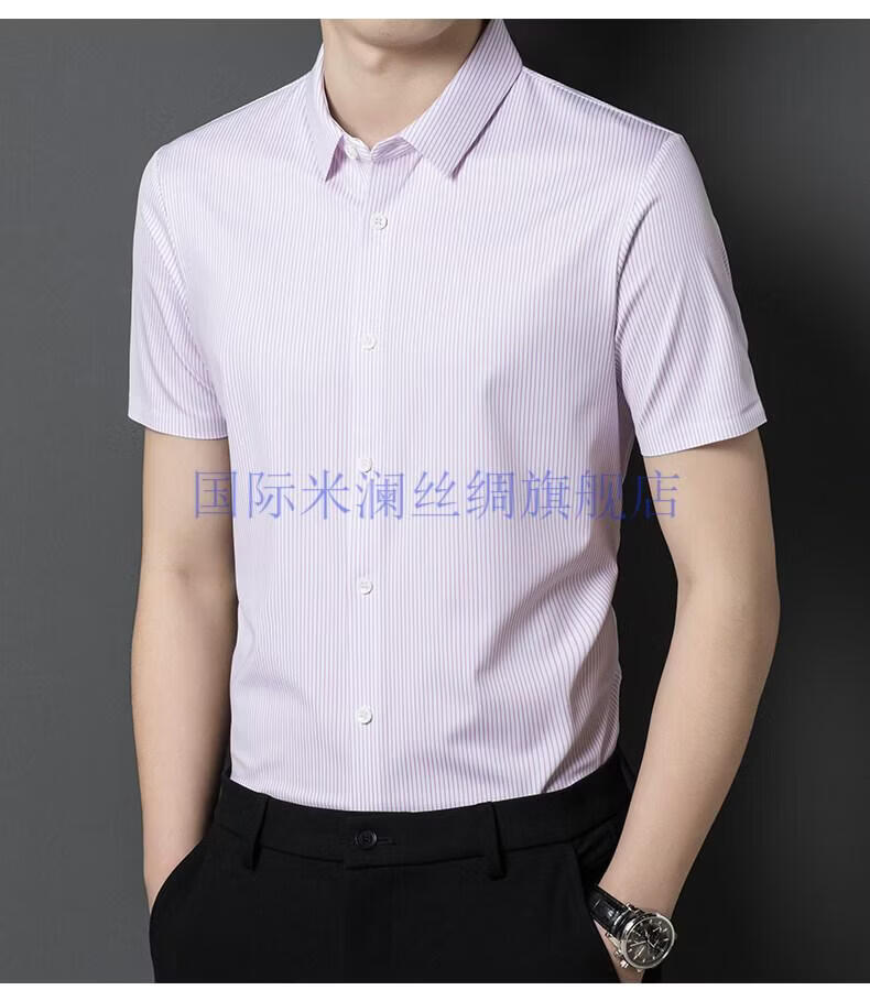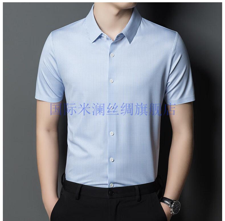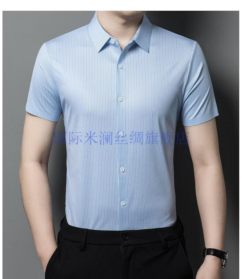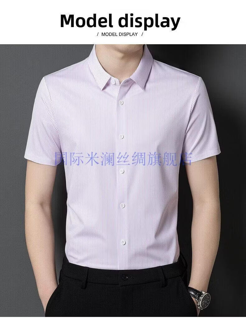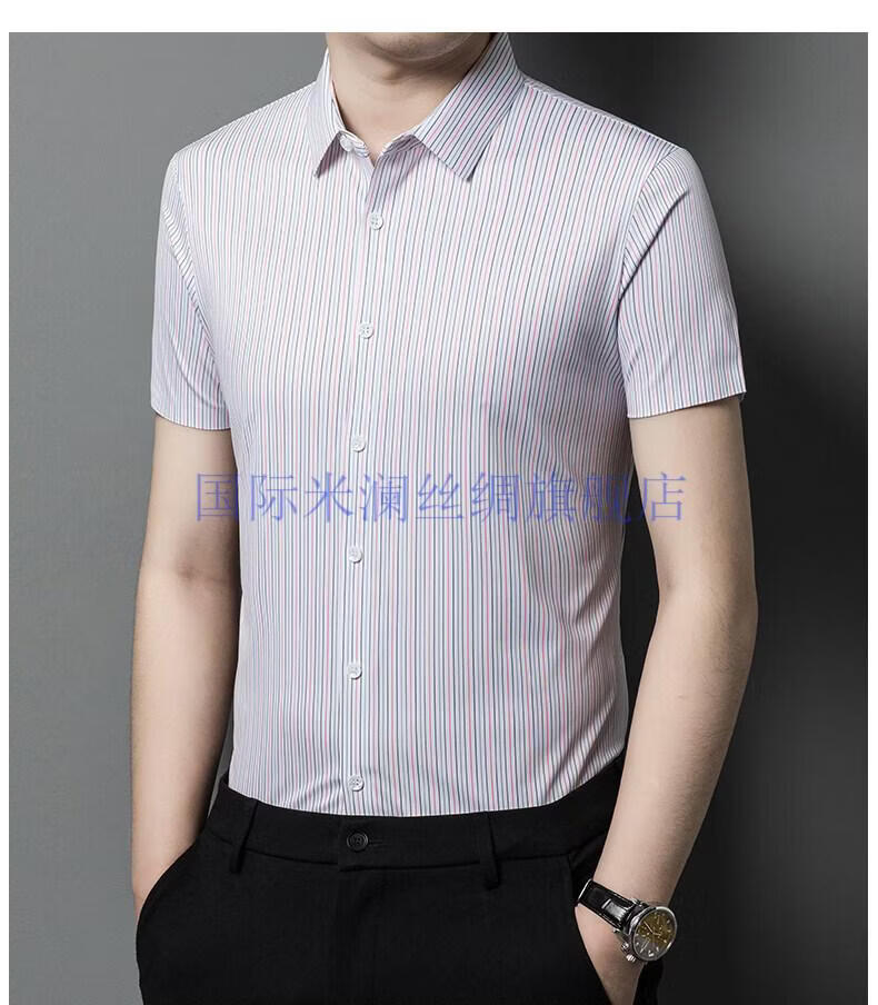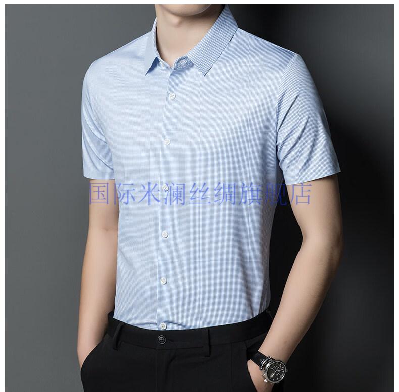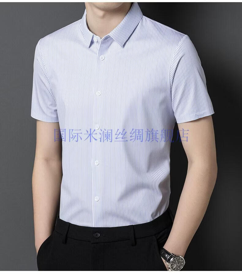 International Milan light luxury high-end classic mulberry short-sleeved shirt men's summer ice silk seamless business casual men's wear LH617655--MRJ Lan Tiao gift box packaging XL 175 recommended 135-155 Jin Jin equals 0.5 kg