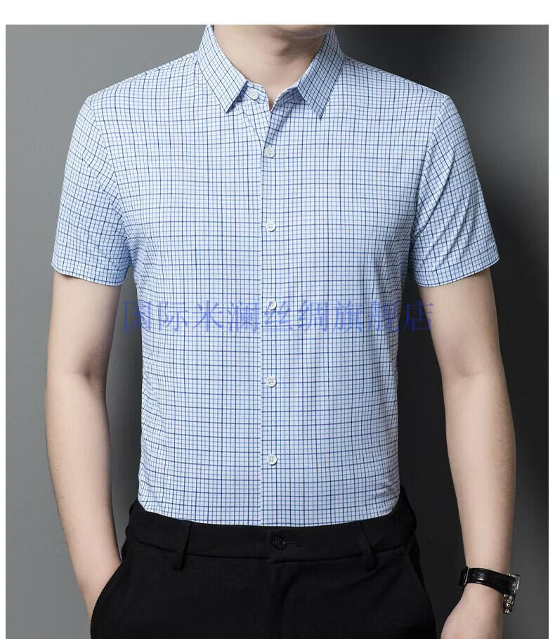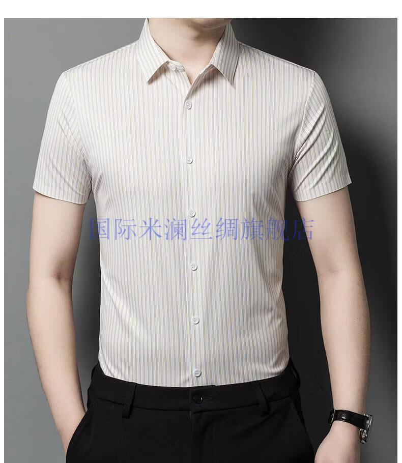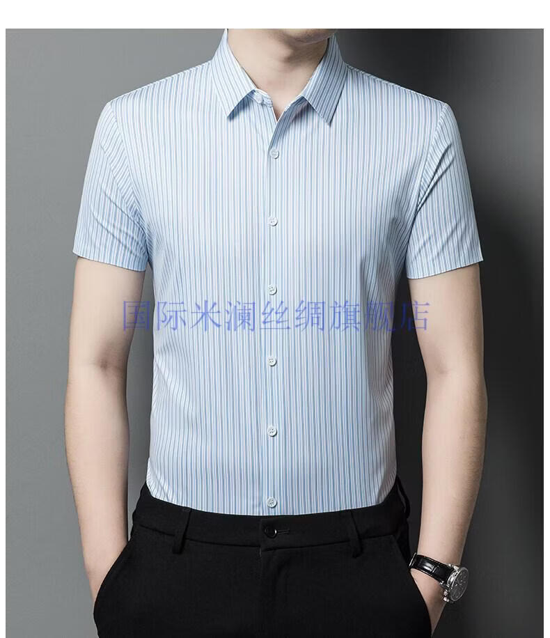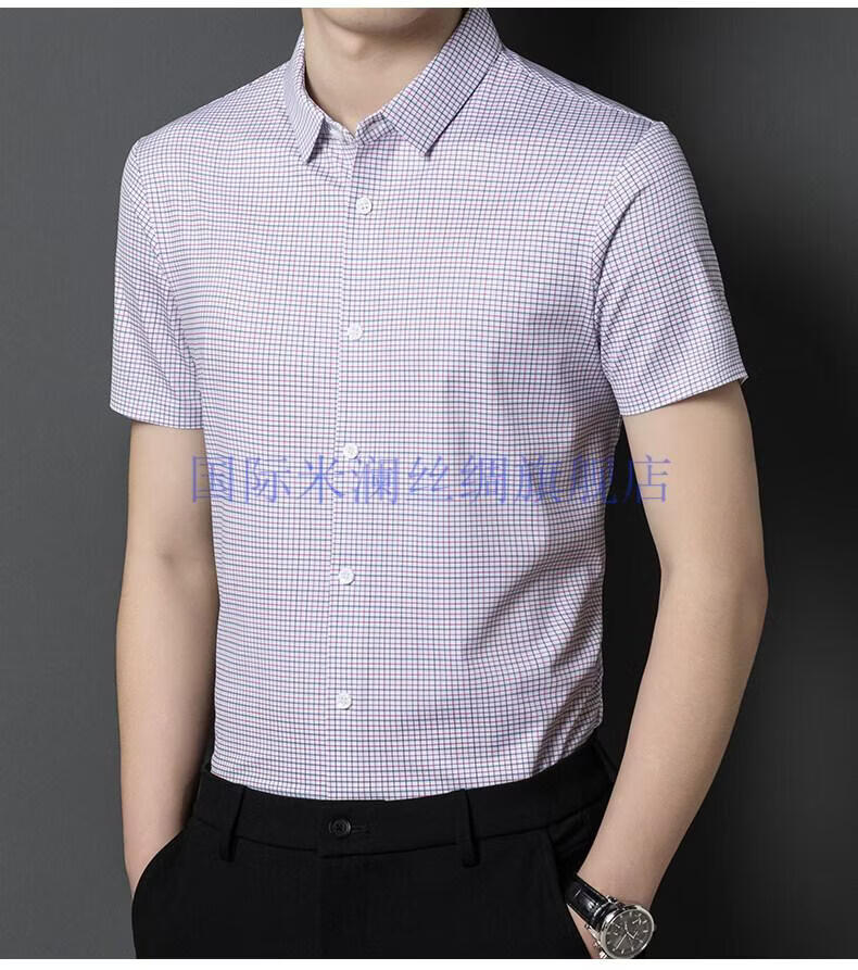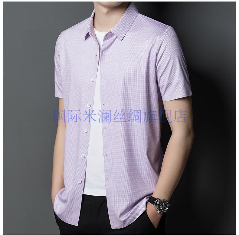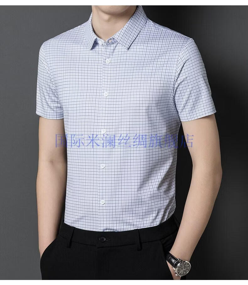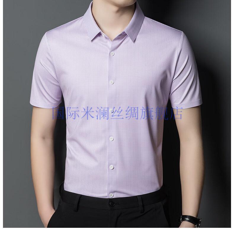 International Milan light luxury high-end classic mulberry short-sleeved shirt men's summer ice silk seamless business casual men's wear LH617655--MRJ Lan Tiao gift box packaging XL 175 recommended 135-155 Jin Jin equals 0.5 kg