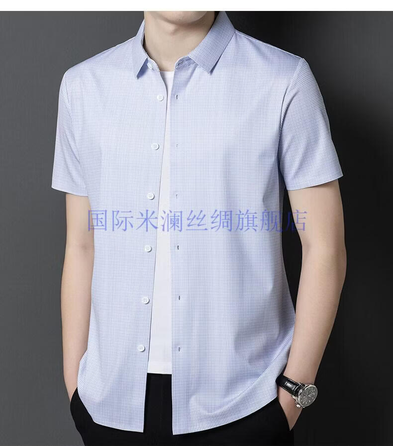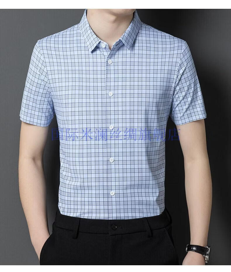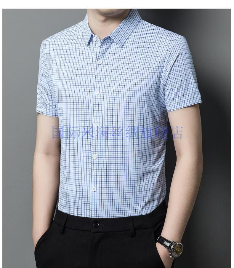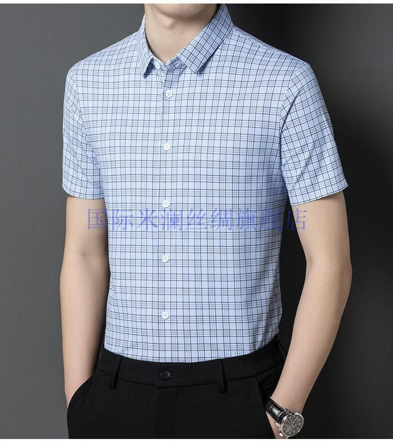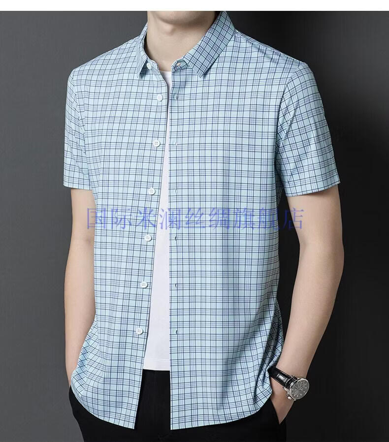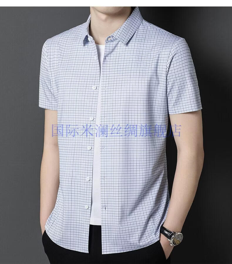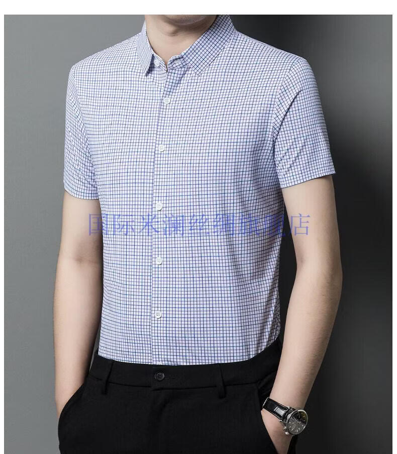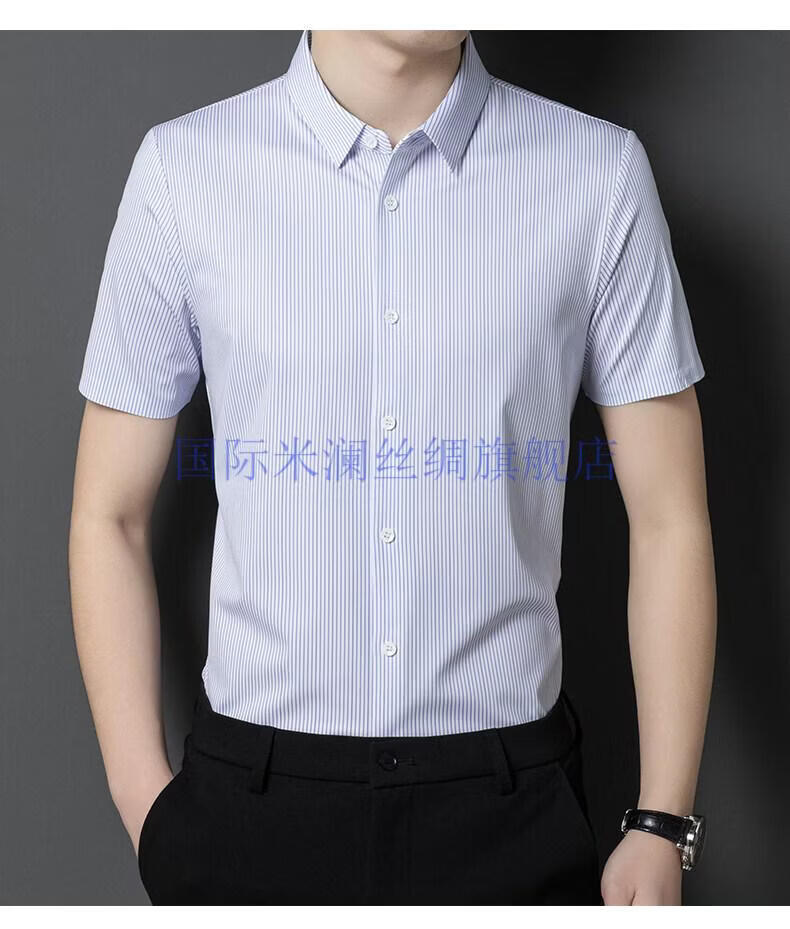 International Milan light luxury high-end classic mulberry short-sleeved shirt men's summer ice silk seamless business casual men's wear LH617655--MRJ Lan Tiao gift box packaging XL 175 recommended 135-155 Jin Jin equals 0.5 kg
