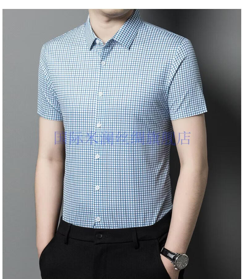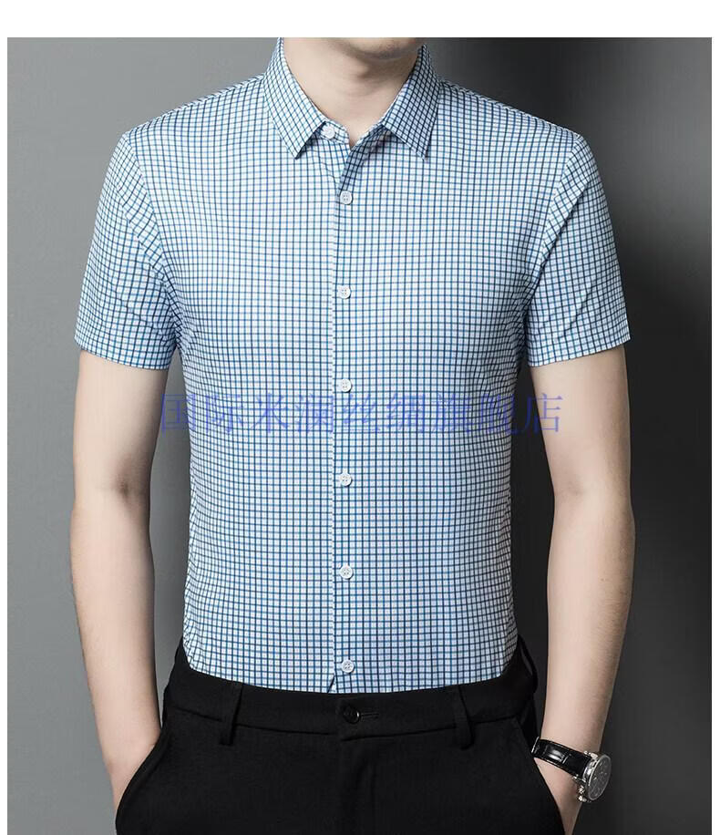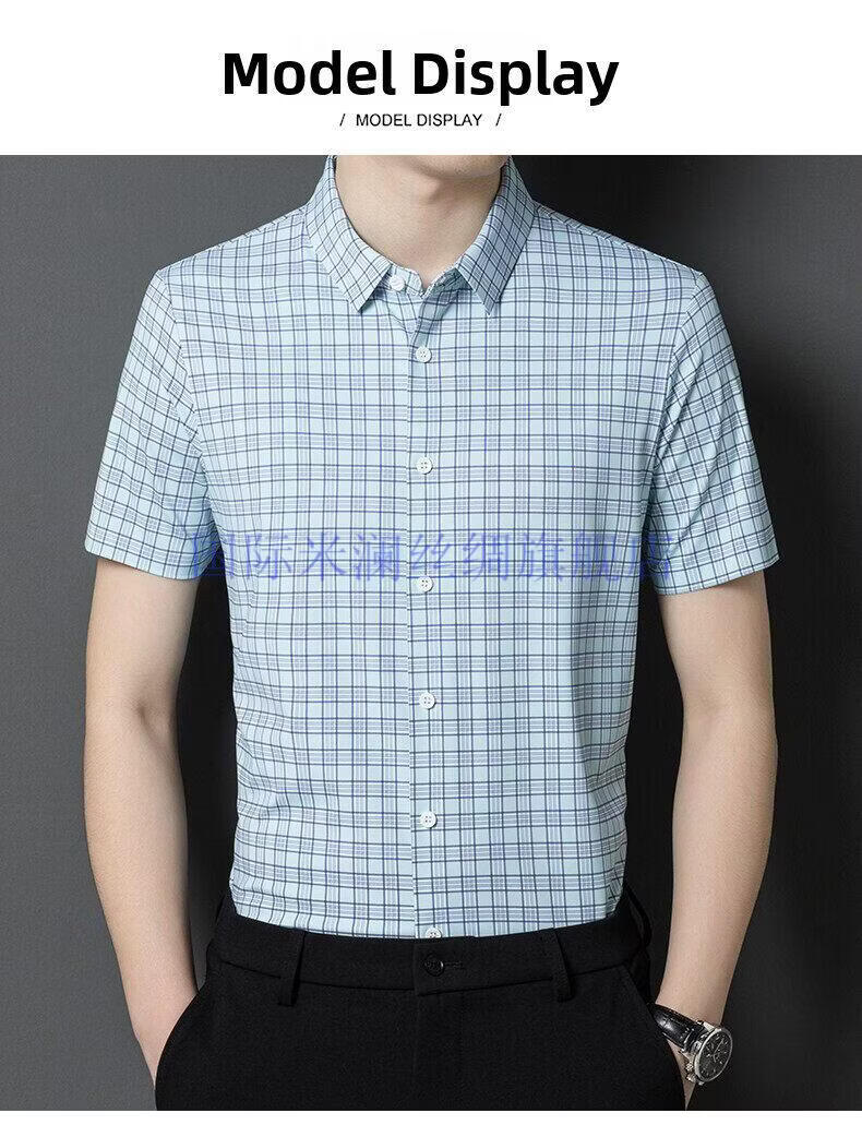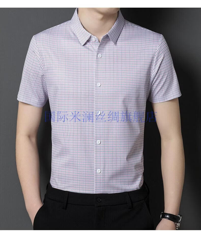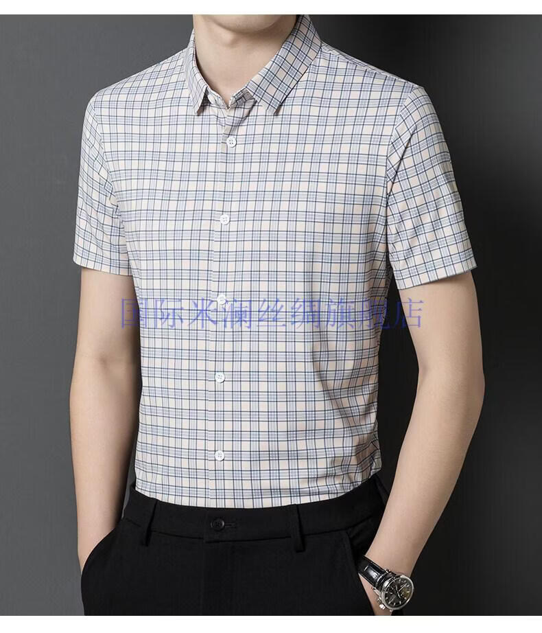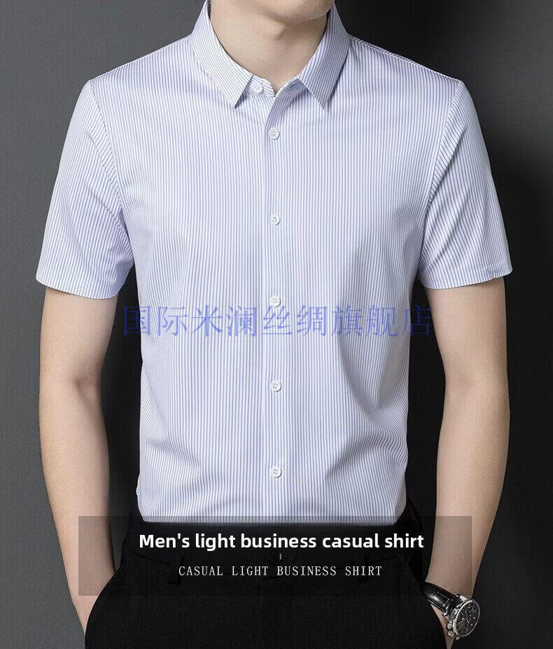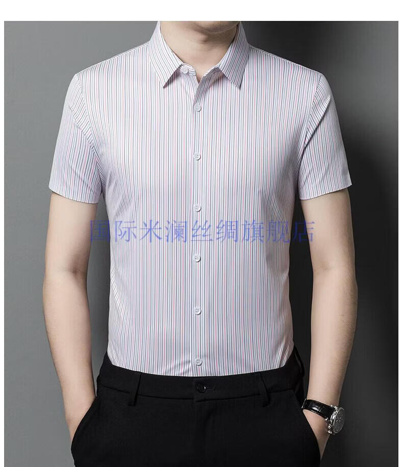 International Milan light luxury high-end classic mulberry short-sleeved shirt men's summer ice silk seamless business casual men's wear LH617655--MRJ Lan Tiao gift box packaging XL 175 recommended 135-155 Jin Jin equals 0.5 kg