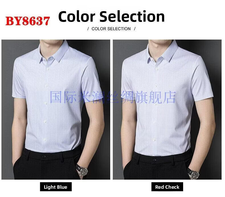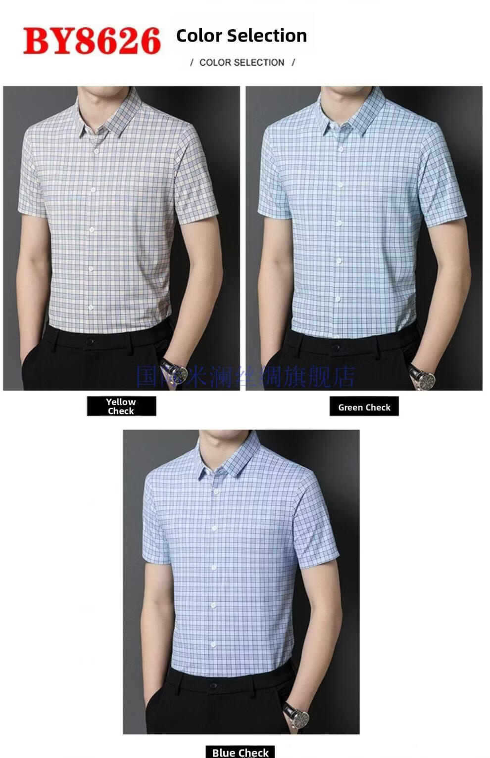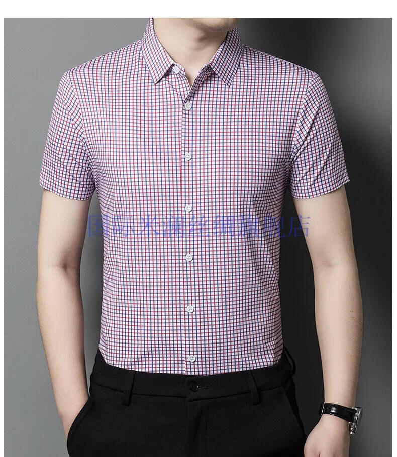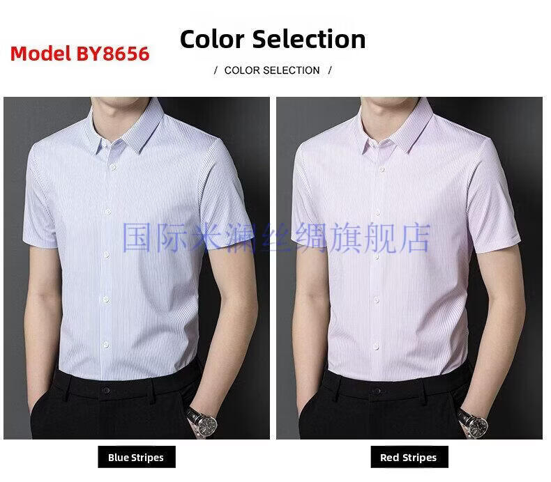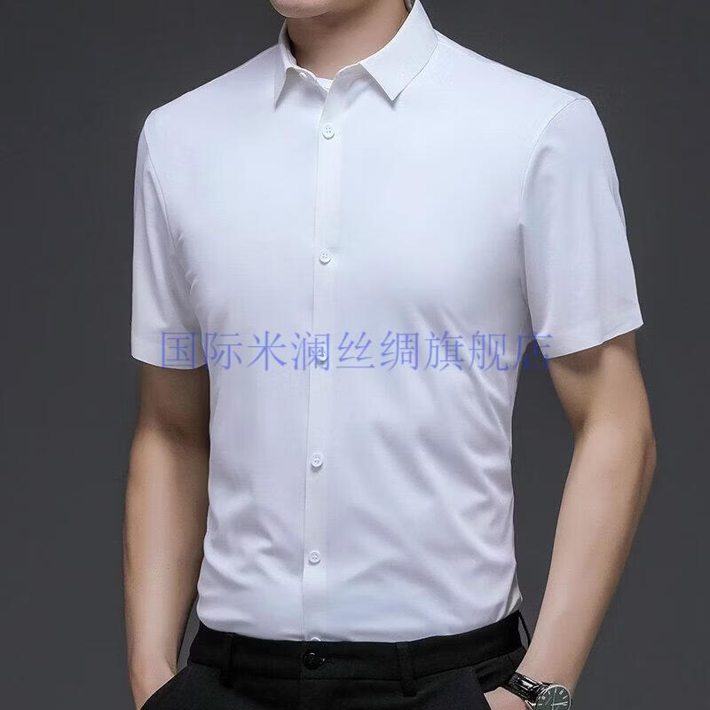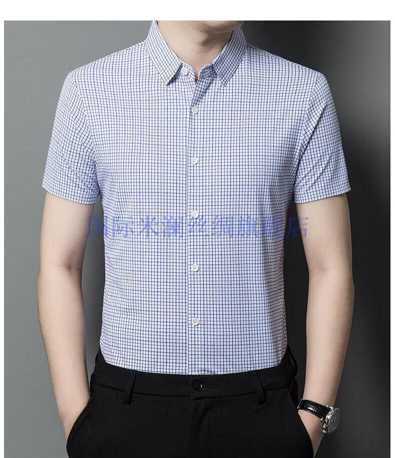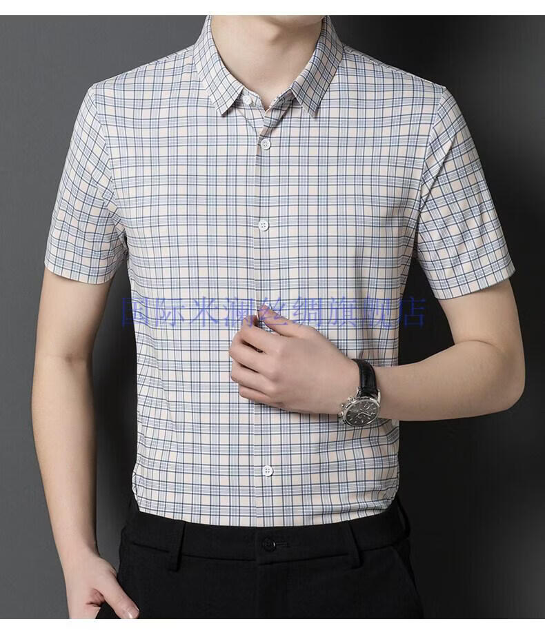 International Milan light luxury high-end classic mulberry short-sleeved shirt men's summer ice silk seamless business casual men's wear LH617655--MRJ Lan Tiao gift box packaging XL 175 recommended 135-155 Jin Jin equals 0.5 kg