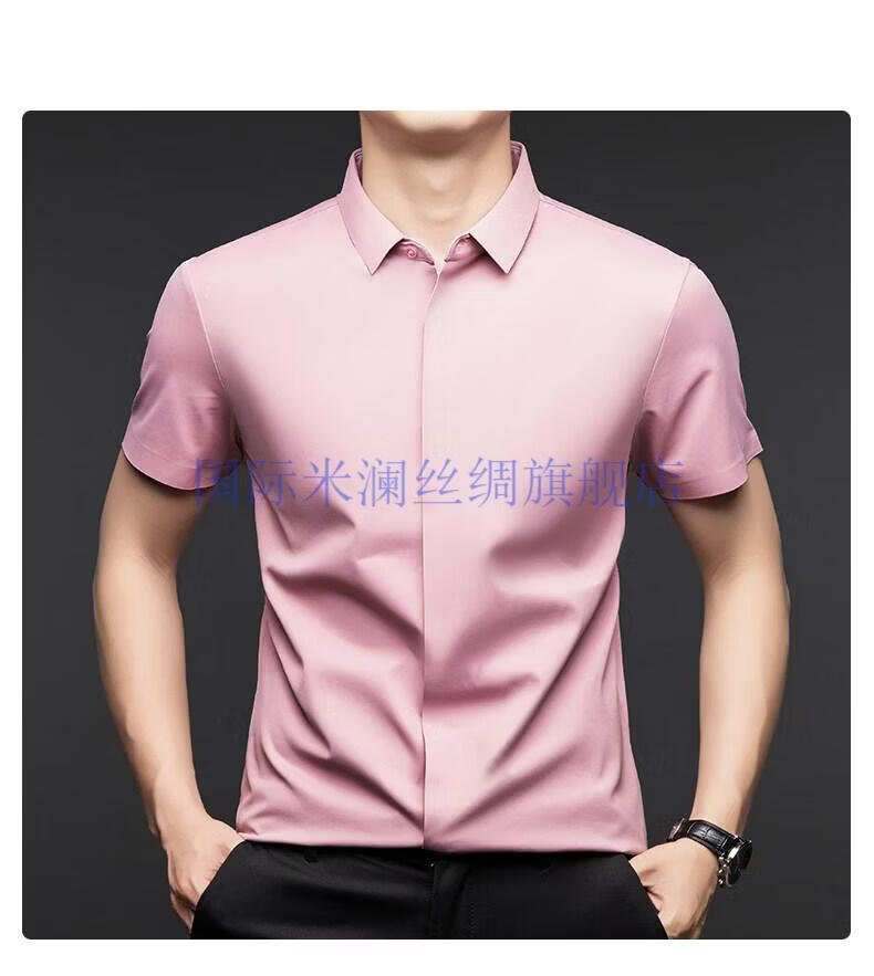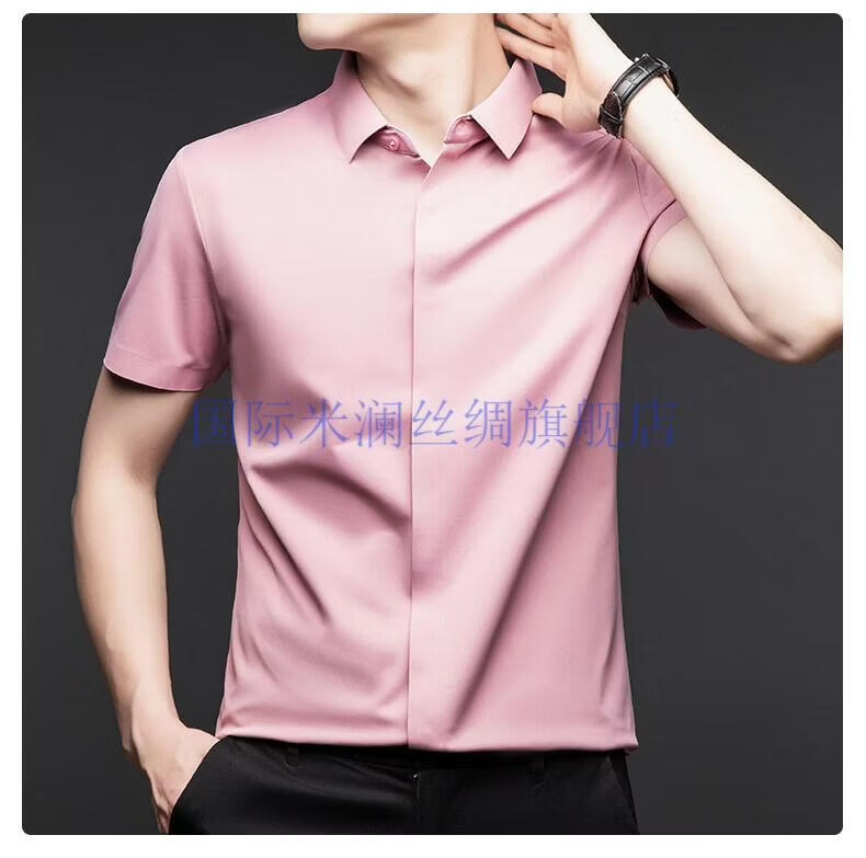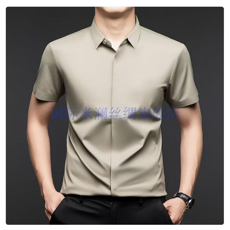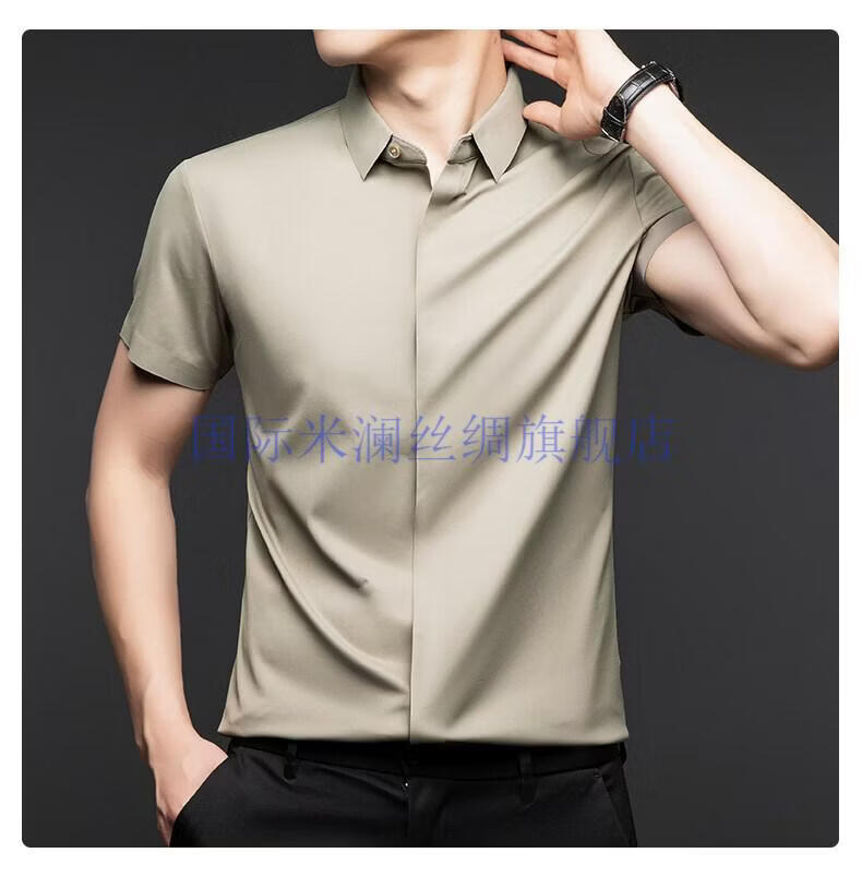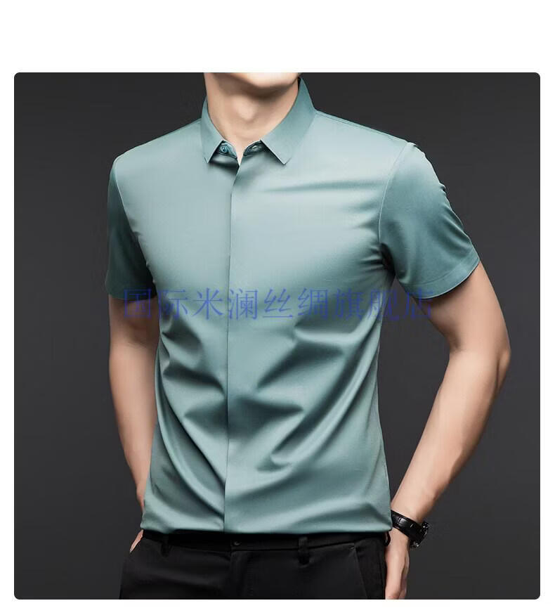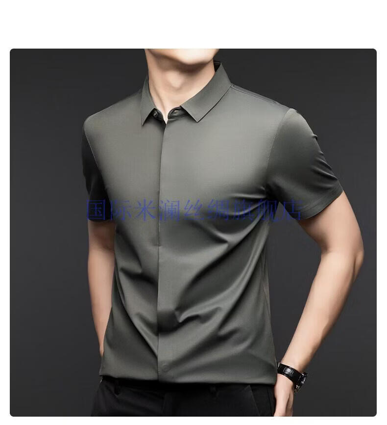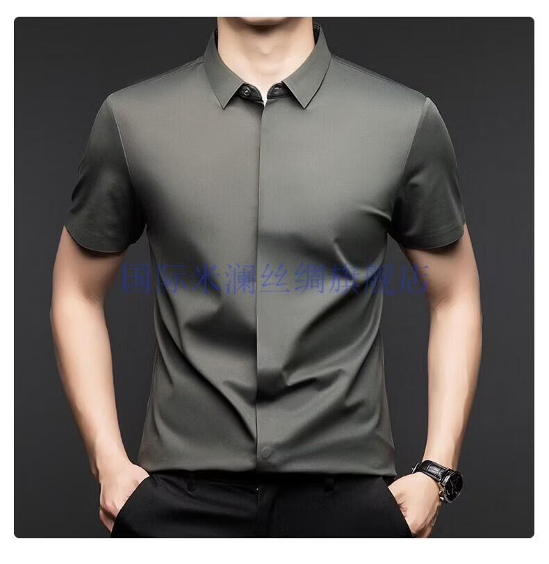International Milan light luxury high-end seamless mulberry silk short-sleeved shirt for men anti-wrinkle ironing-free summer and autumn business casual men gray green gift box packaging XL 175