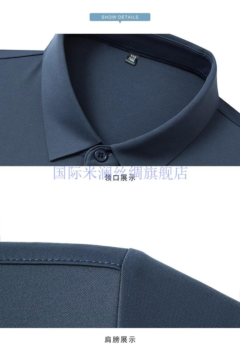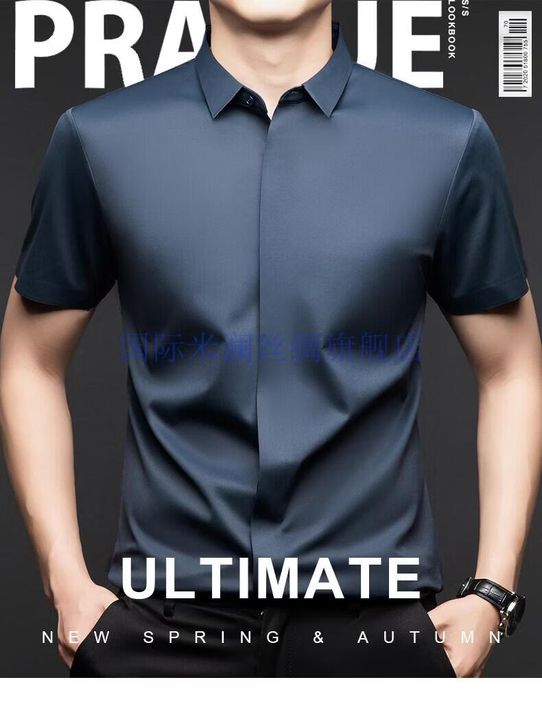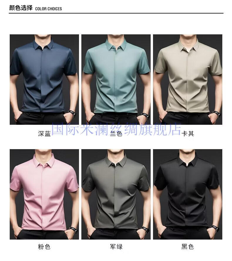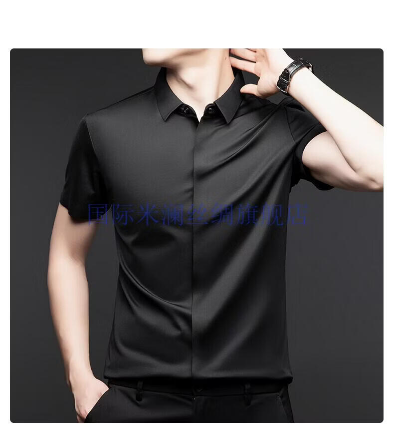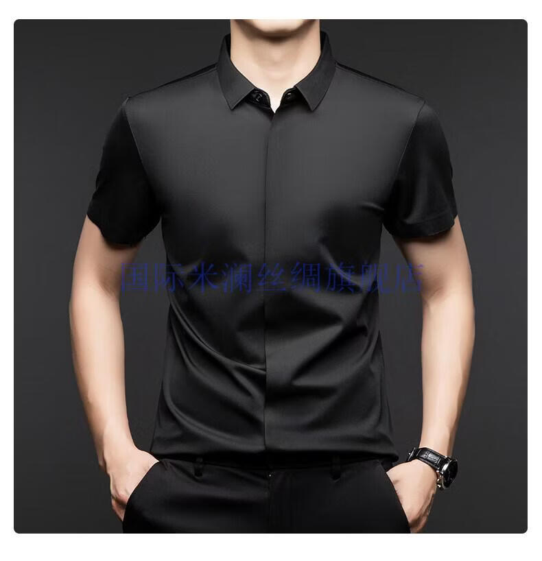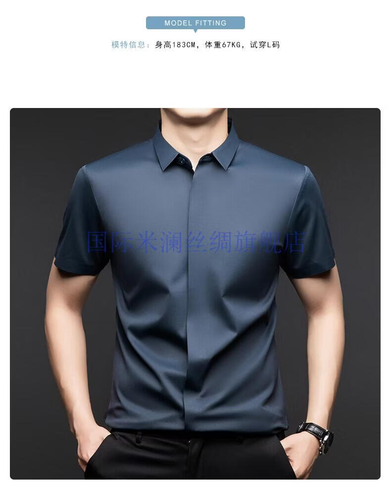 International Milan light luxury high-end seamless mulberry silk short-sleeved shirt for men anti-wrinkle ironing-free summer and autumn business casual men gray green gift box packaging XL 175