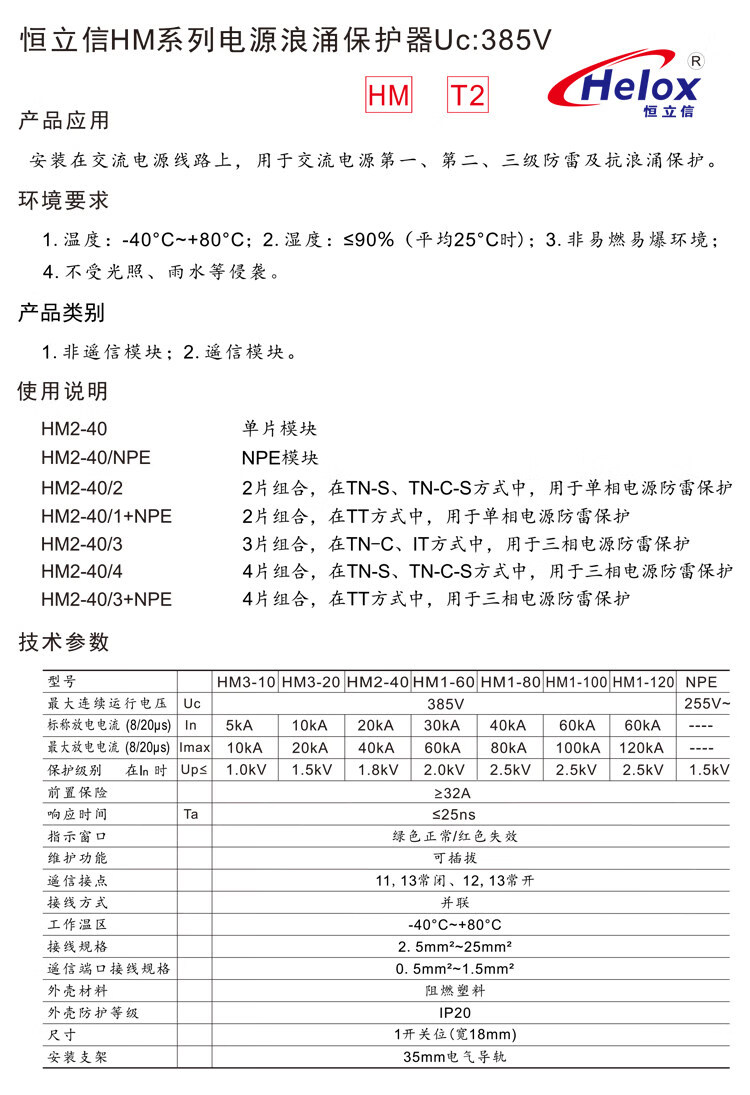 Henlixin three-level power supply lightning arrester 220V 20KA D-level power supply lightning arrester surge protector HM3-20